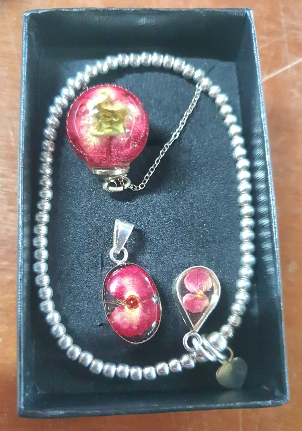 Two 925 silver "flower" pendants, one on a silver chain together with an associated silver pendant