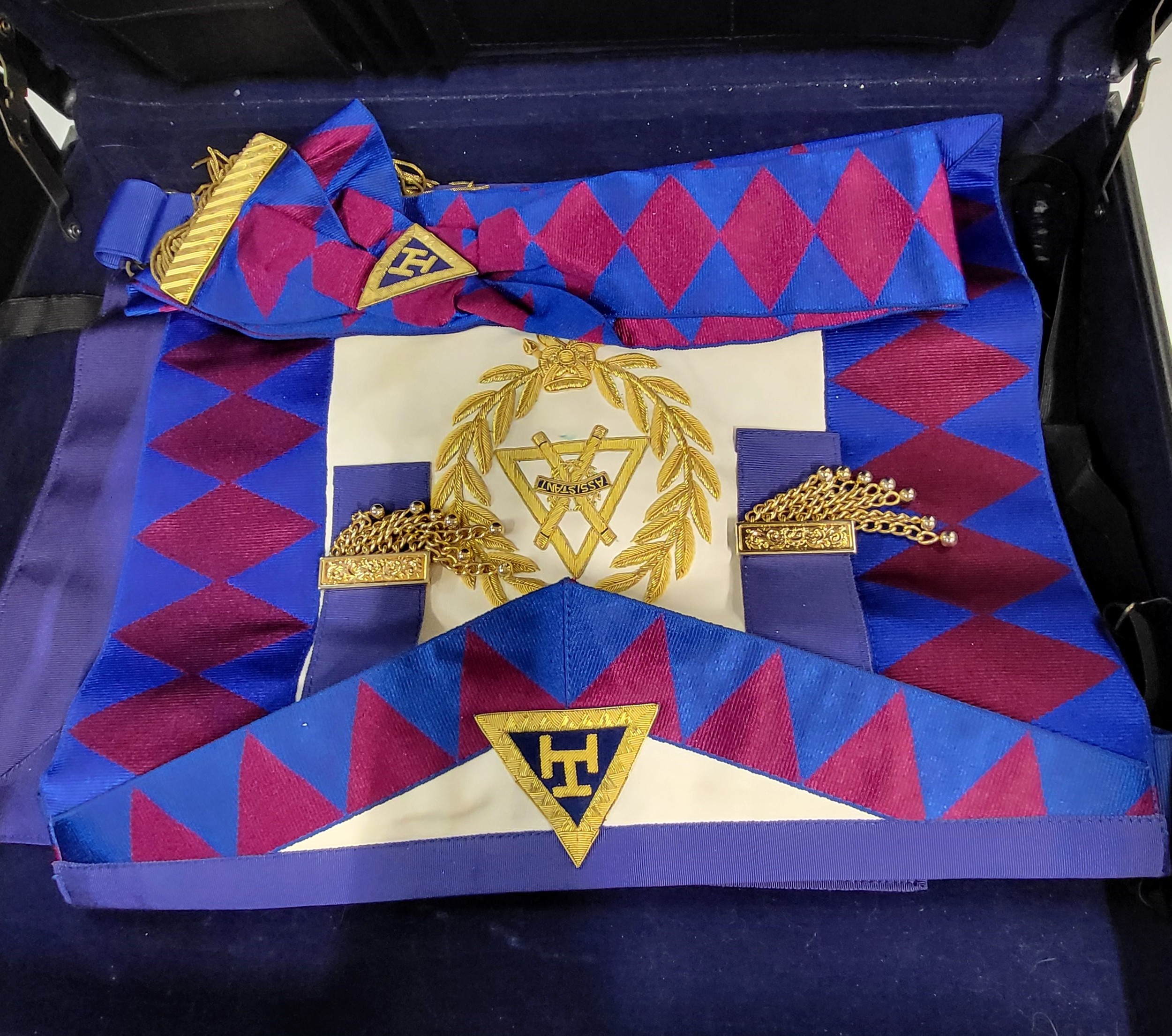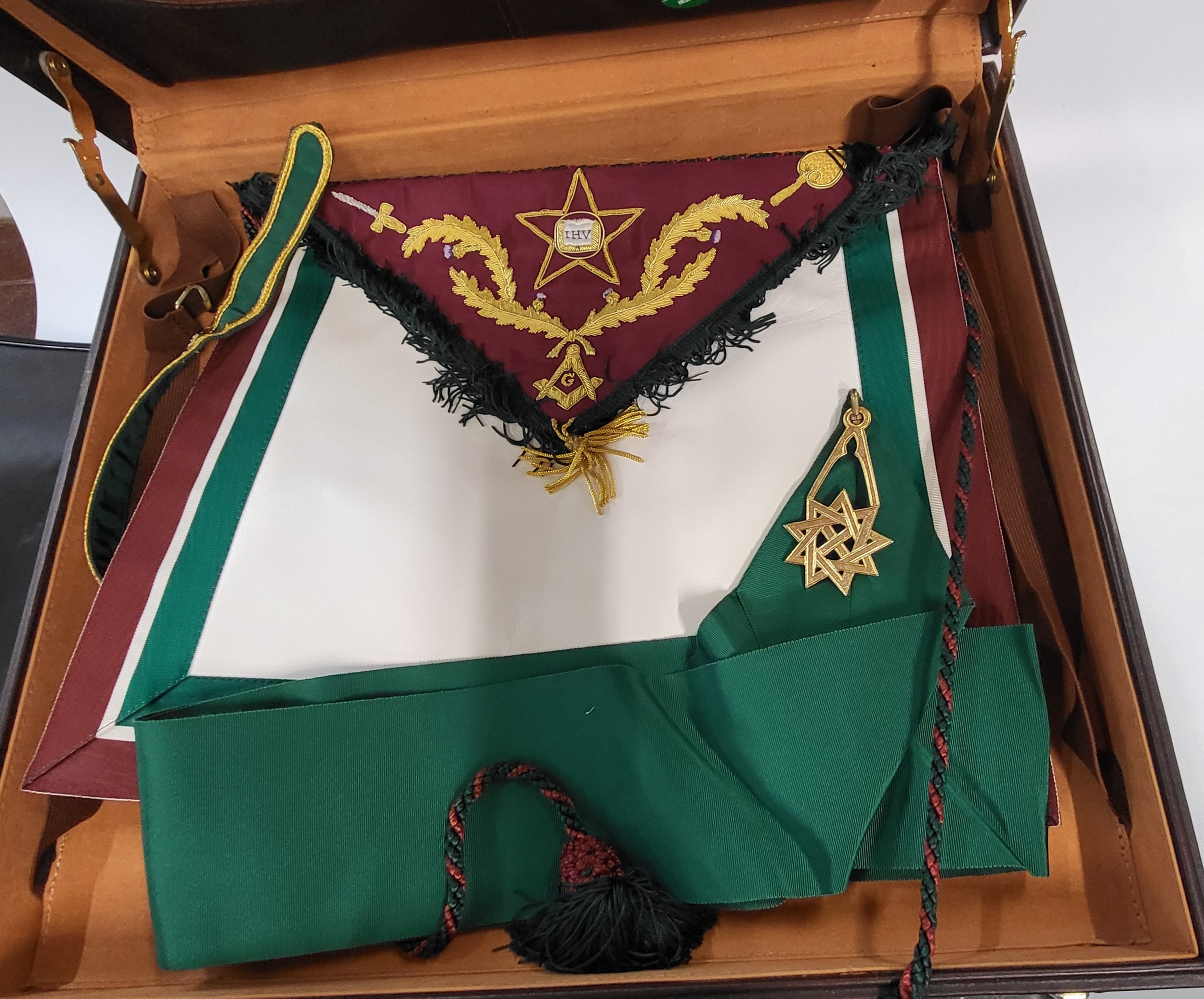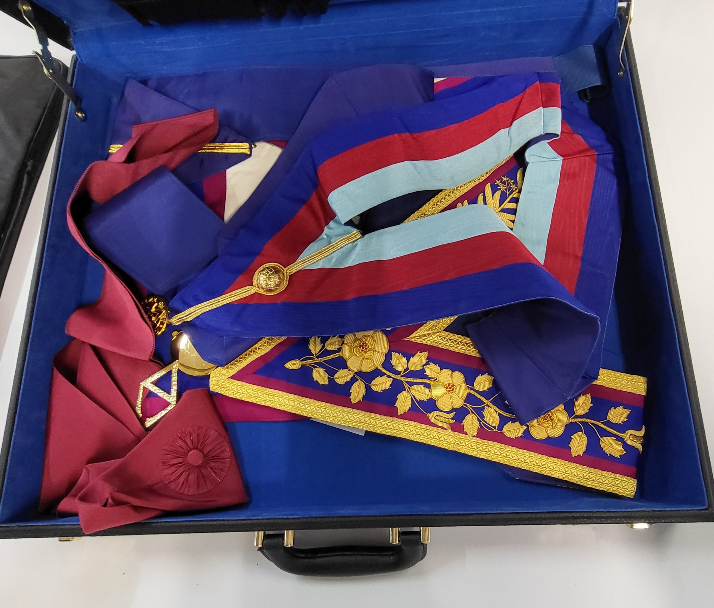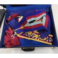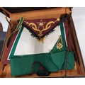 Seven Masonic apron cases containing eight aprons in total.