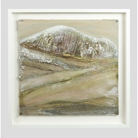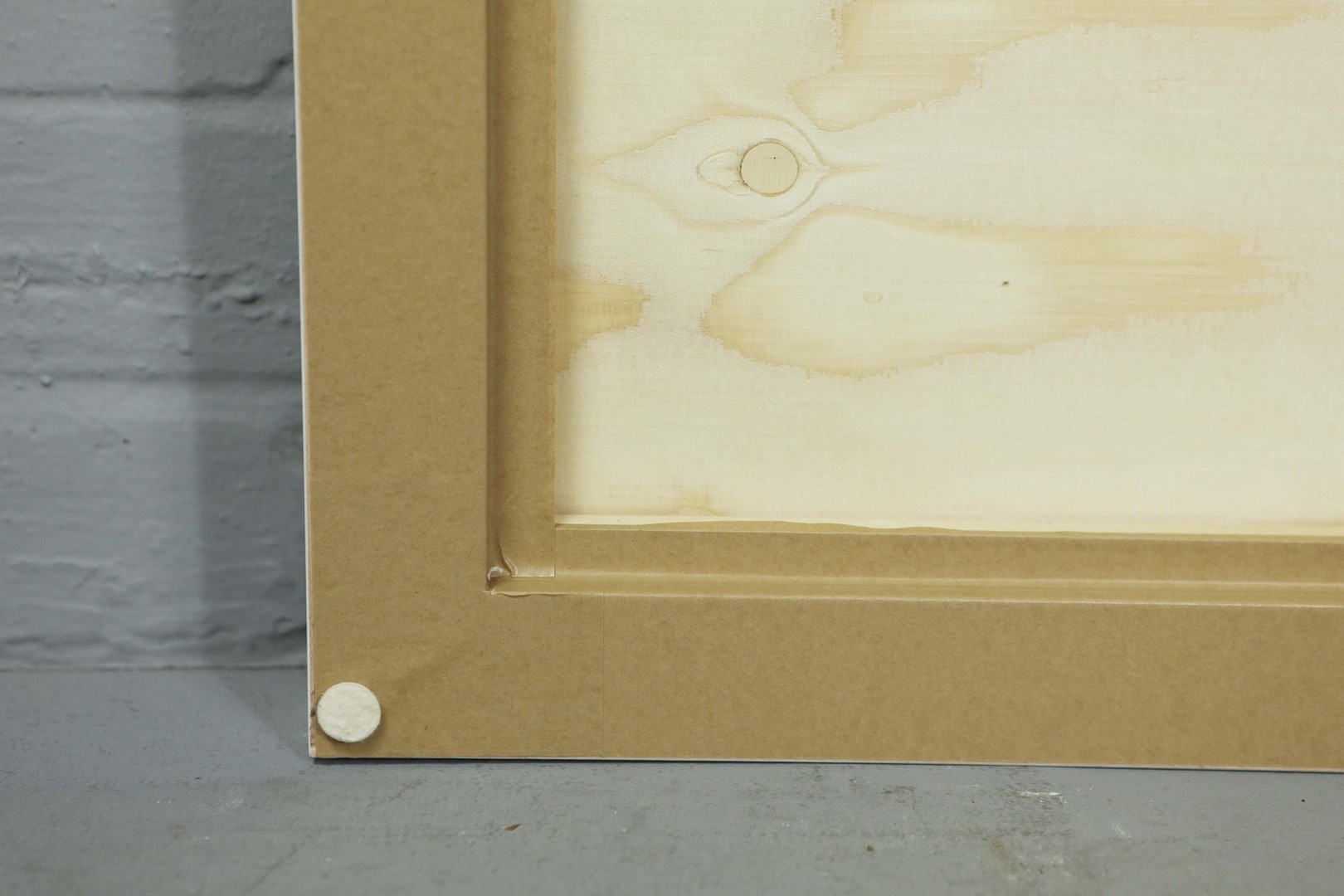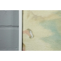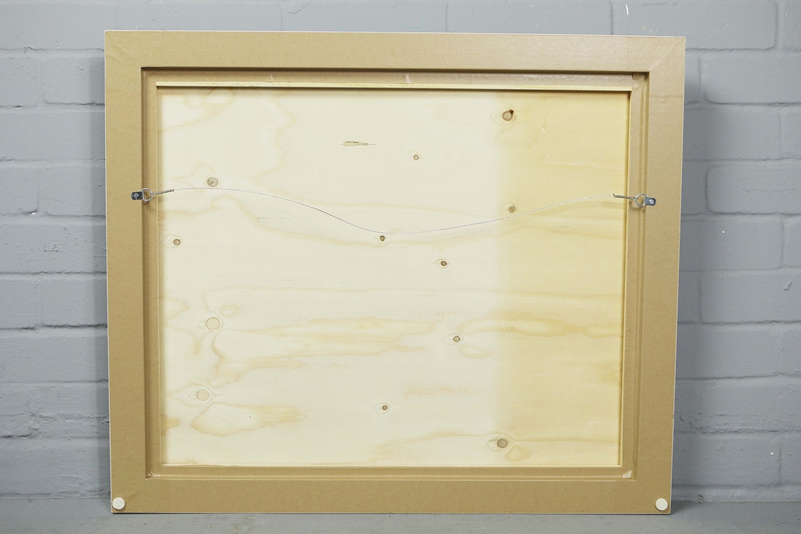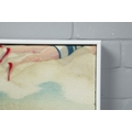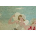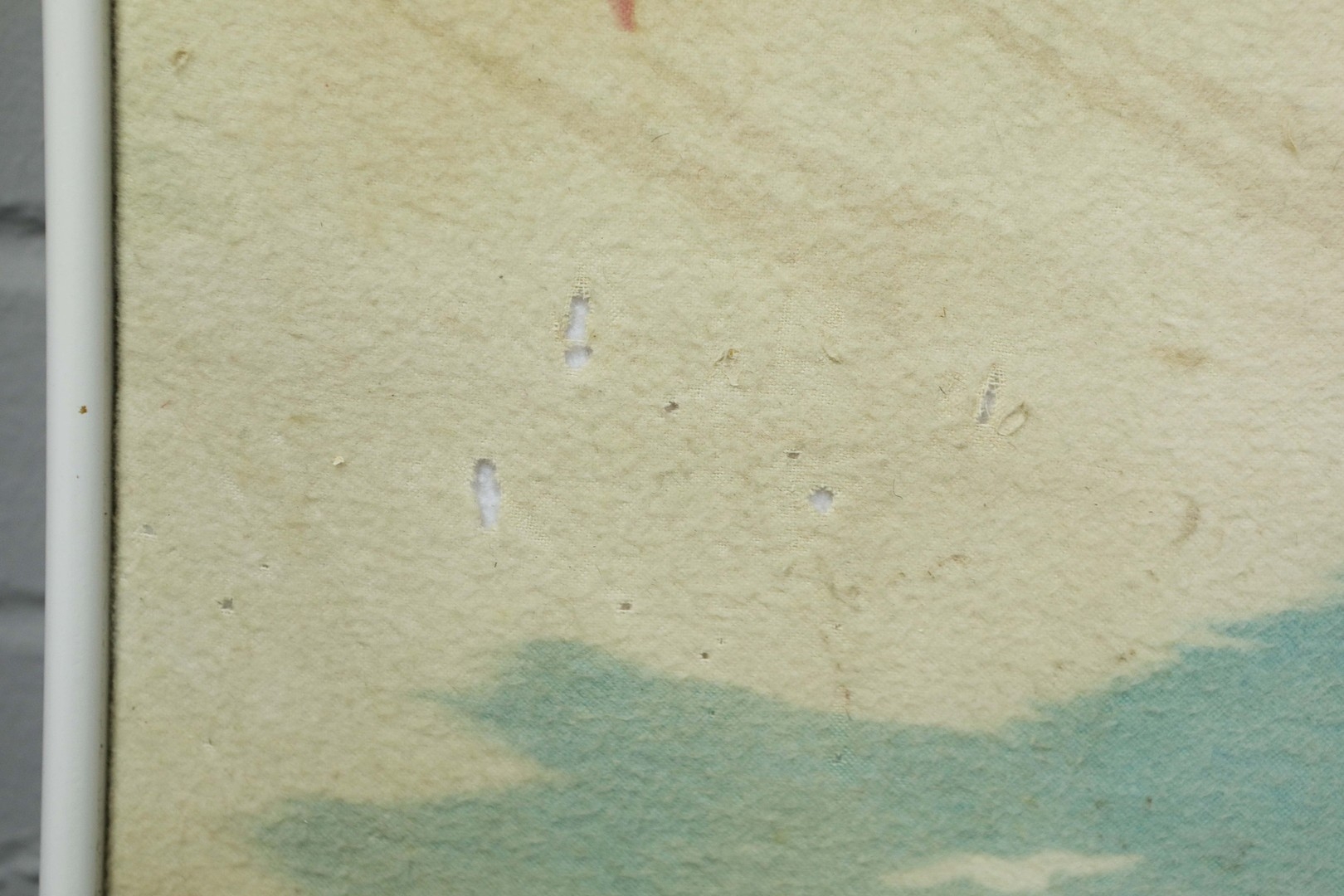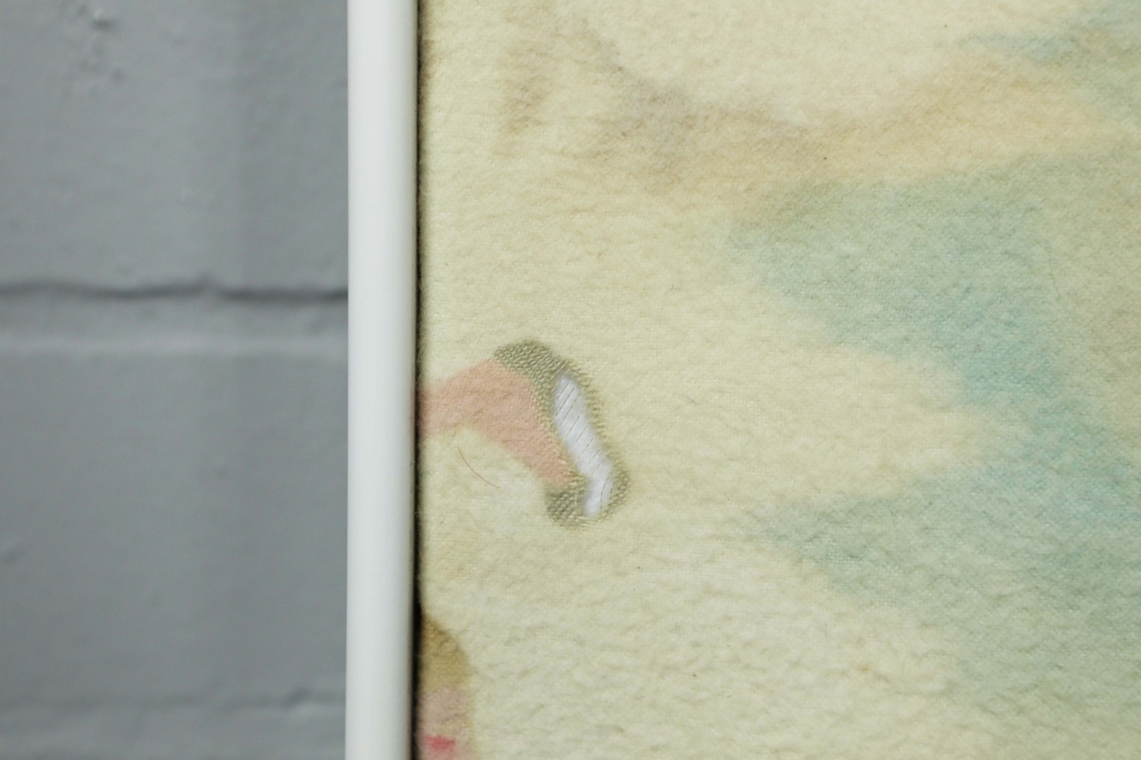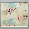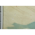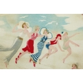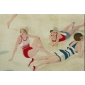 1930s ART DECO BEACH SCENE PRINT ON FELT IN WHITE PAINTED FRAME. 63.5cm H x 75cm W.