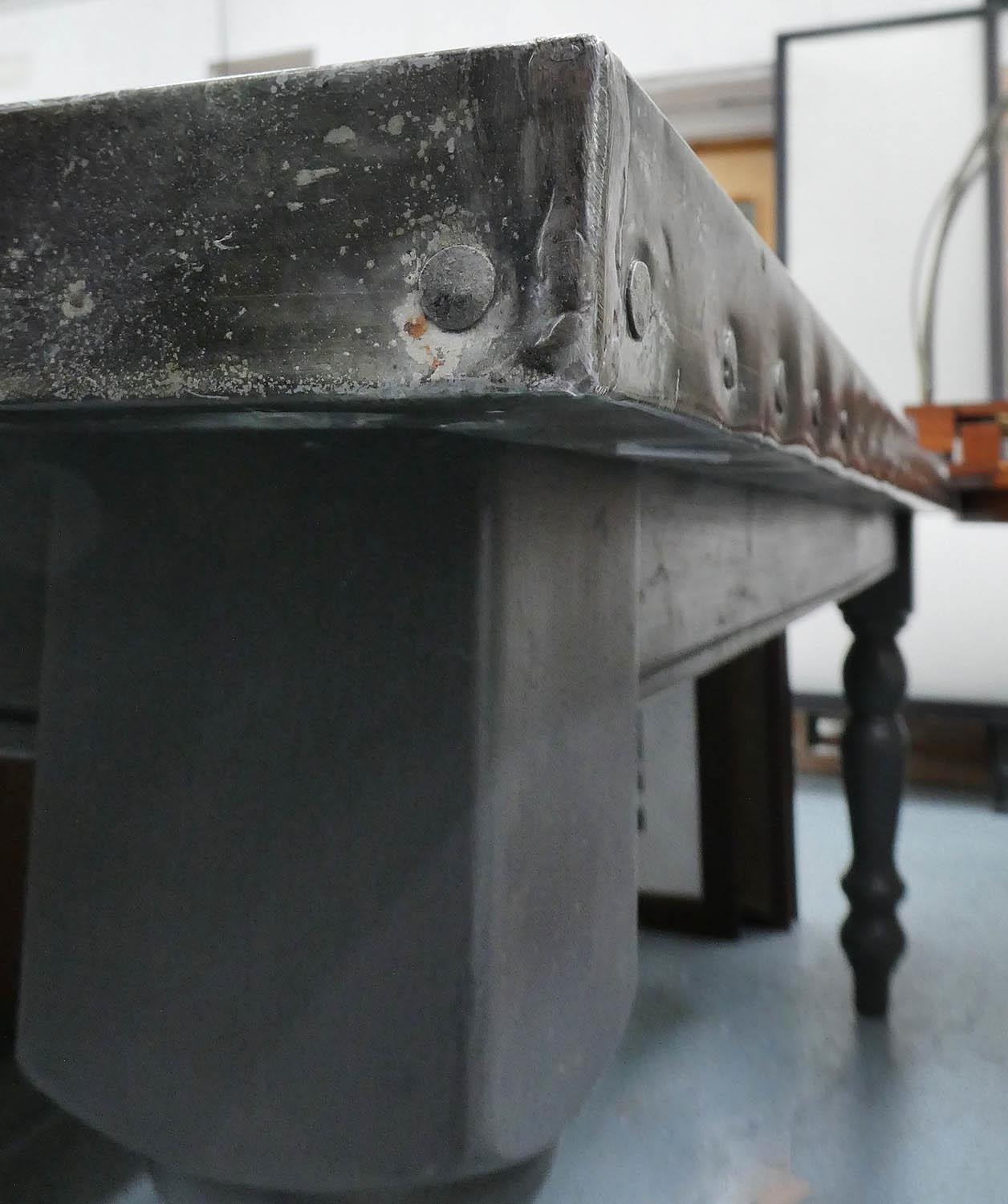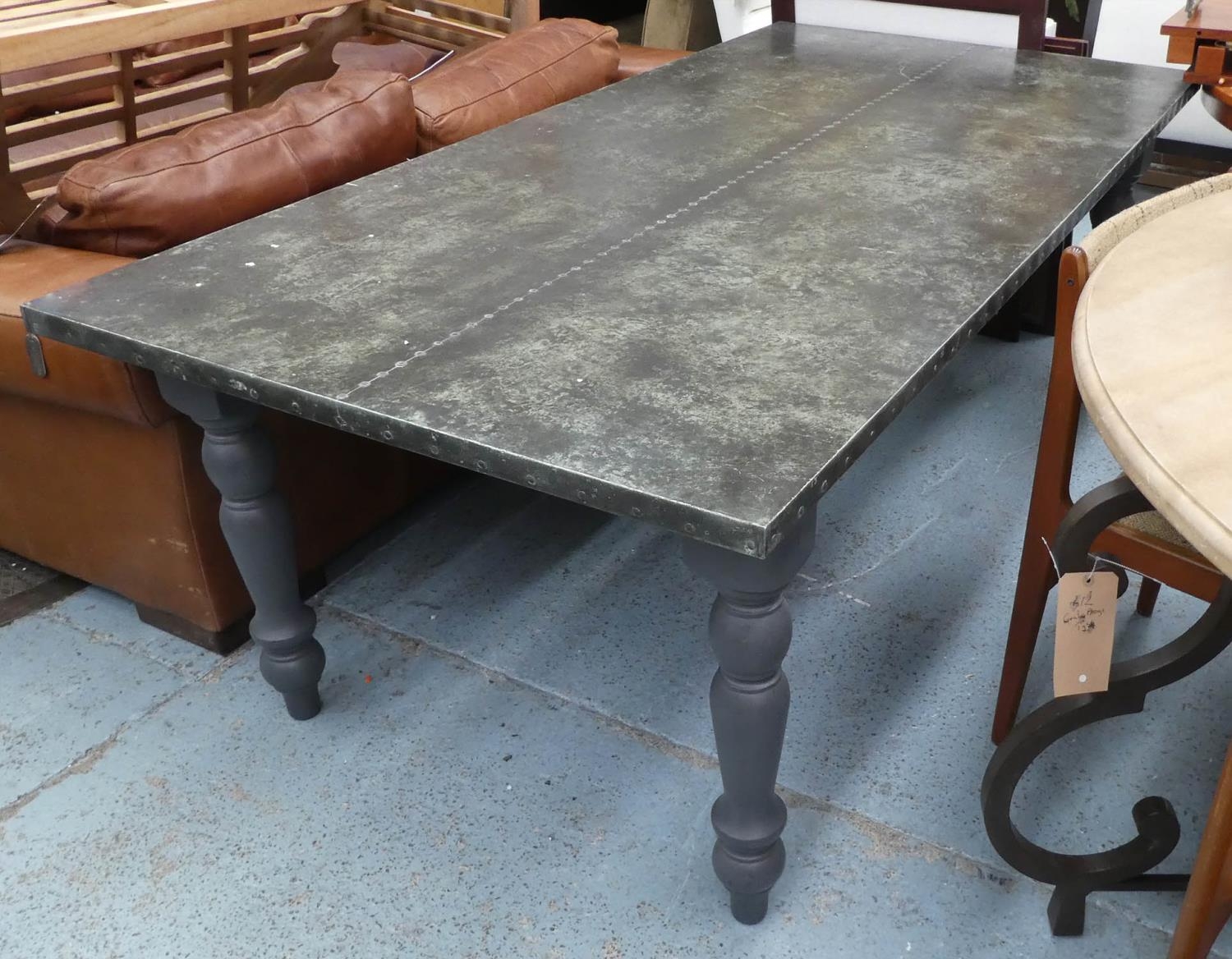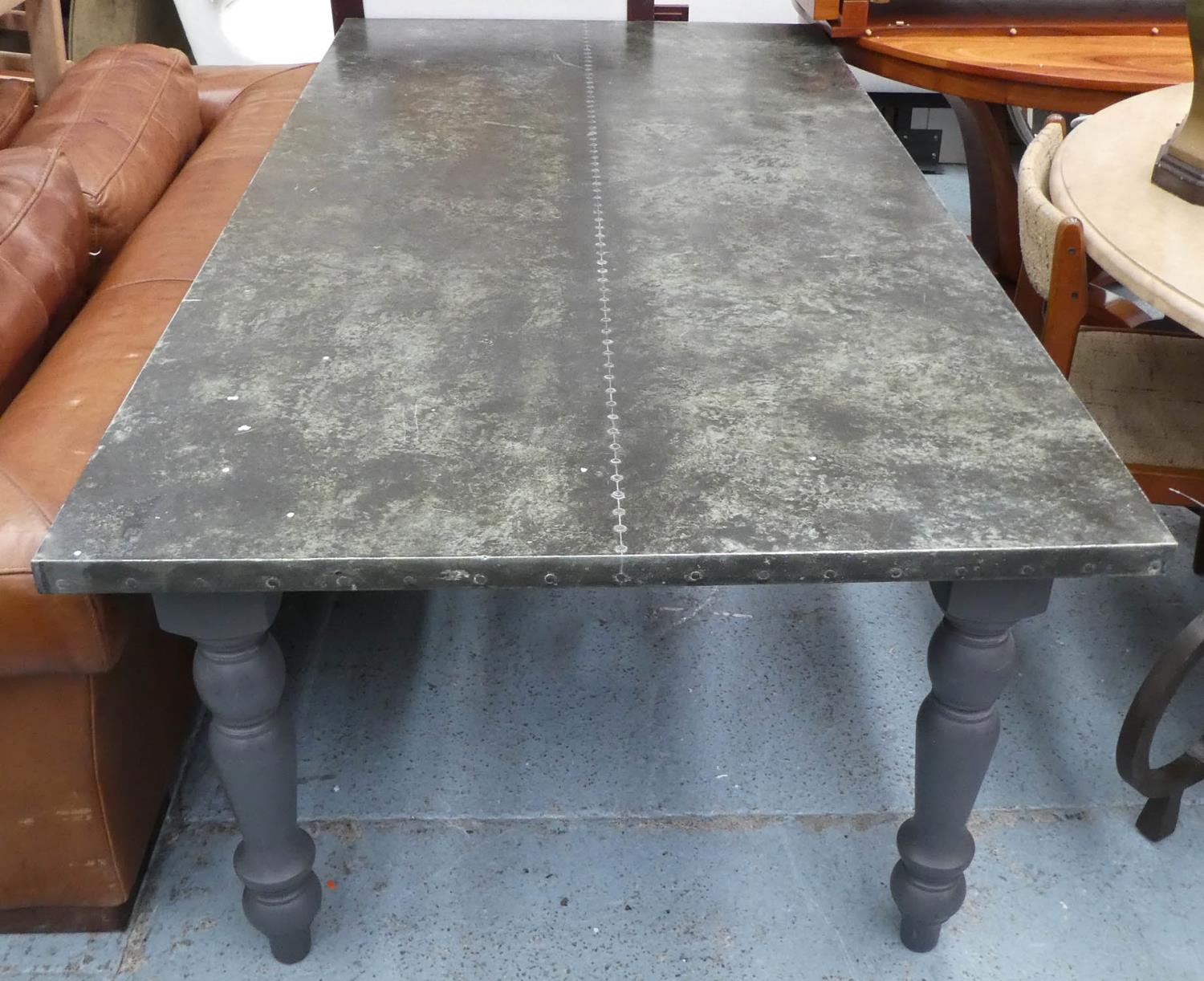 FARMHOUSE DINING TABLE, zinc top, grey painted base, 200cm x 102cm x 74cm.