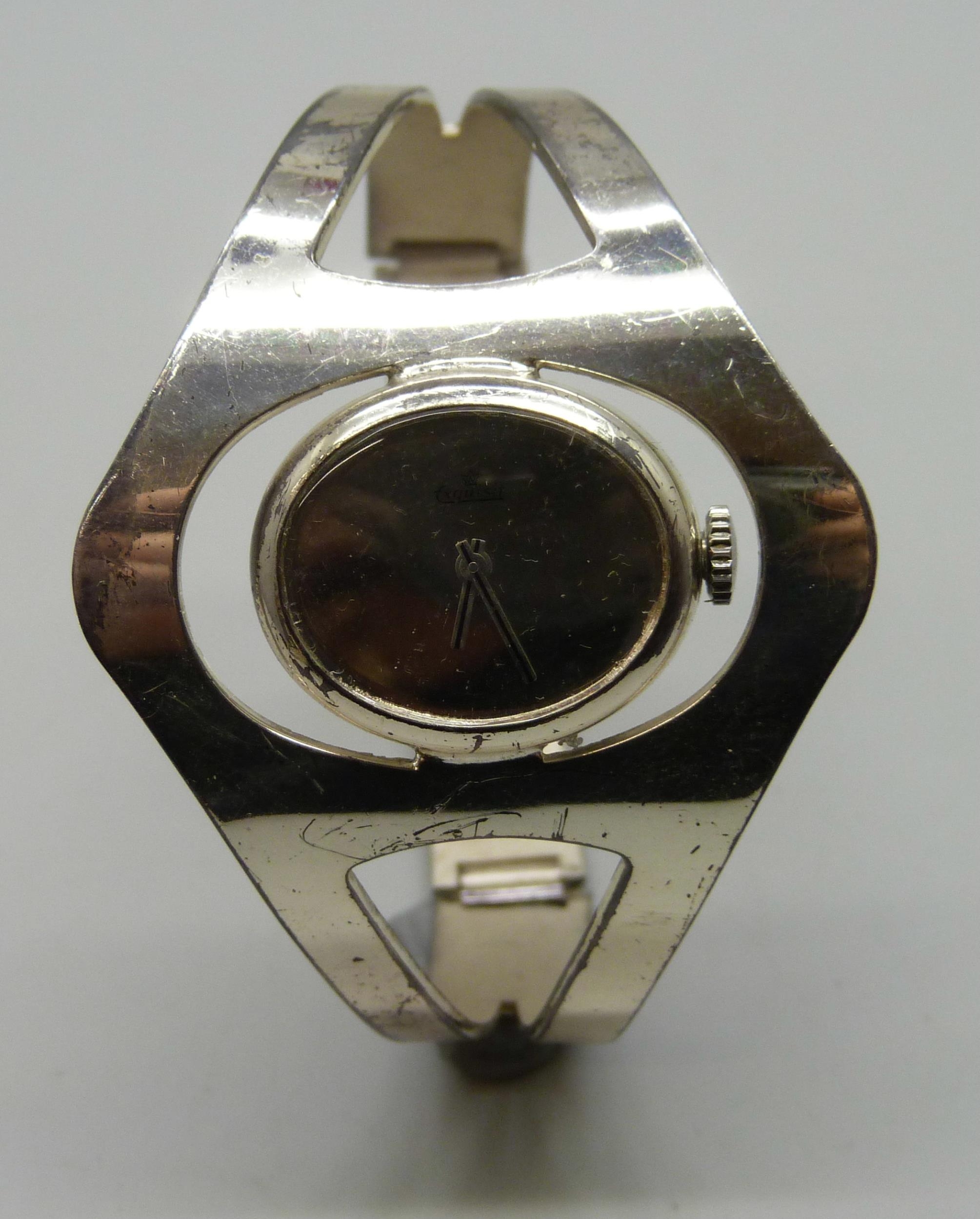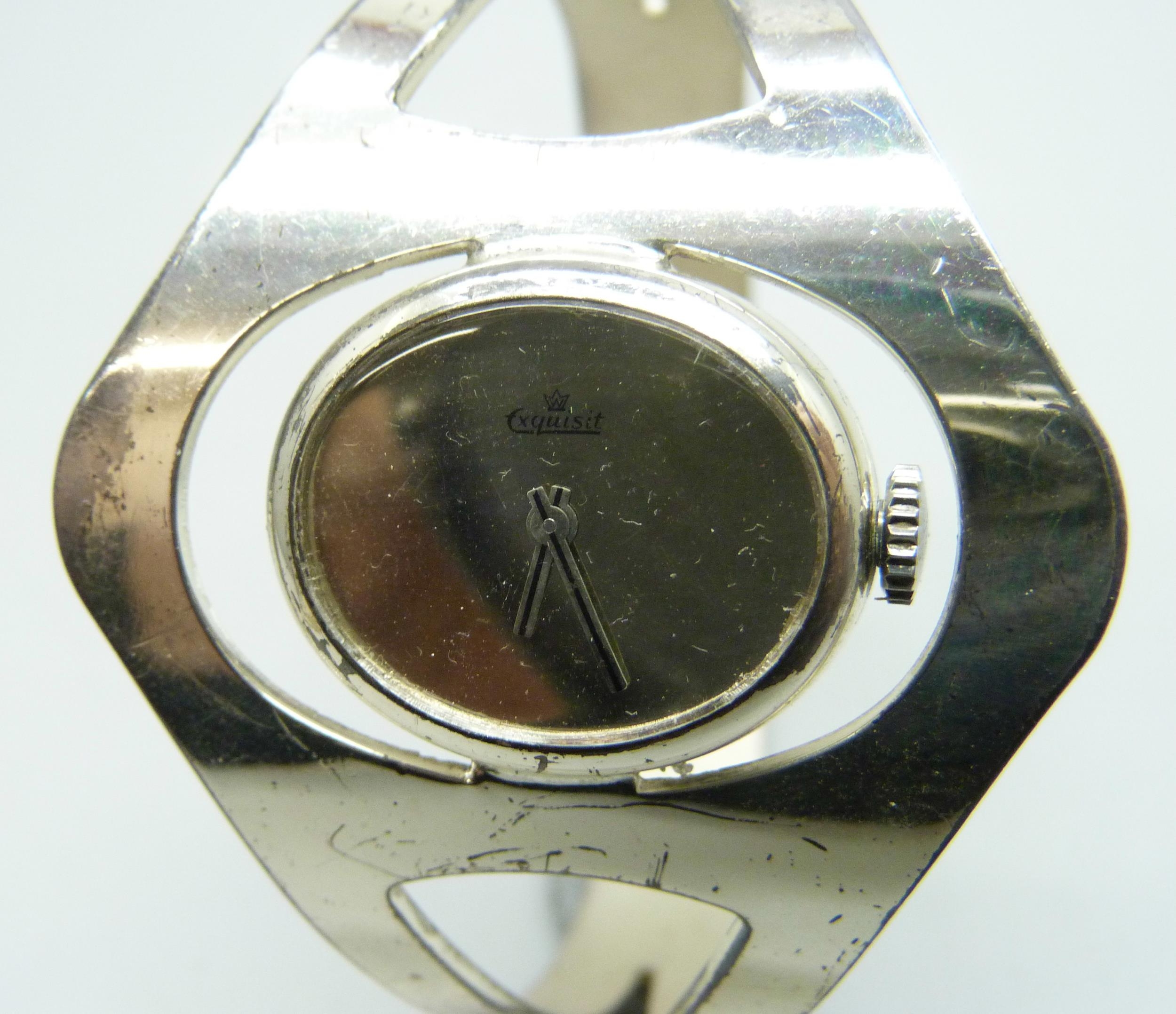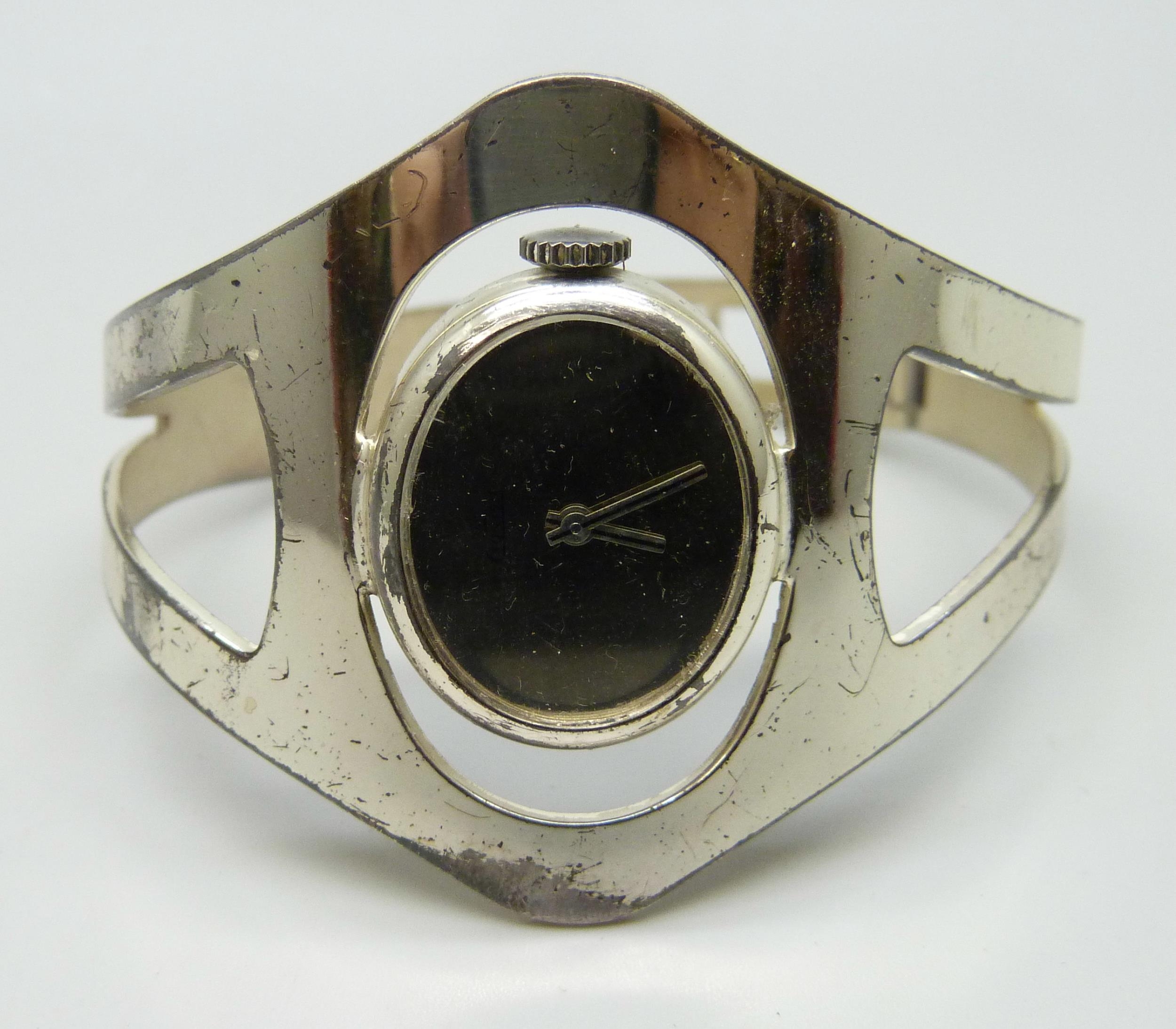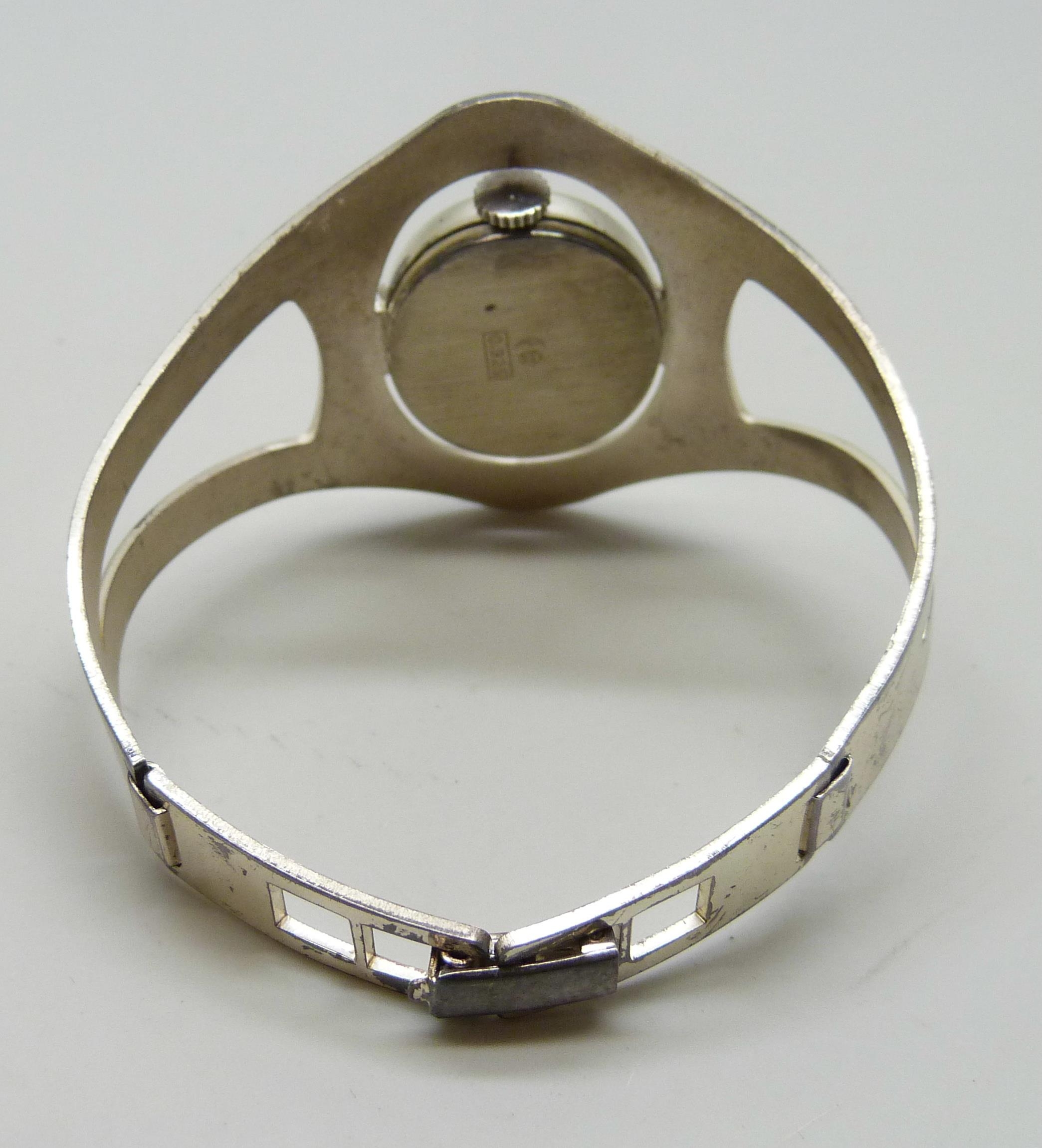 A German .925 silver Exquisit bangle watch, 43mm