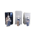 Three boxed Lladro porcelain figurines. Including Mediatio (blue), Time to Sew (blue) and Pals Forever #07686.