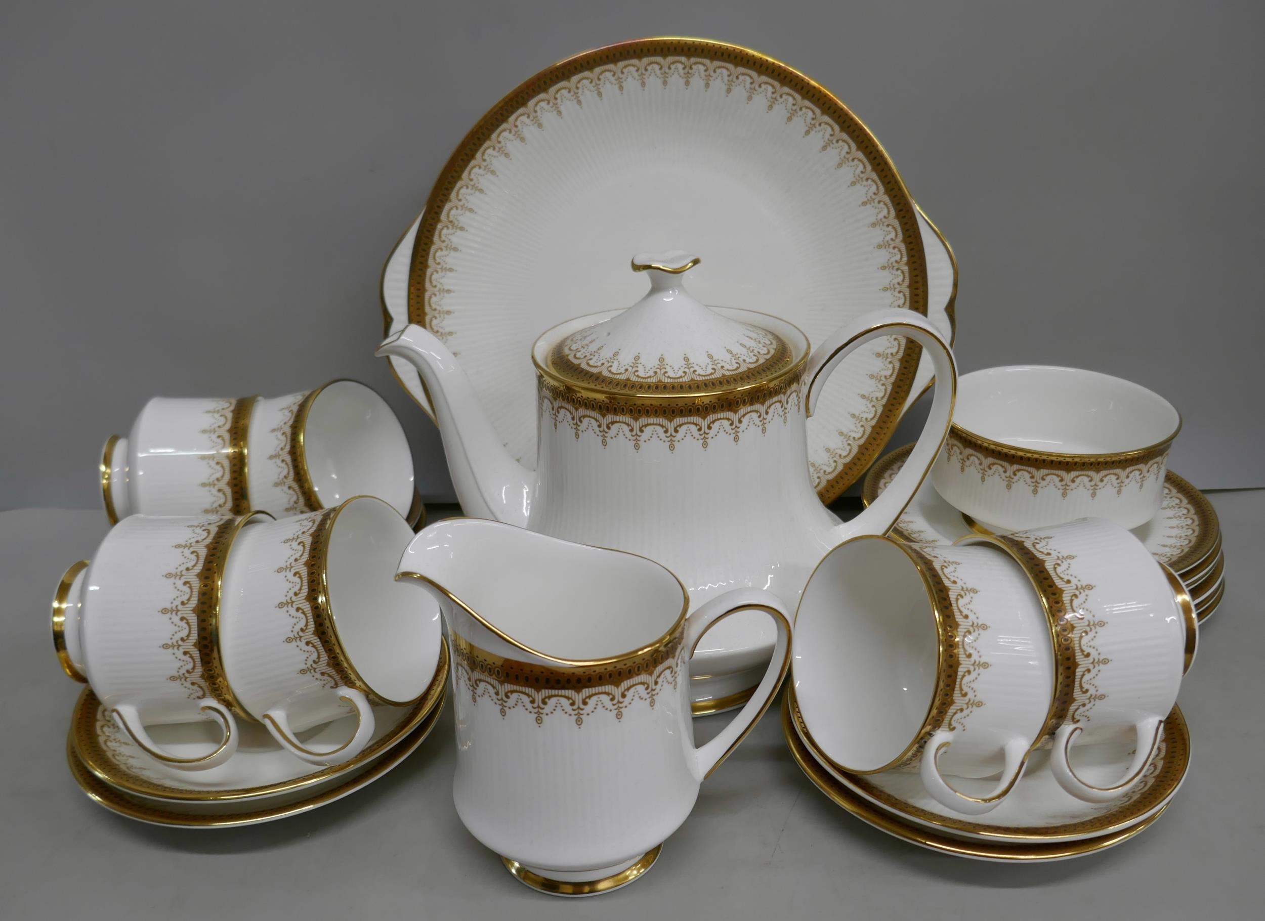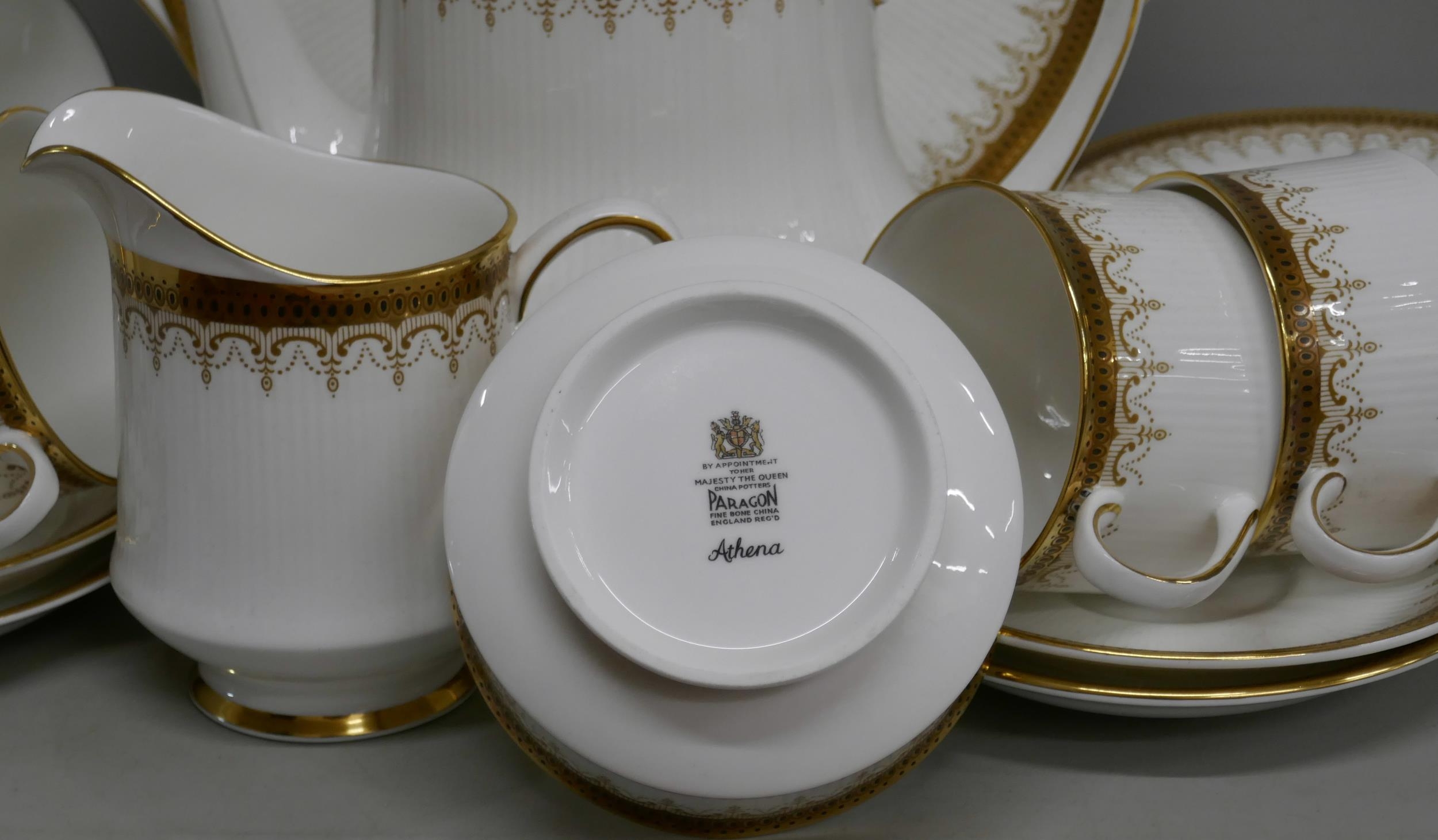 A Paragon Athena fine bone china tea service including teapot, cake plate, cups, saucers and side plates