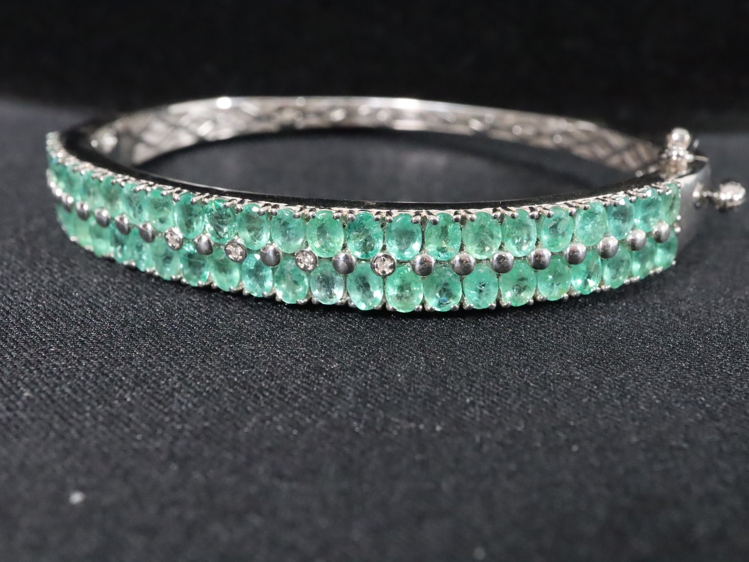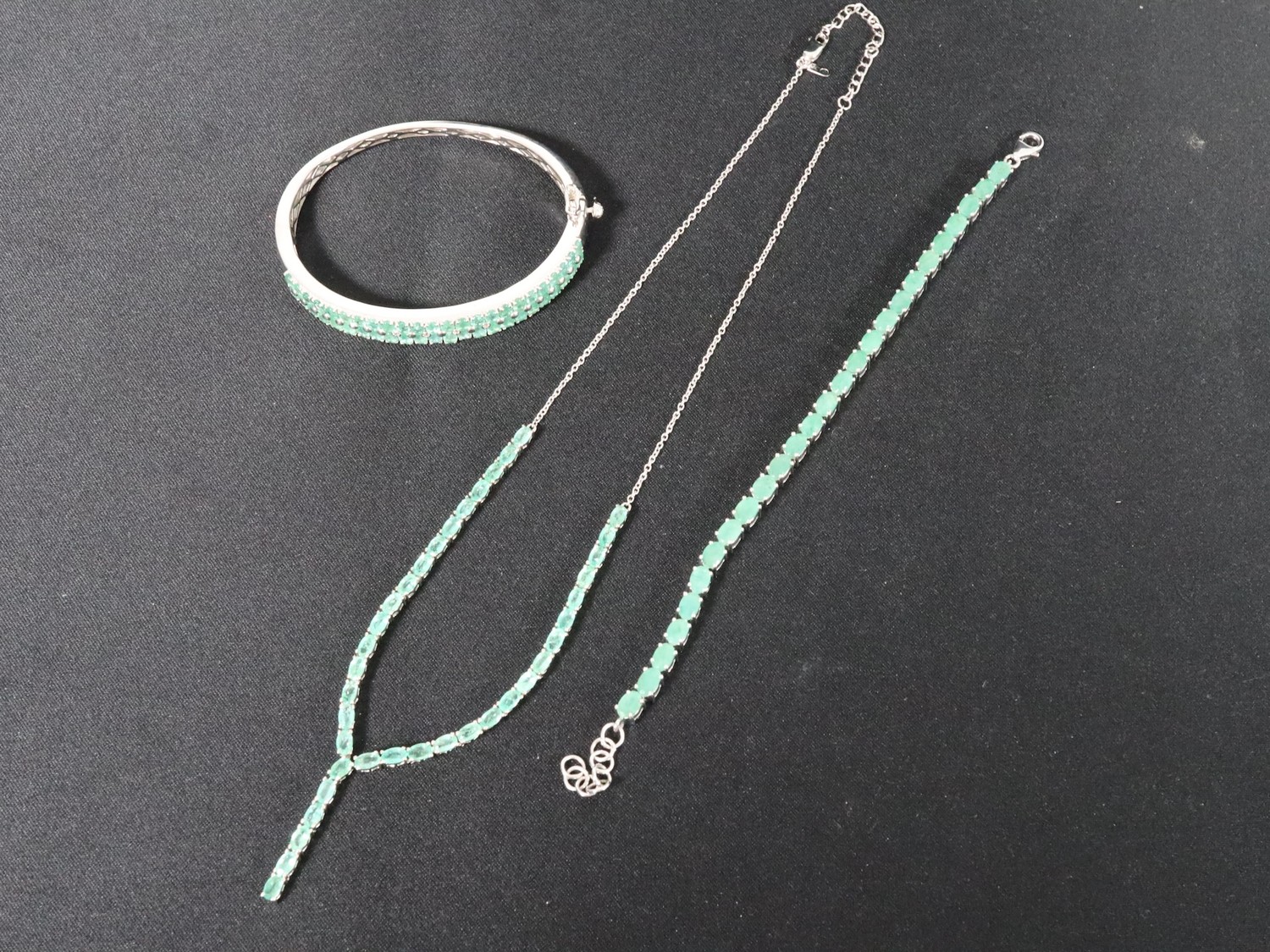 Zambian Emerald & Diamond Sterling Silver Oval Bangle Atgw 7.61cts 13ct Minas Geraid Emerald Sterling Silver Bracelet (8") & 8.32ct Zambian Emerald Sterling Silver Necklace (18")