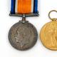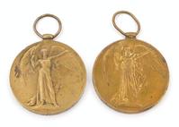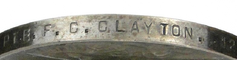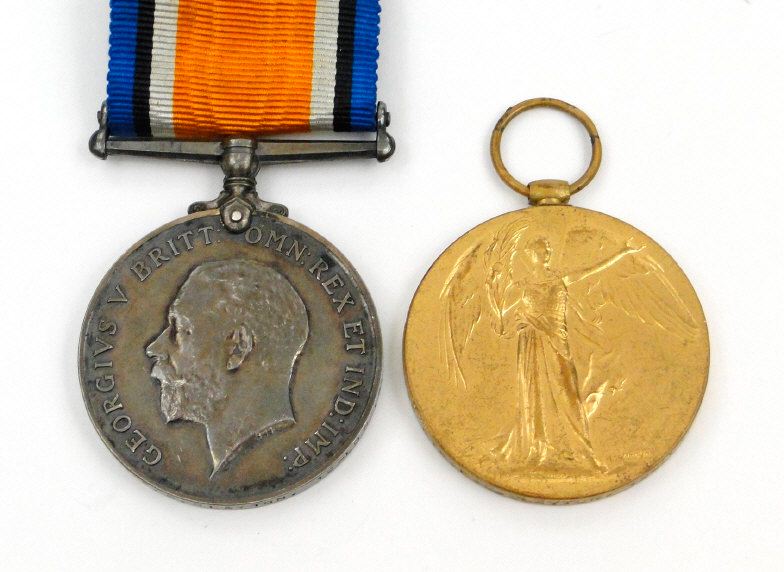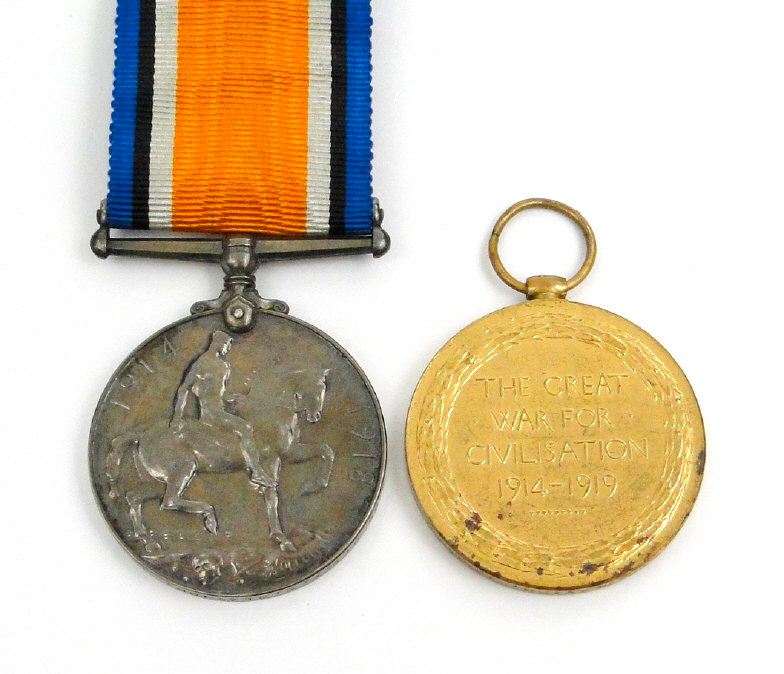 World War I British military medal group comprising 1914-18 War medal and Victory medal, each marked 5689 PTE.F.C.CLAYTON.12-LOND.R. to the rims