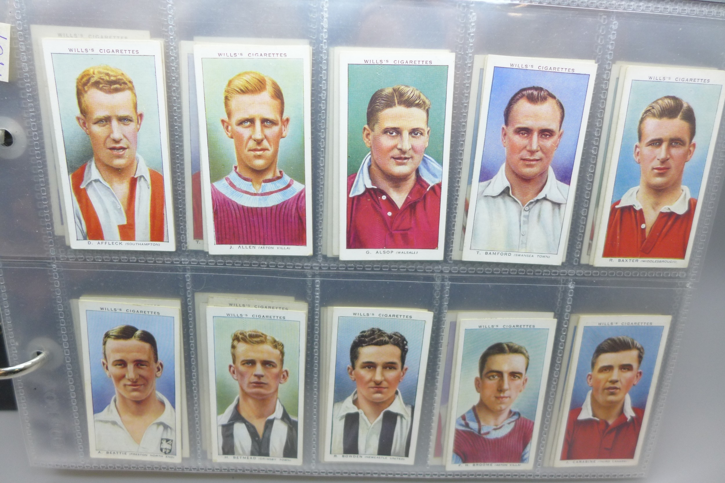 Cigarette cards; an album containing ten complete sets of Will's cigarette cards, includes Association Footballers, butterflies, moths, etc.