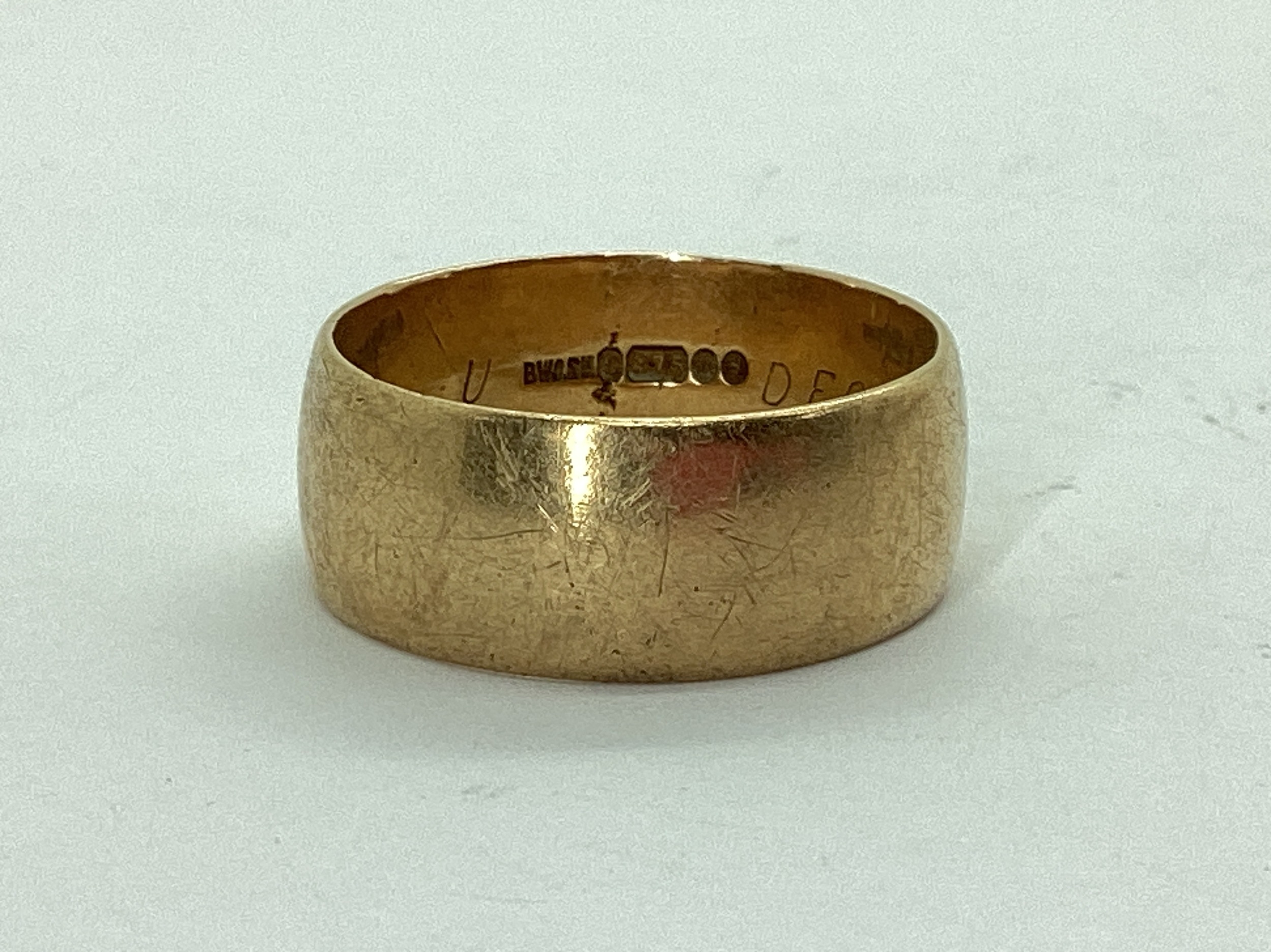 A 9ct Gold Wide Plain Wedding Band (finger size U/V) (6.2grams).