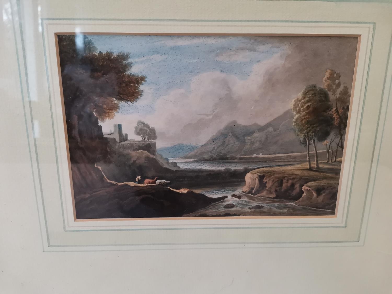 Benjamin Barker (1776-1838)watercolour Welsh Country Landscape with River, framed and glazed 13 cms x 19 cms