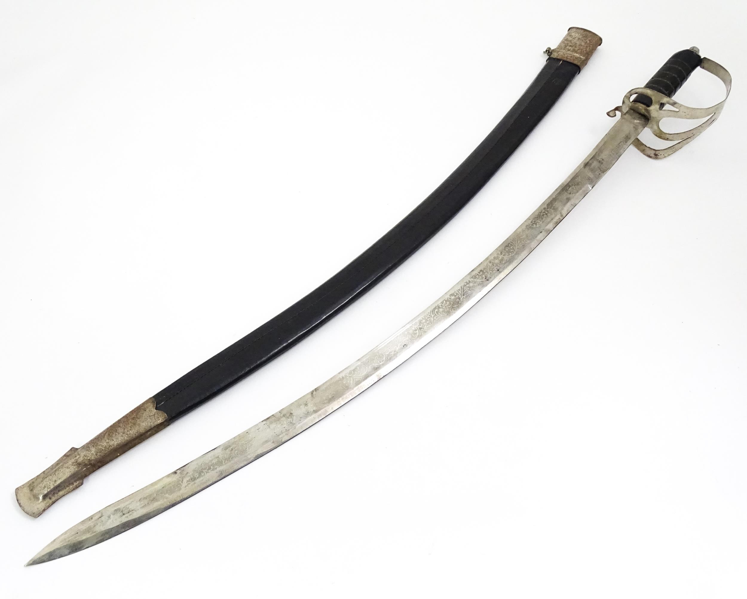 A mid 20thC Indian display sword / sabre and scabbard. Approx 38" long