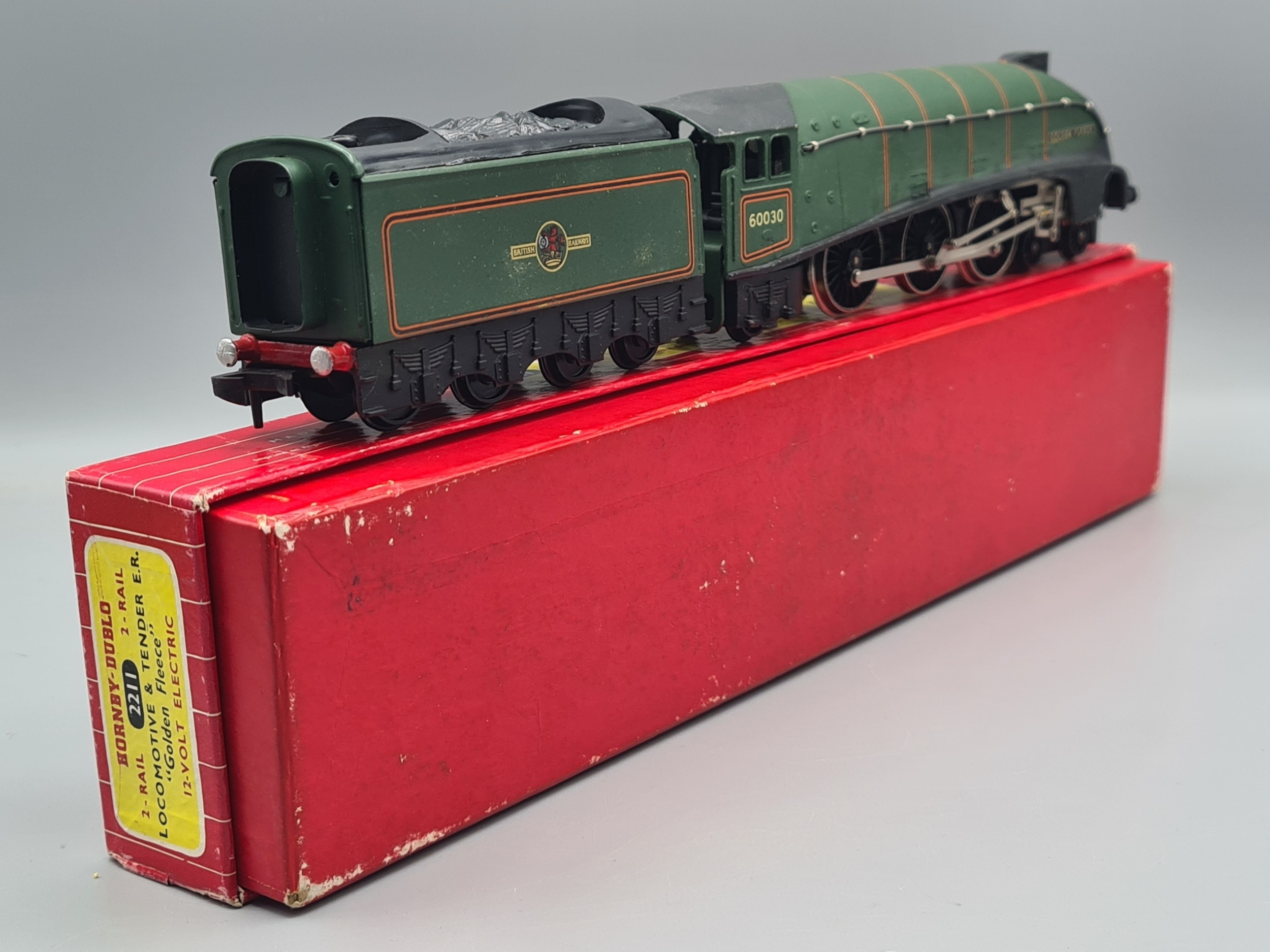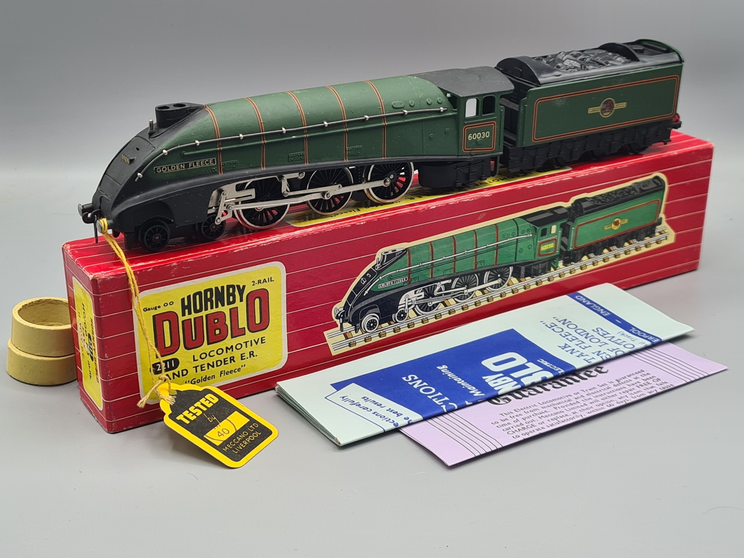 A boxed Hornby Dublo 2211 'Golden Fleece', unused in mint condition. Superb box with no tape residue, complete with instructions, guarantee, test tag and tube of oil