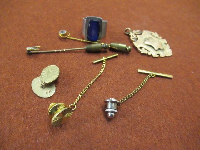 9CT GOLD FOB AND A CUFFLINK ETC