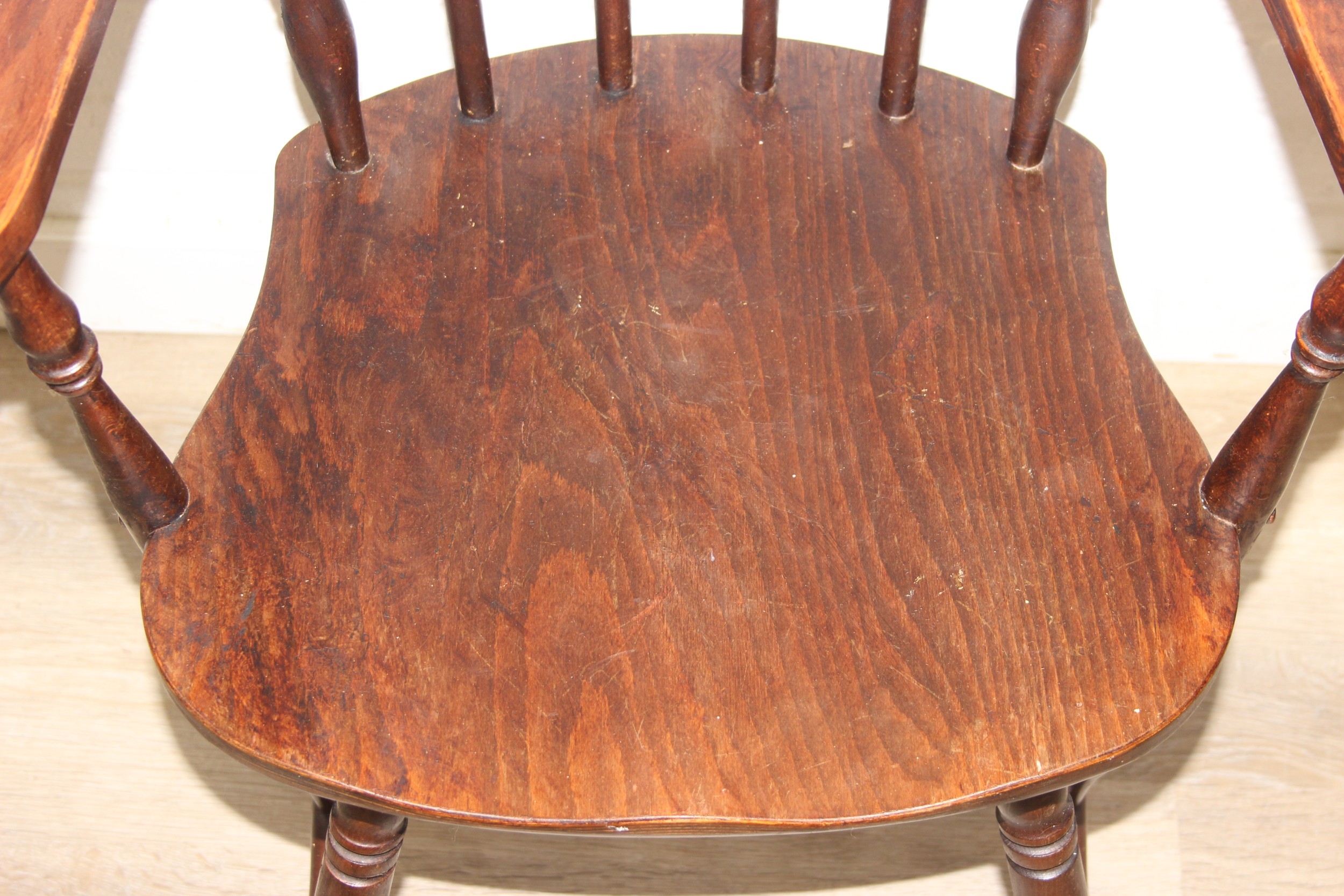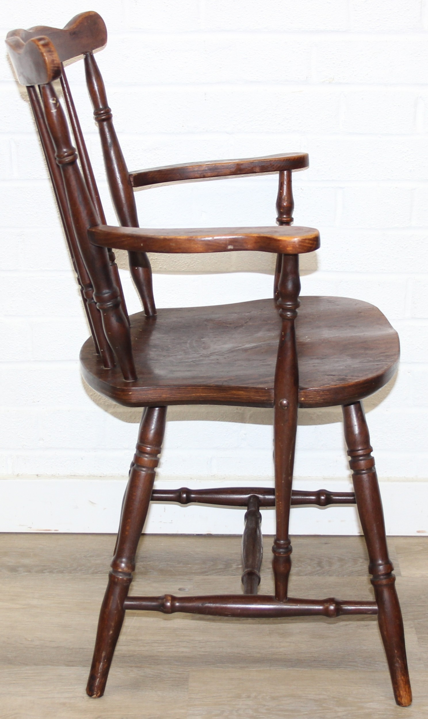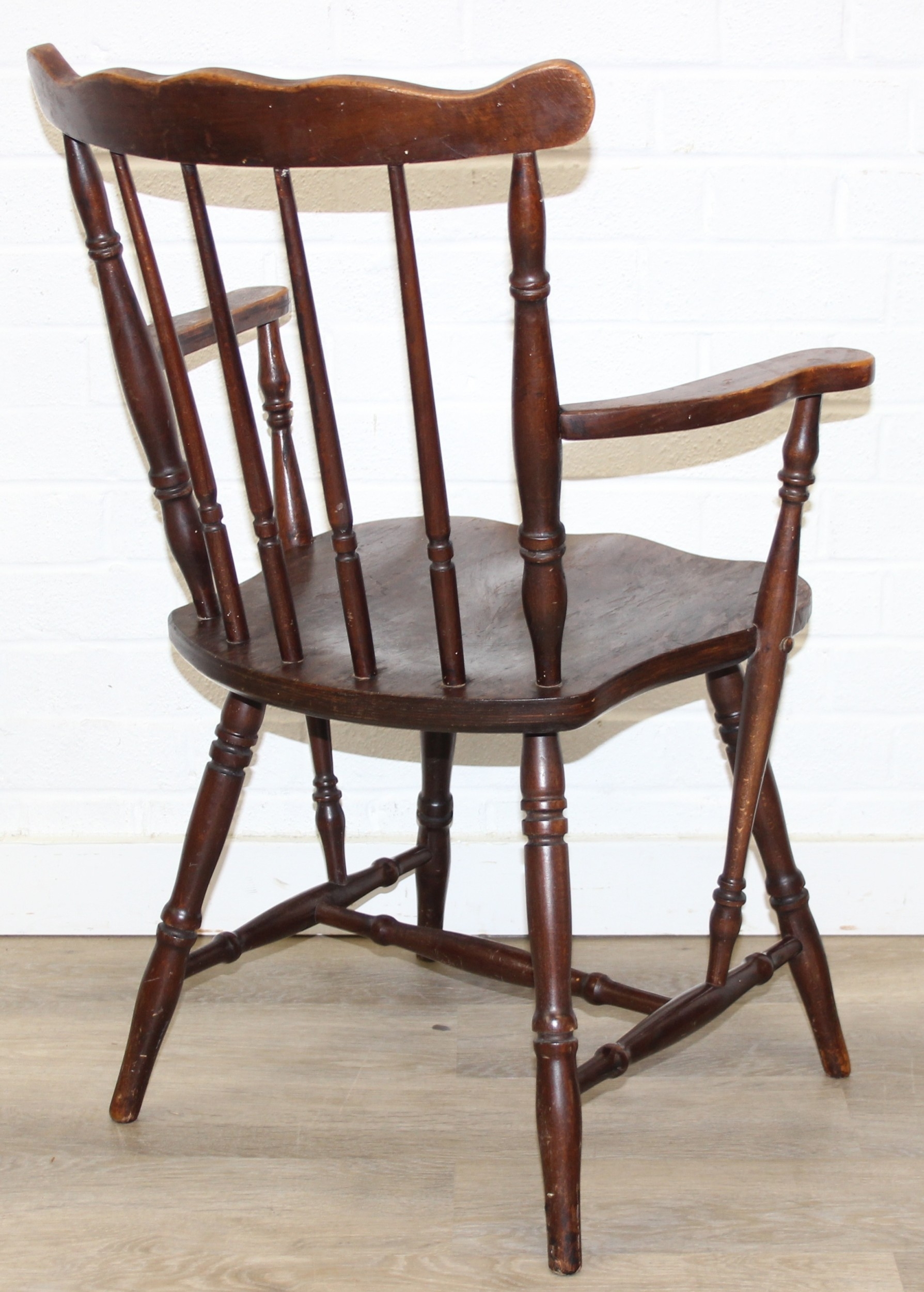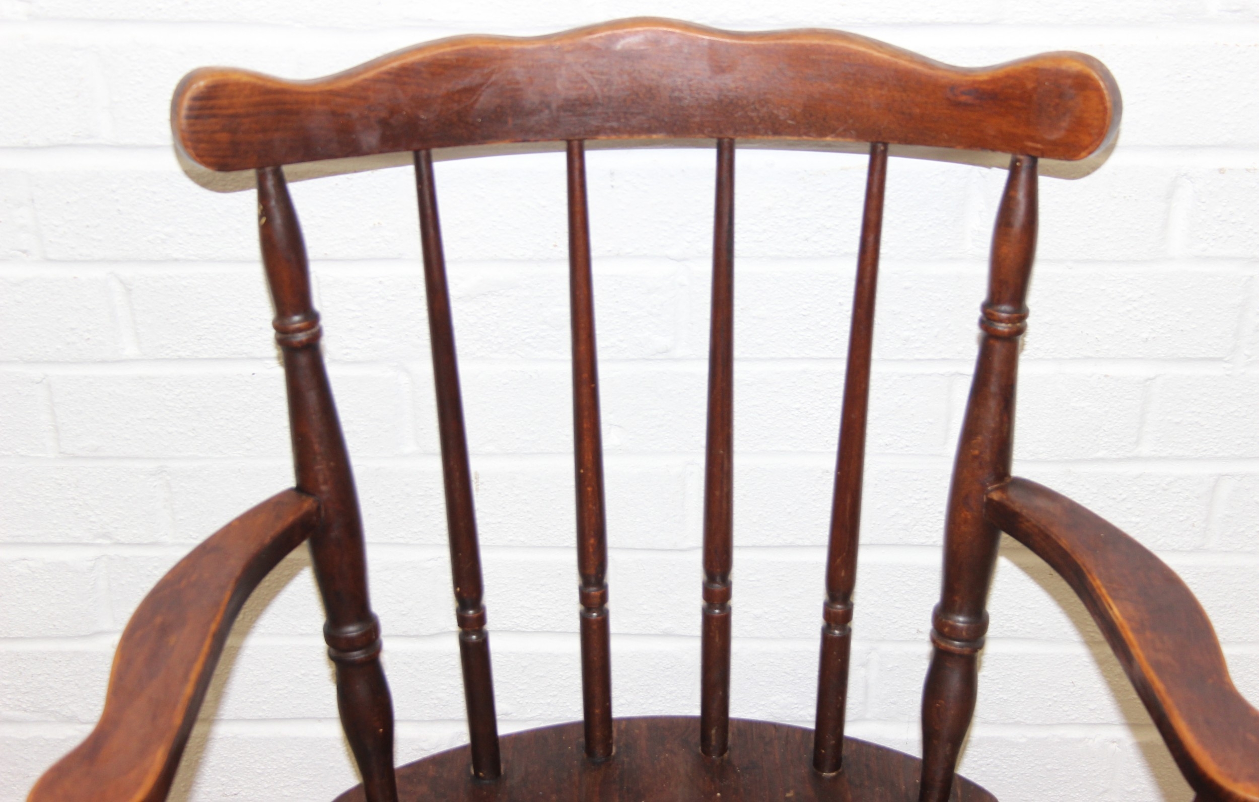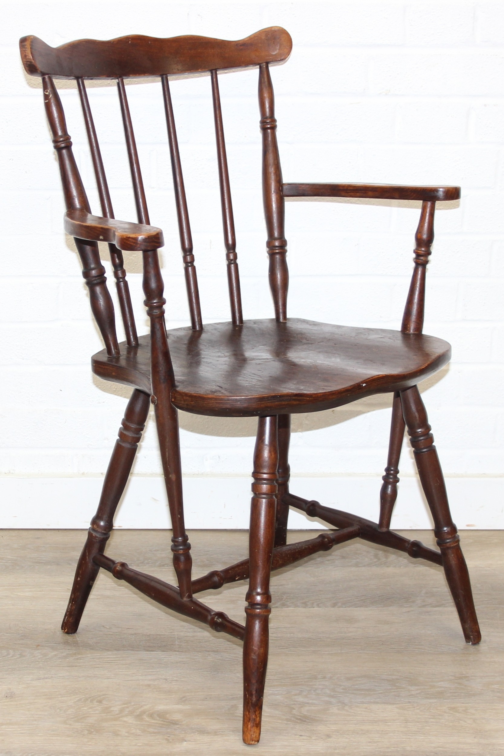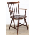 A vintage farmhouse stickback armchair of unusual form, 86cm tall