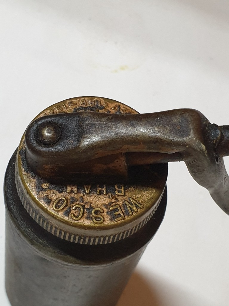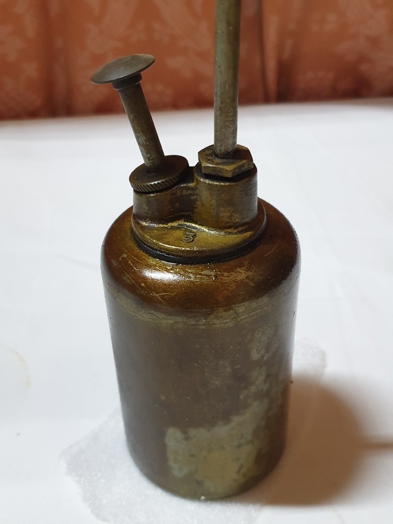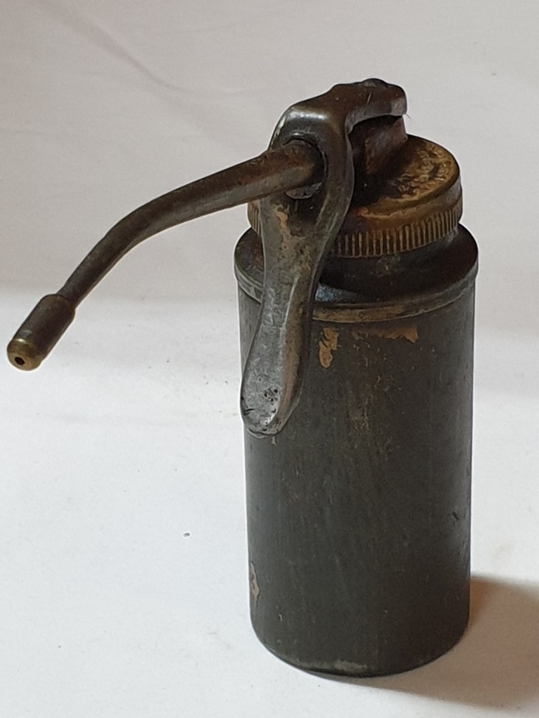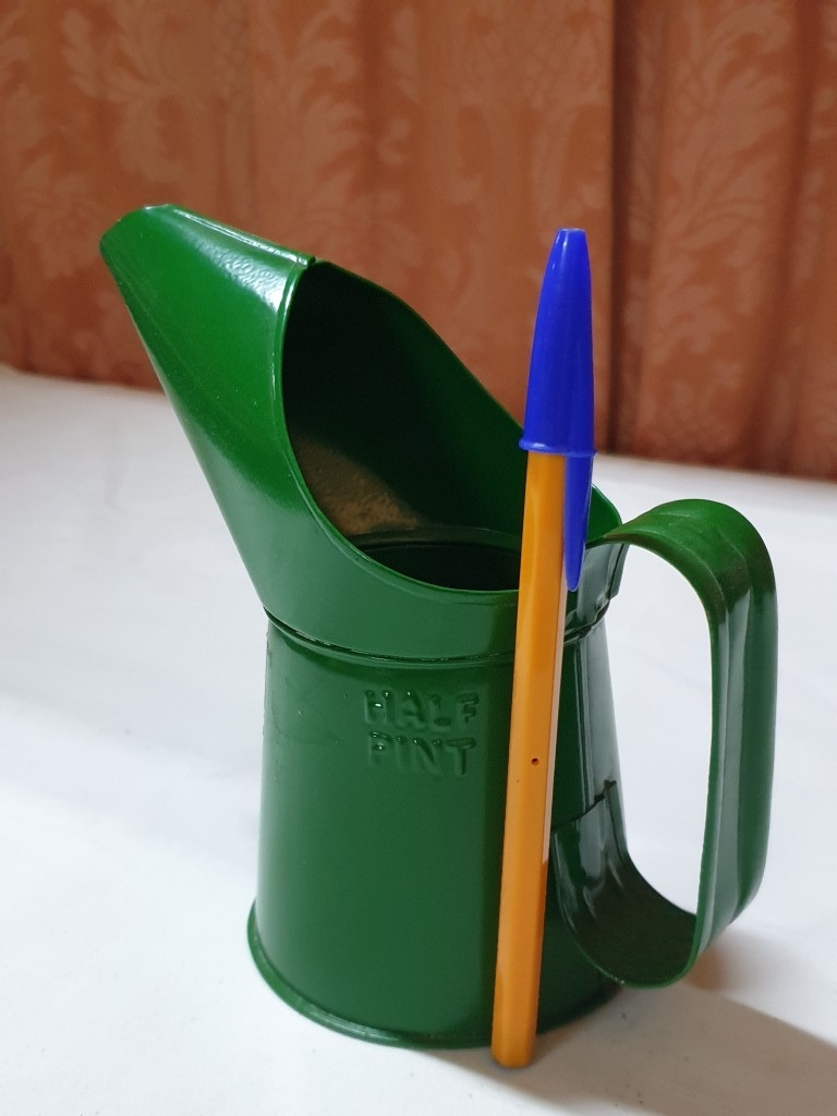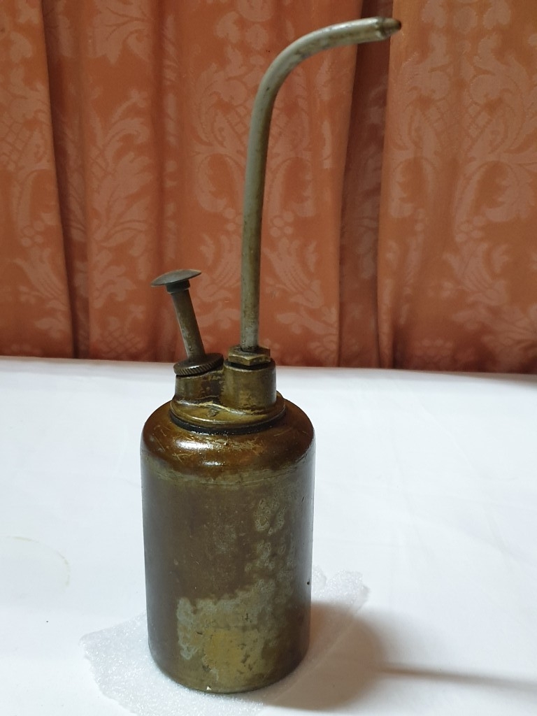 2 vintage pump action oil cans & ½ pint oil pourer jug , oil cans – 26cm & 15 cm high and pourer – 15cm high (3 pcs)