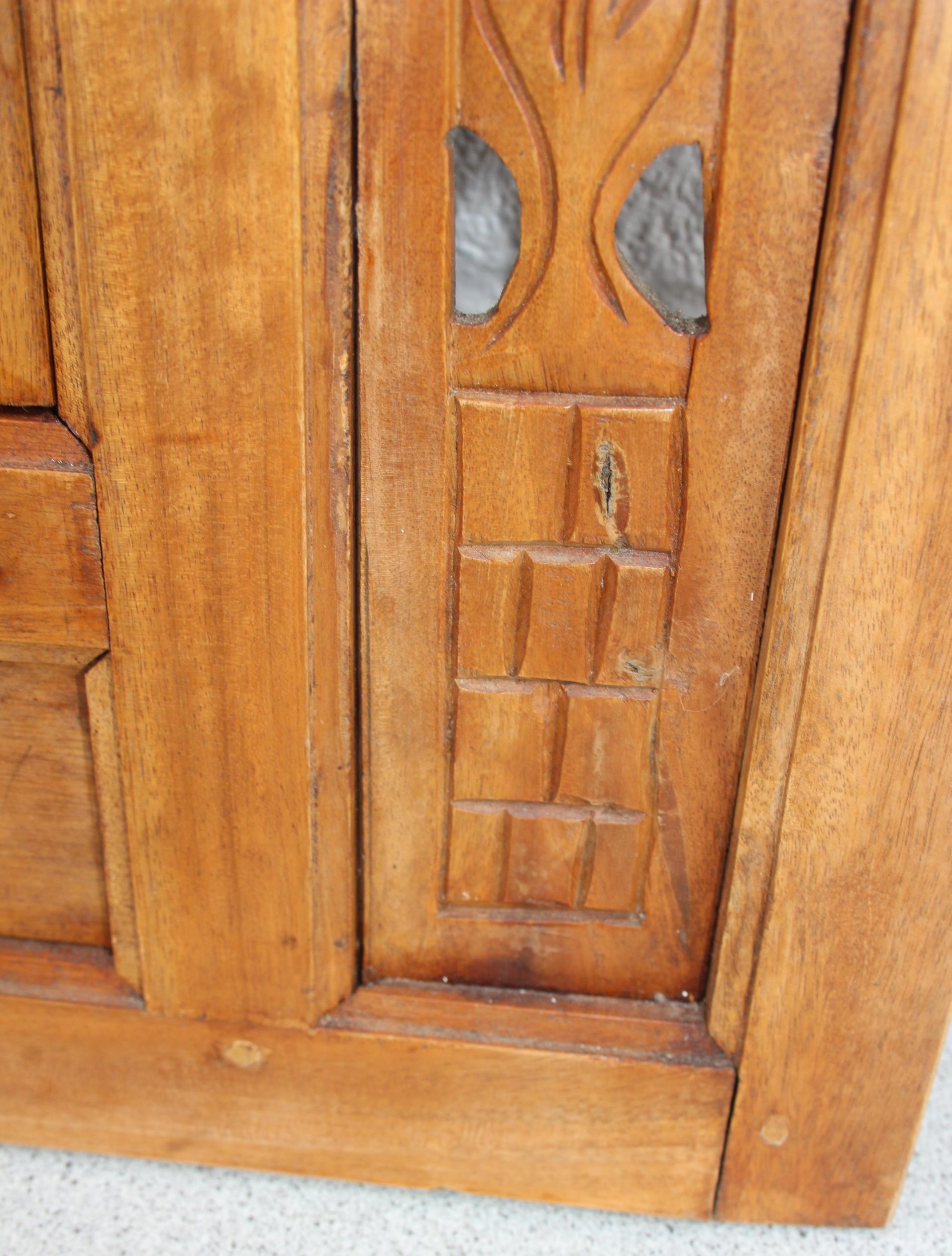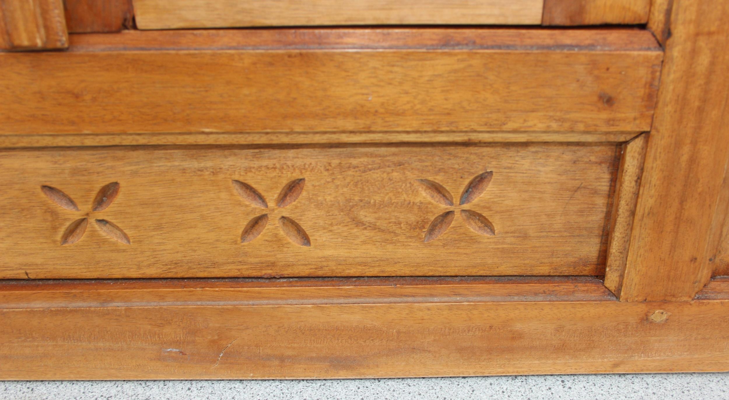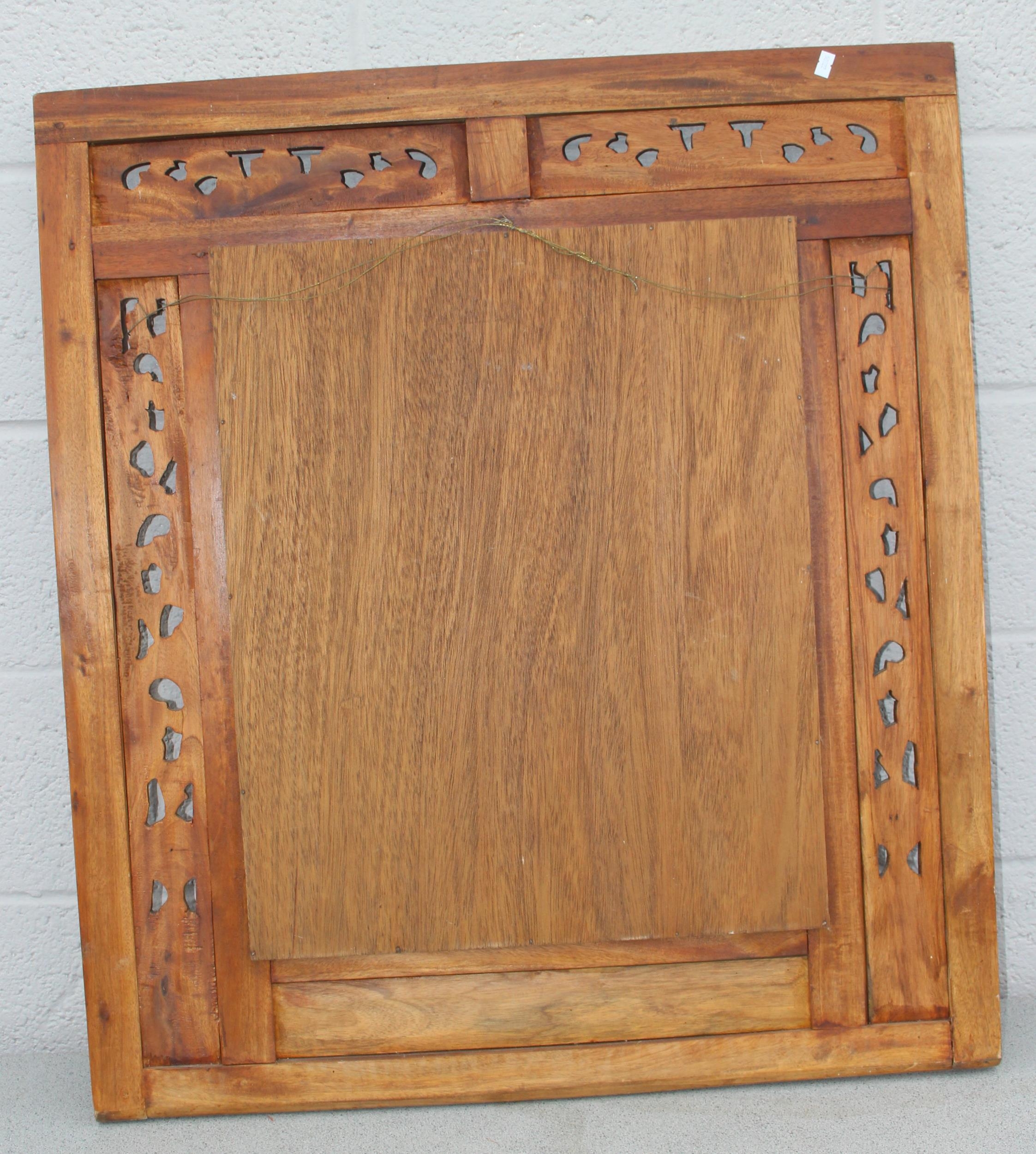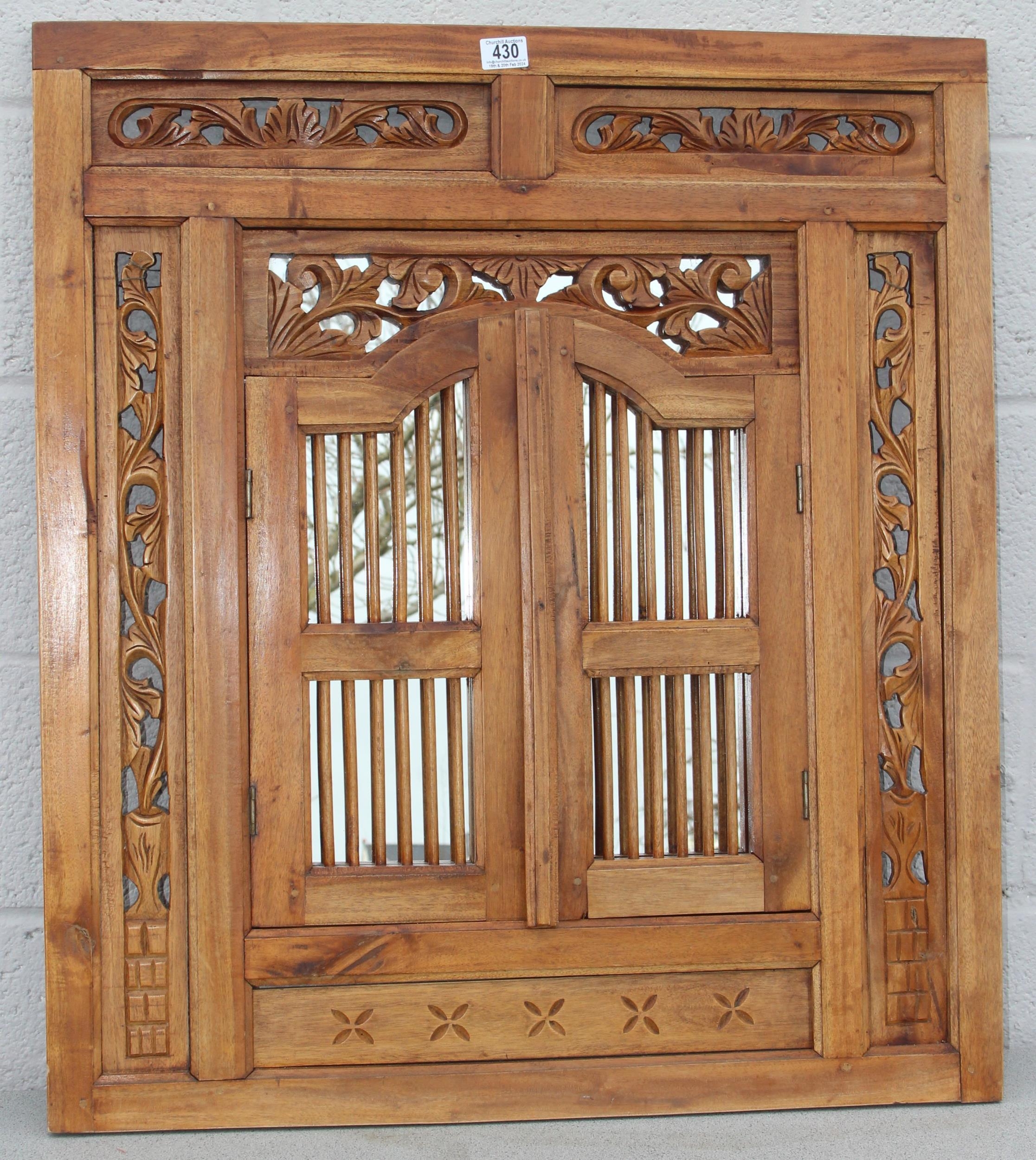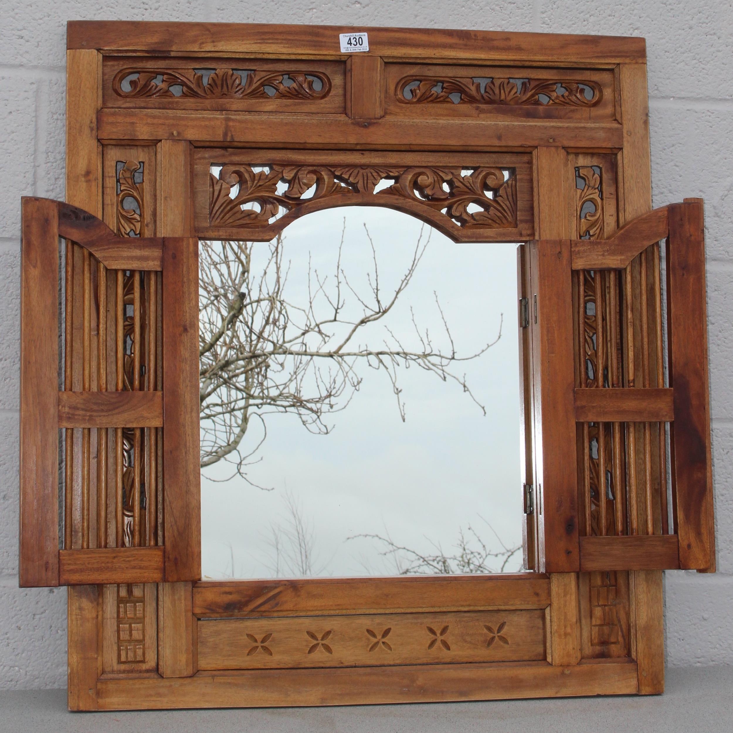 A vintage carved wooden shutter wall mirror, approx 80cm x 90cm,