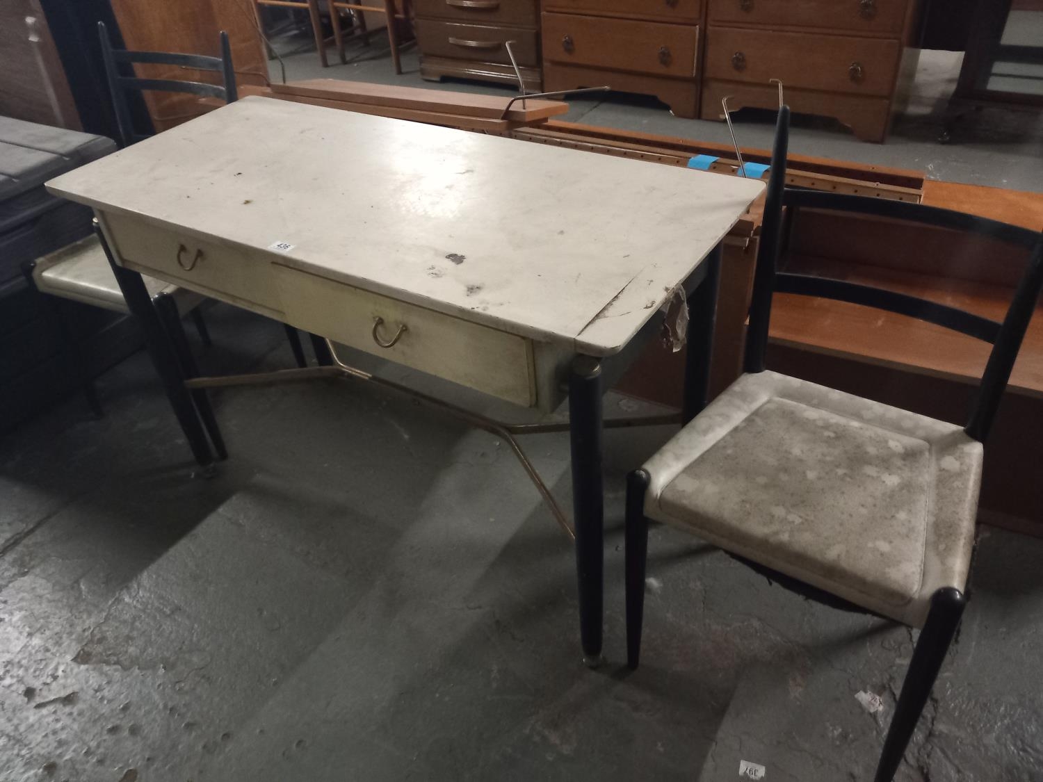A G Plan two drawer desk and two chairs