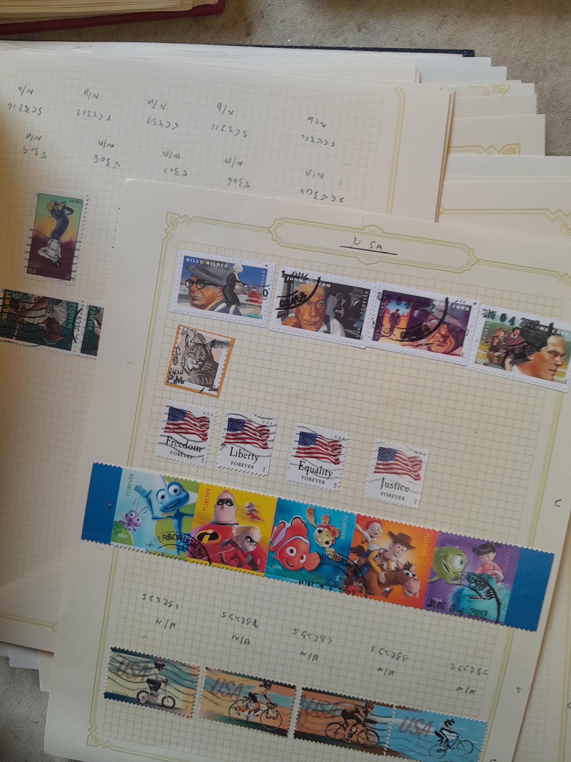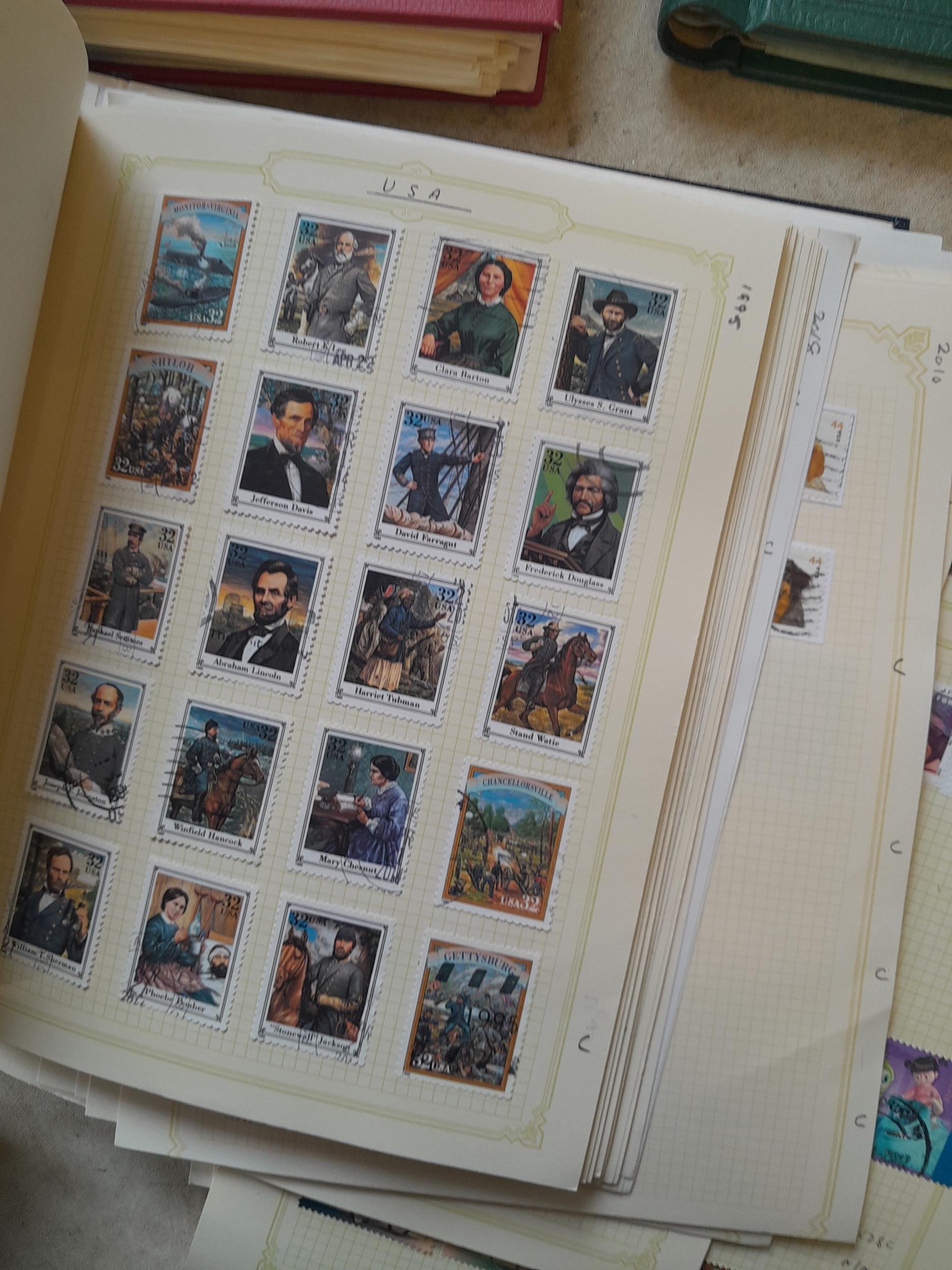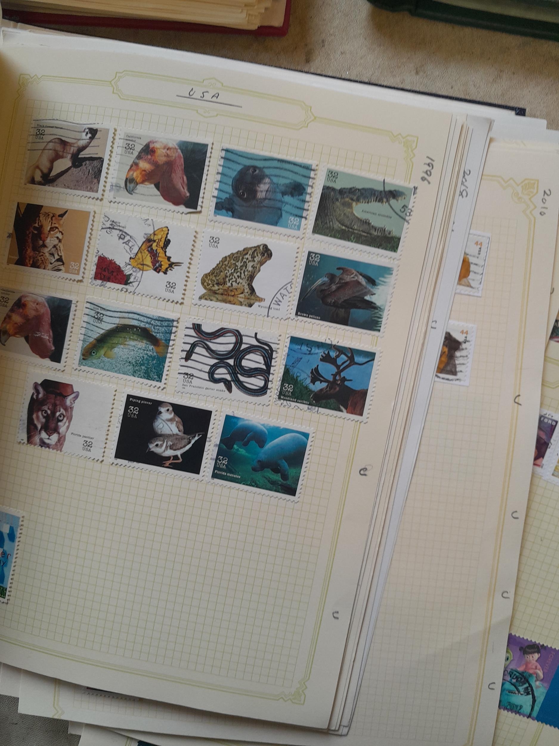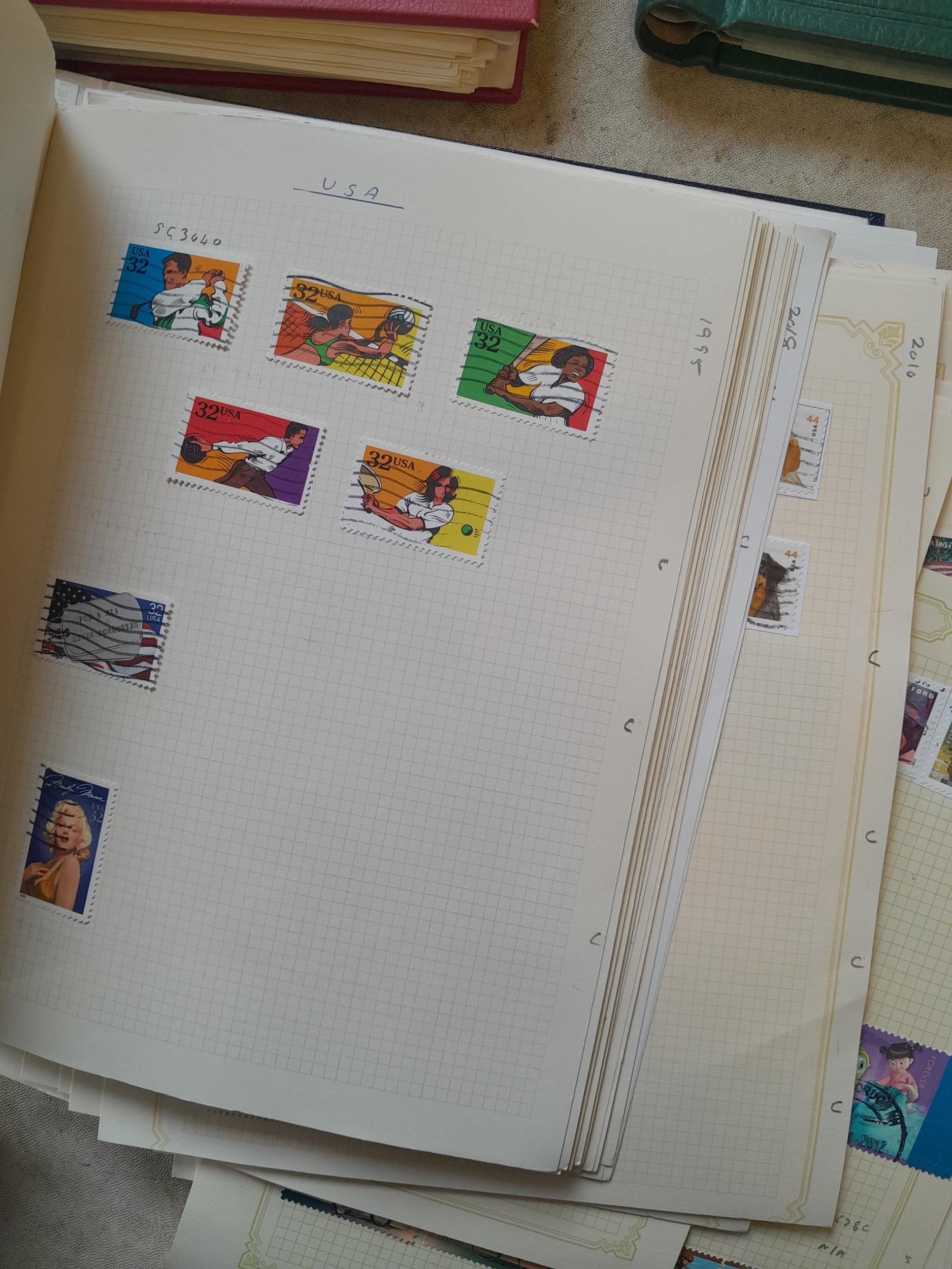 Stamps of USA in three folders 1000 plus stamps mint unused and used, only a small sample photographed