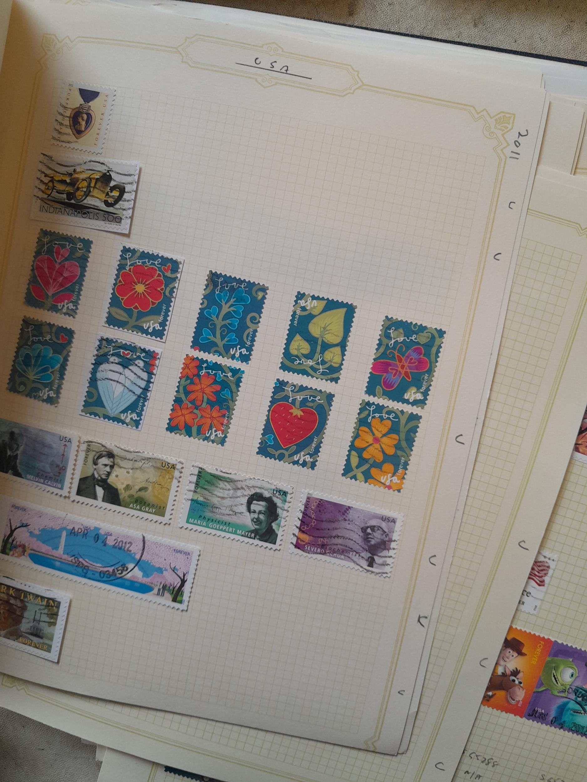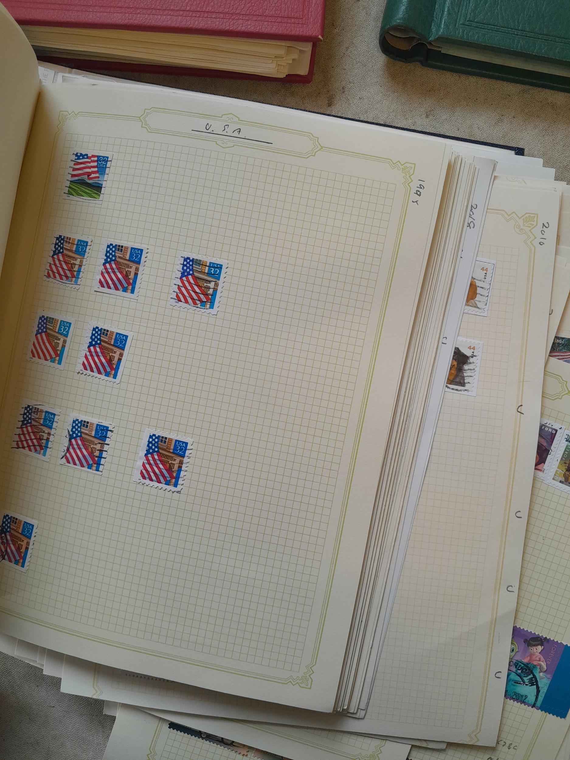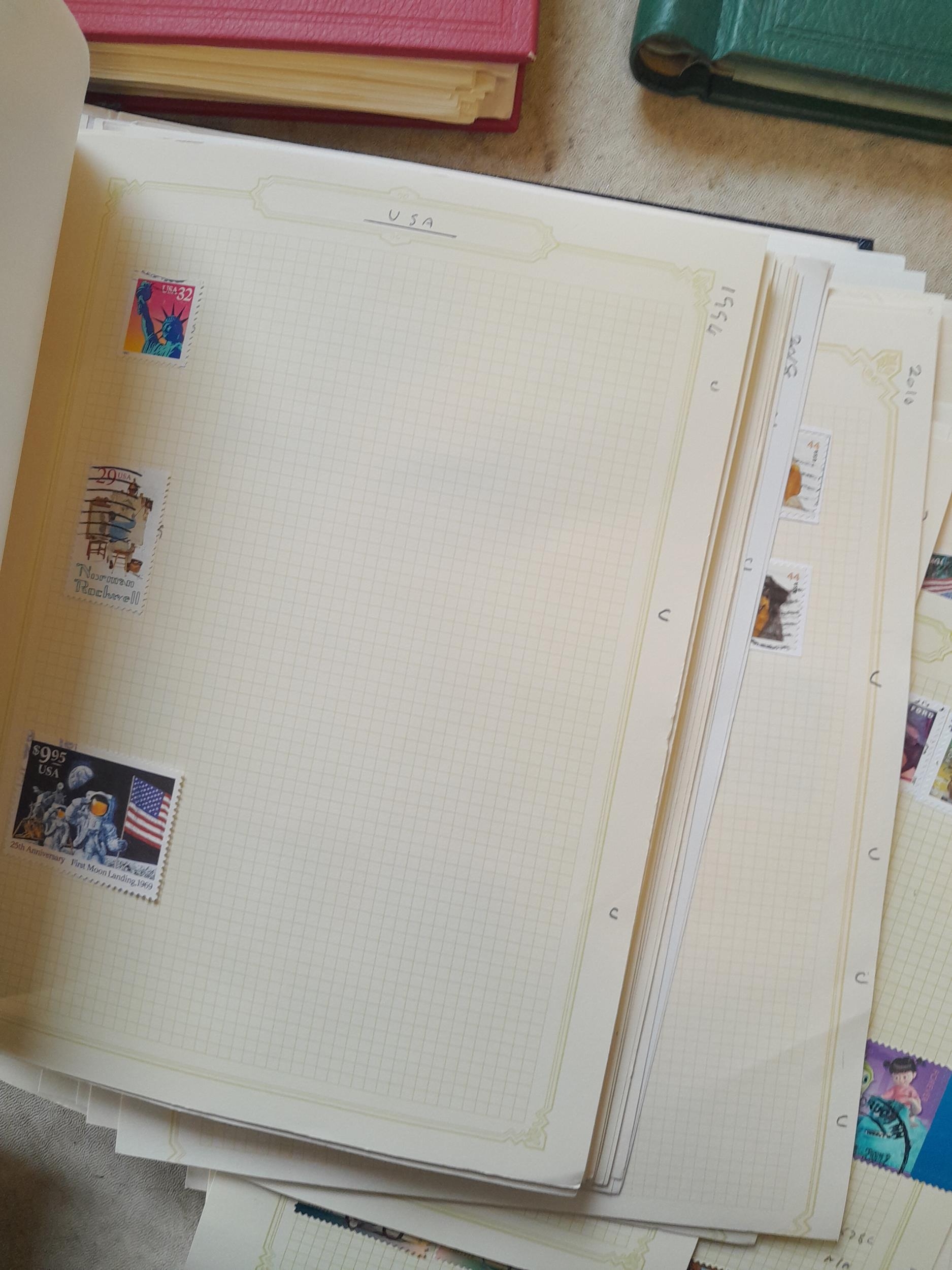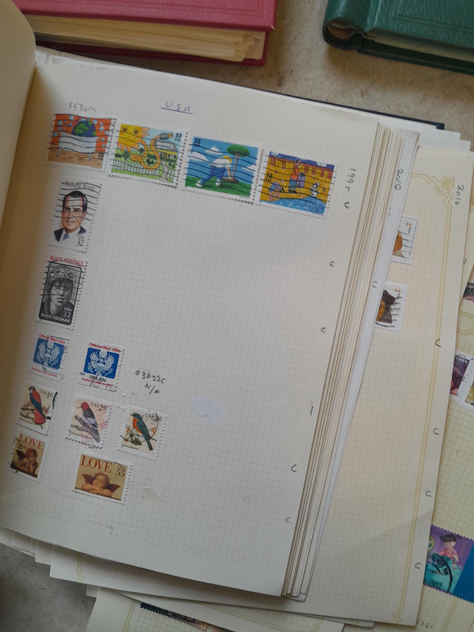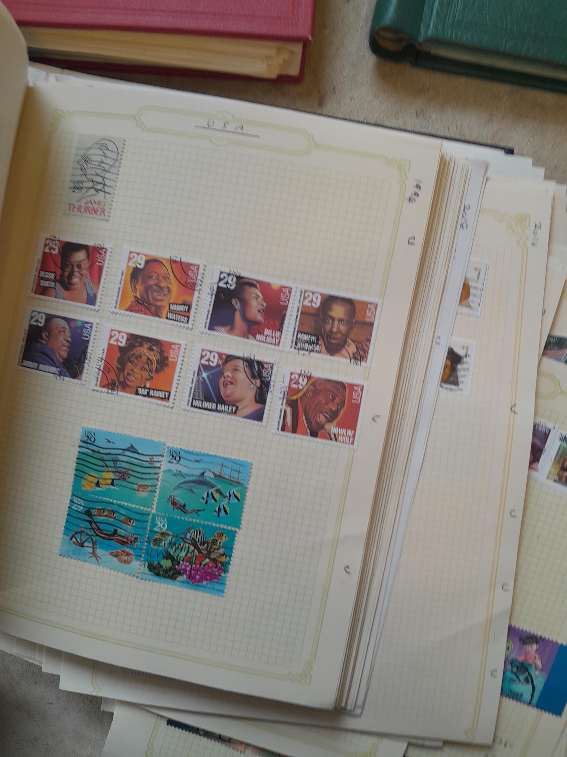 Stamps of USA in three folders 1000 plus stamps mint unused and used, only a small sample photographed