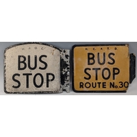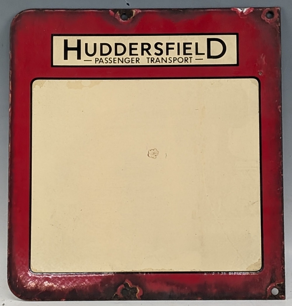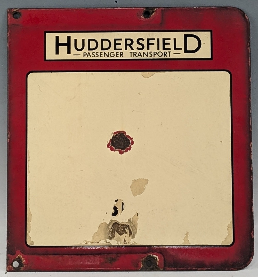 Huddersfield Passenger Transport Bus Stop double sided Enamel Sign, size #33cm x 36cm