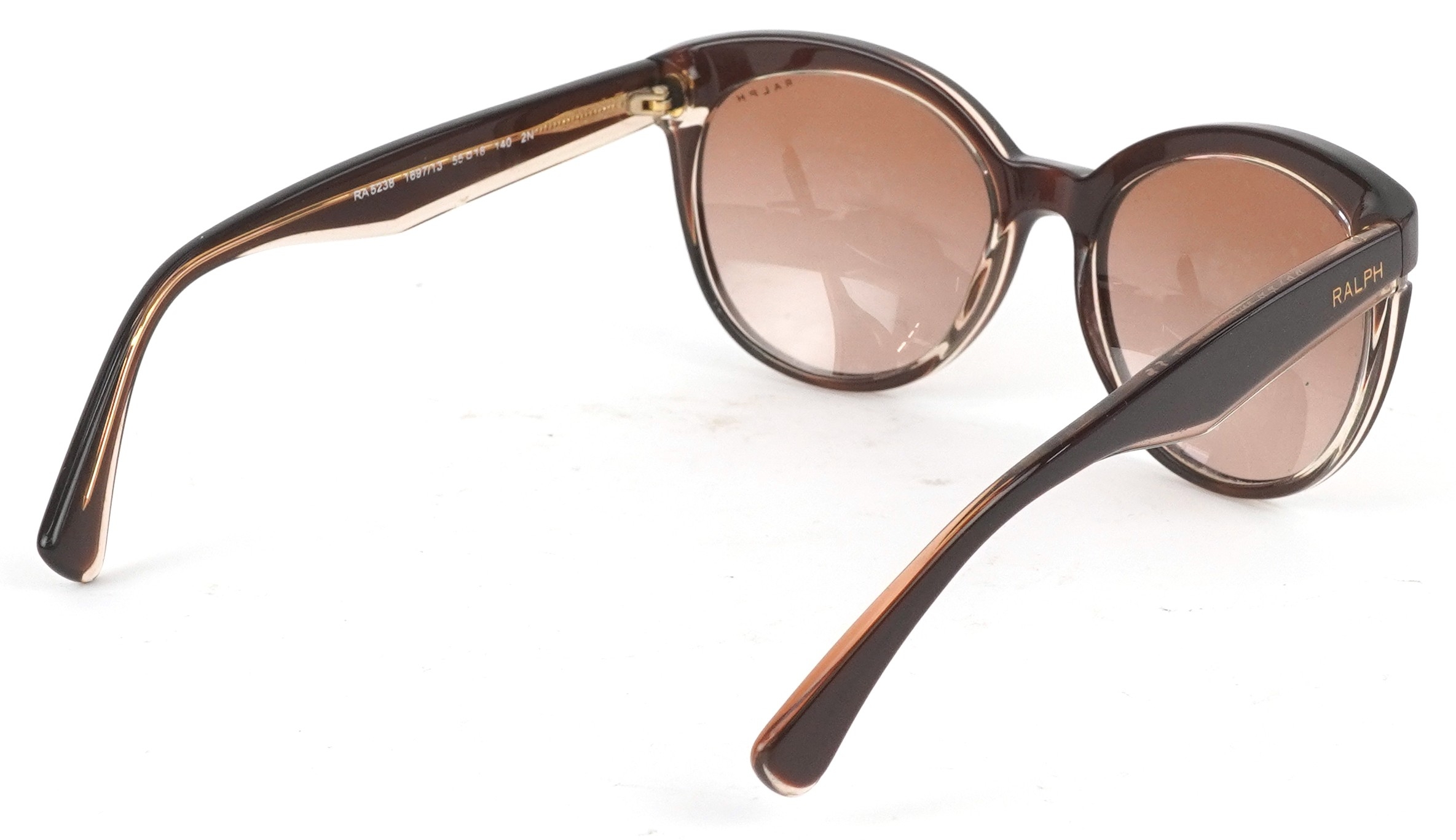 A pair of Ralph Lauren sunglasses numbered RA5238 1697/13, with protective case.