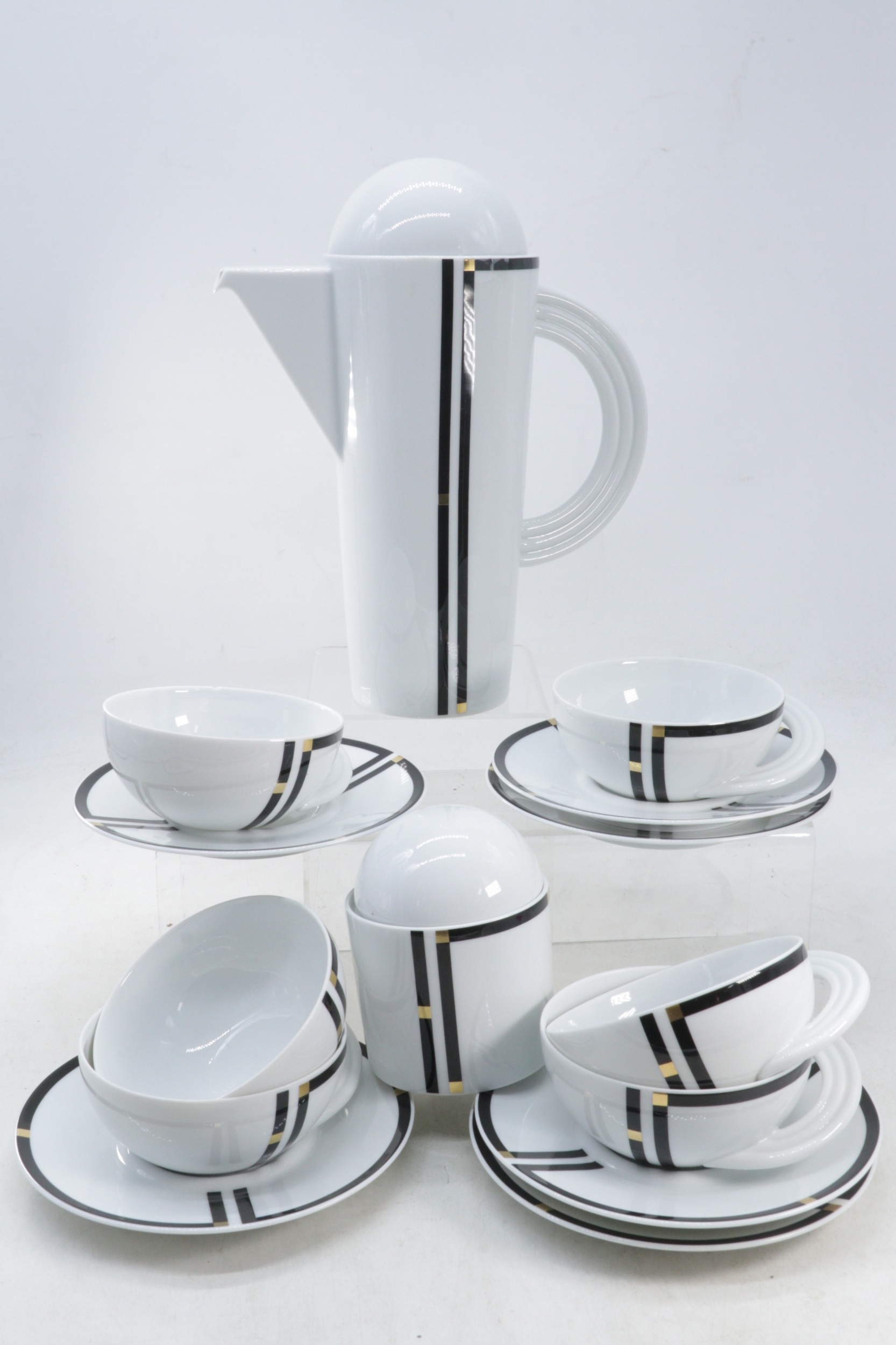 A Rosenthal studio-linie Cupola Nera part coffee set comprising of Coffee Pot, Sugar pot, six cups and six saucers