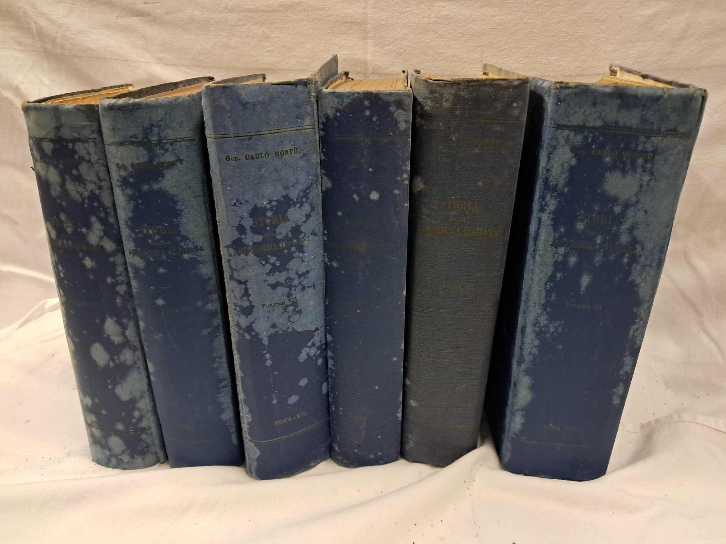 Gen. Carlo Montu "History of The Italien Artillery" in the Italien Language - 6 Volumes - poor Bindings Artillery" in the Italien Language - 6 Volumes - poor Bindings