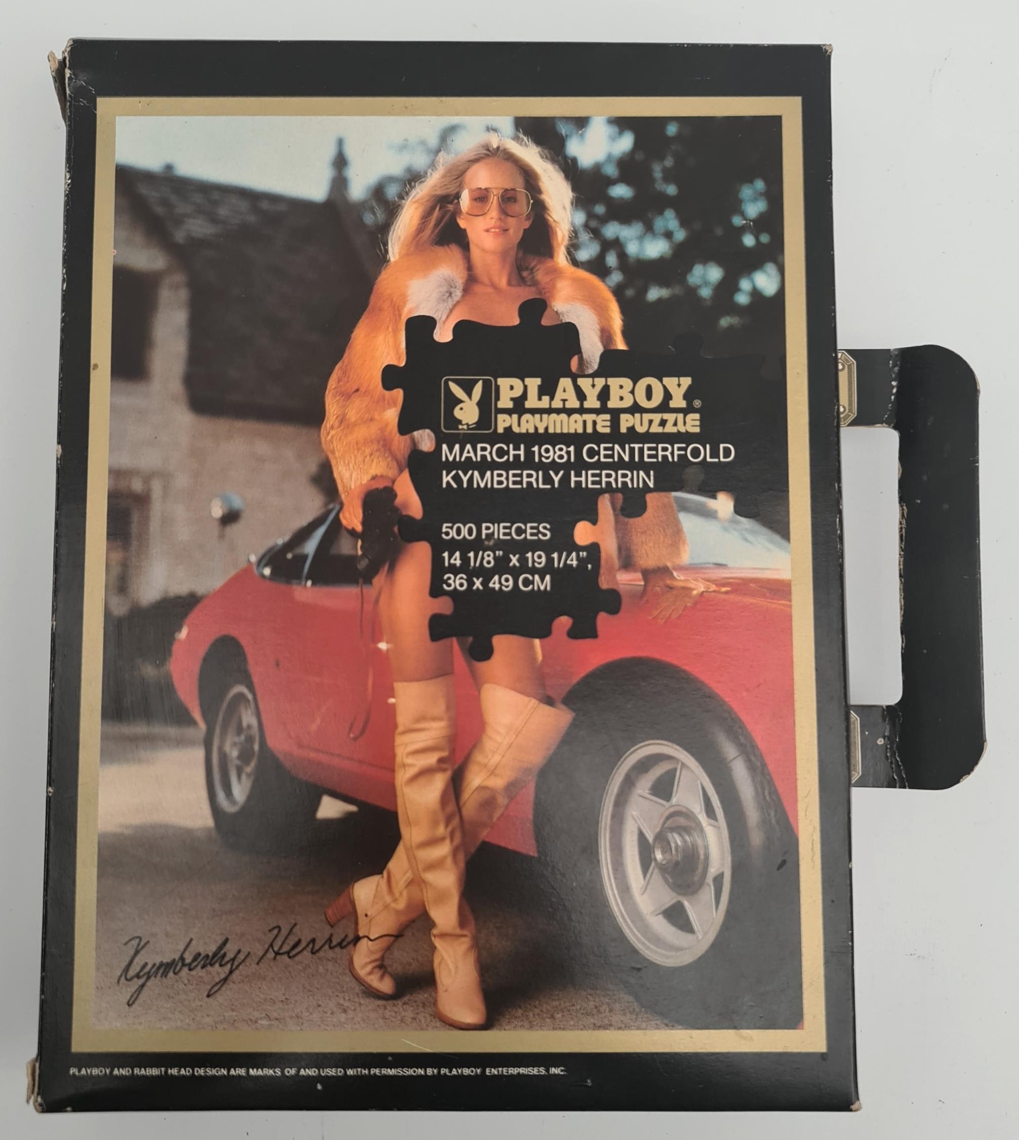Vintage Playboy Jigsaw Playboy Playmate Puzzle March 1981 Centrefold Kymberly Herrin 500 Pieces36 x 49cm in Original Box Shipping is available. Please ask for a quote before bidding. Where possible we combine shipping costs. Remember, if you are the highest bidder above reserve on this Lot you have bought the item and are legally responsible for the item. Viewing is recommended in either person or via video link. Contact us to arrange.