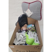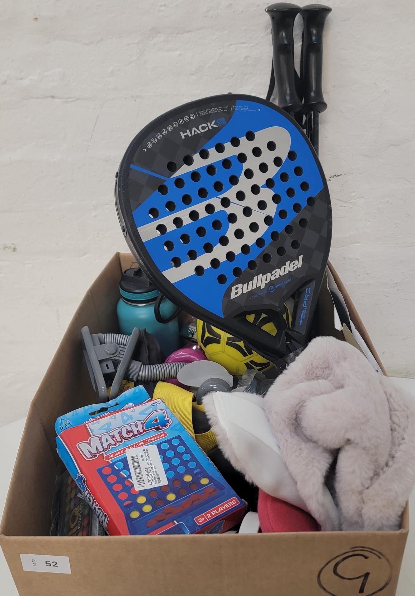 including: water bottles, souvenirs, games, googles, a fan, a hot water bottle, walking poles and a Bullpadel racket