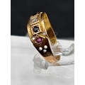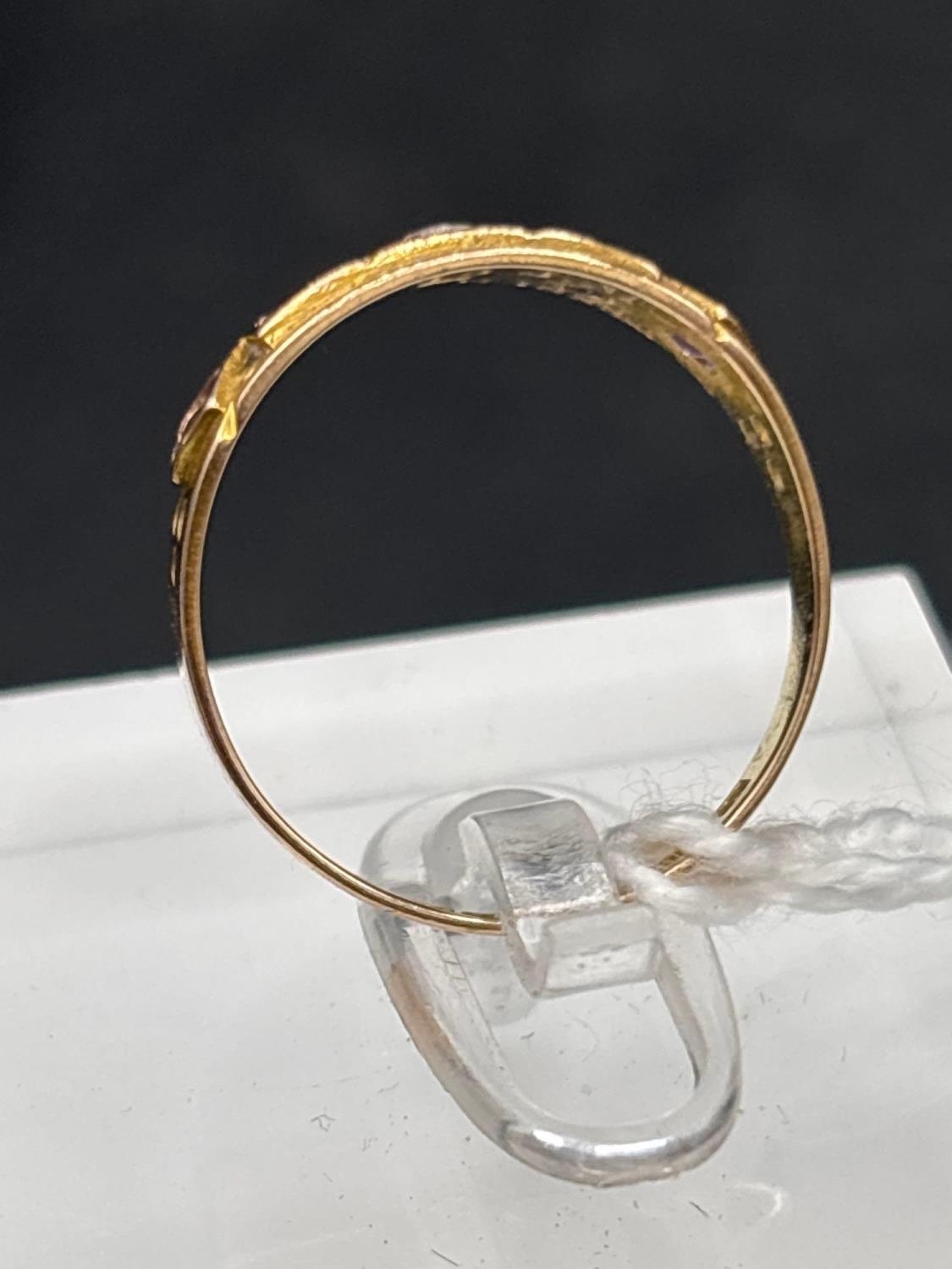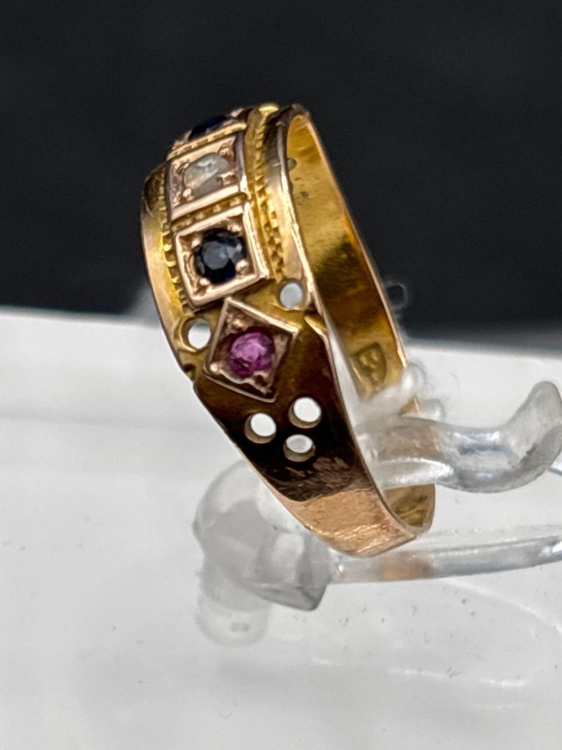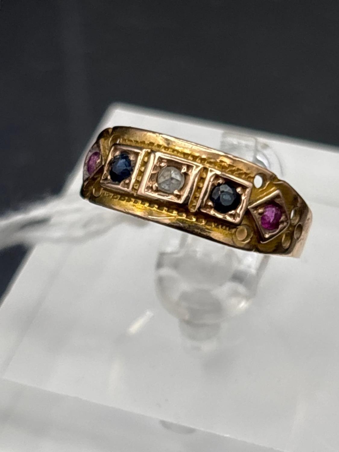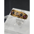 A Victorian gypsy set ruby sapphire and diamond ring inscribed June 1888 15ct gold size O 2.2 gms