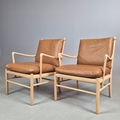 ATTRIBUTED TO CARL HANSEN & SON COLONIAL CHAIRS, A PAIR. by Ole Wanscher, 66cm W approx. (2).