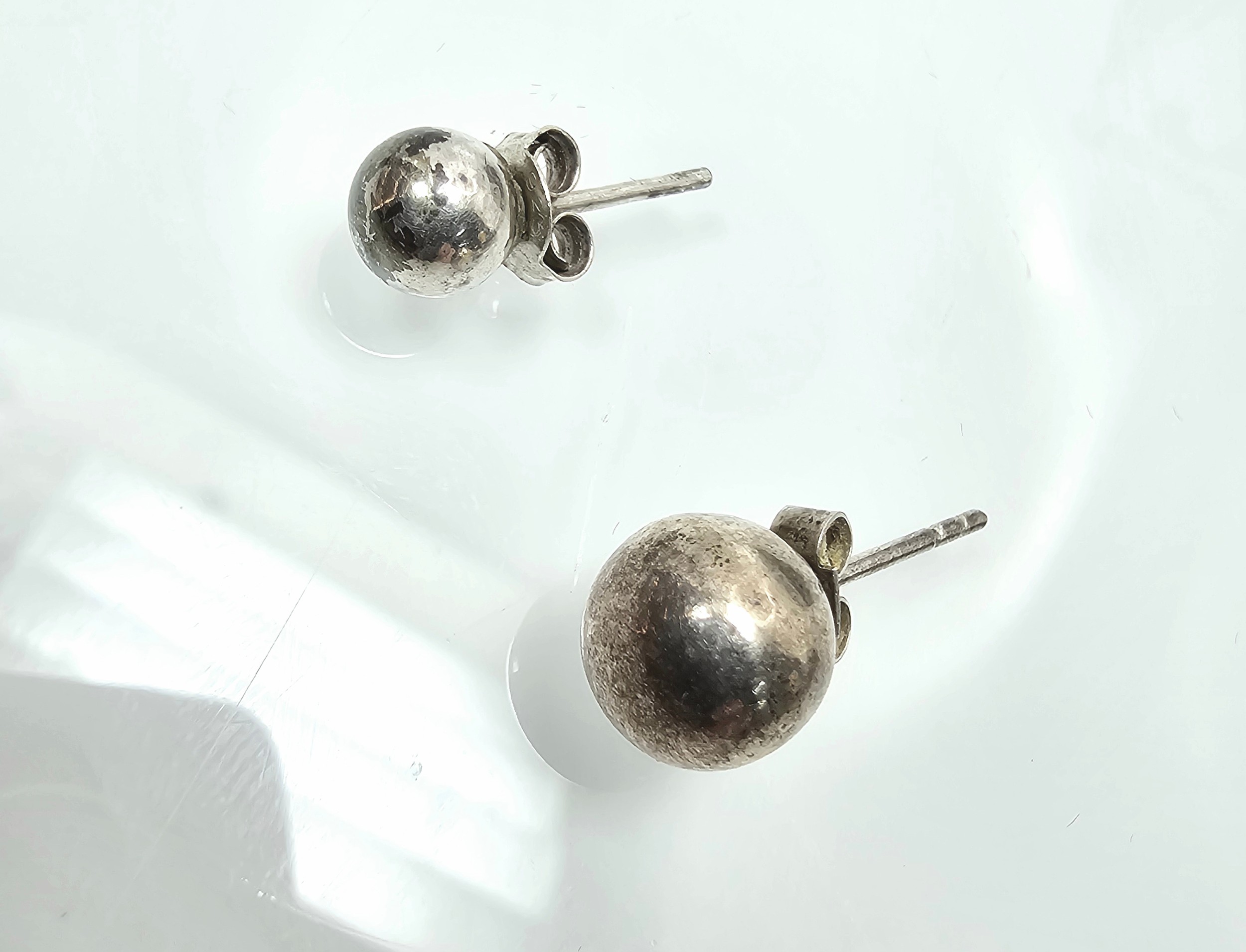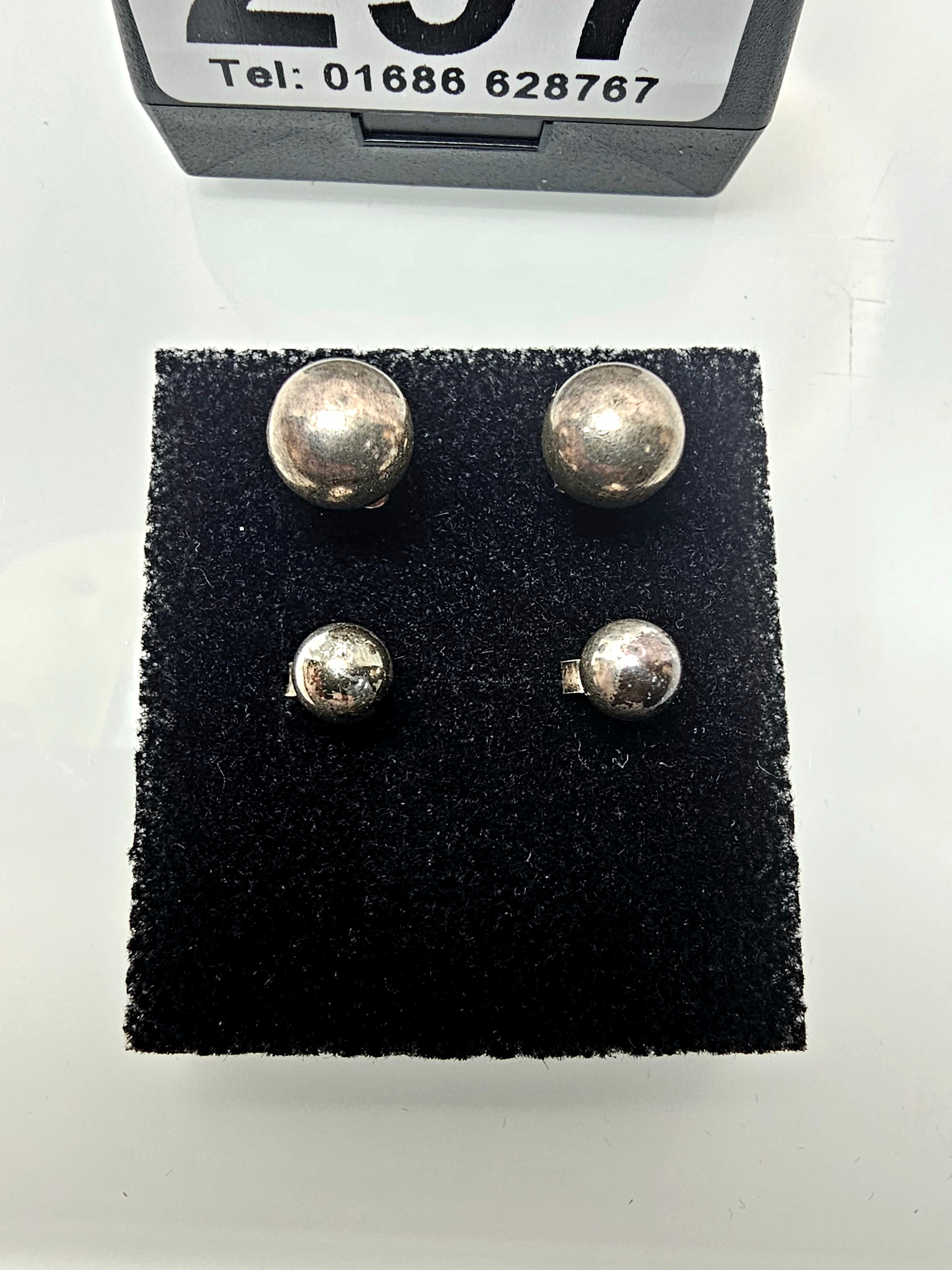 2x pairs of 925 Silver ball stud earrings featuring a larger set and a smaller set. Both are complete with their backs and are in a clean condition.