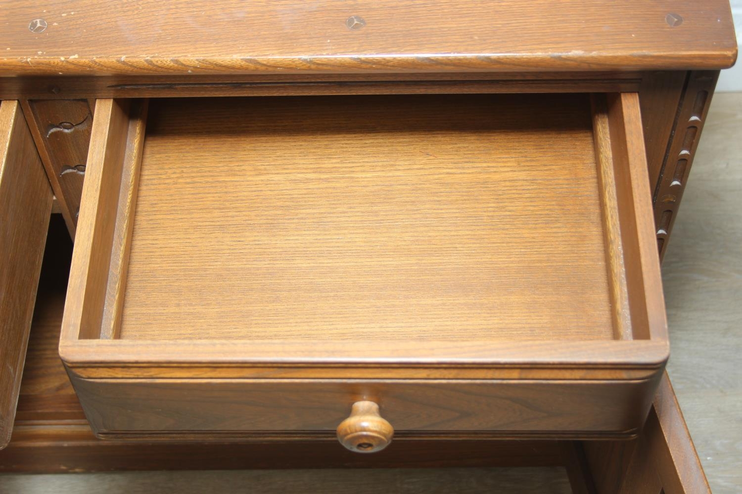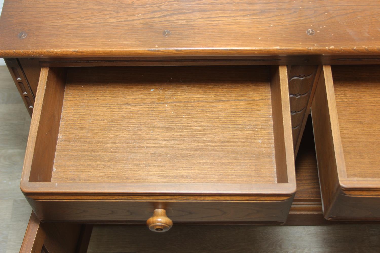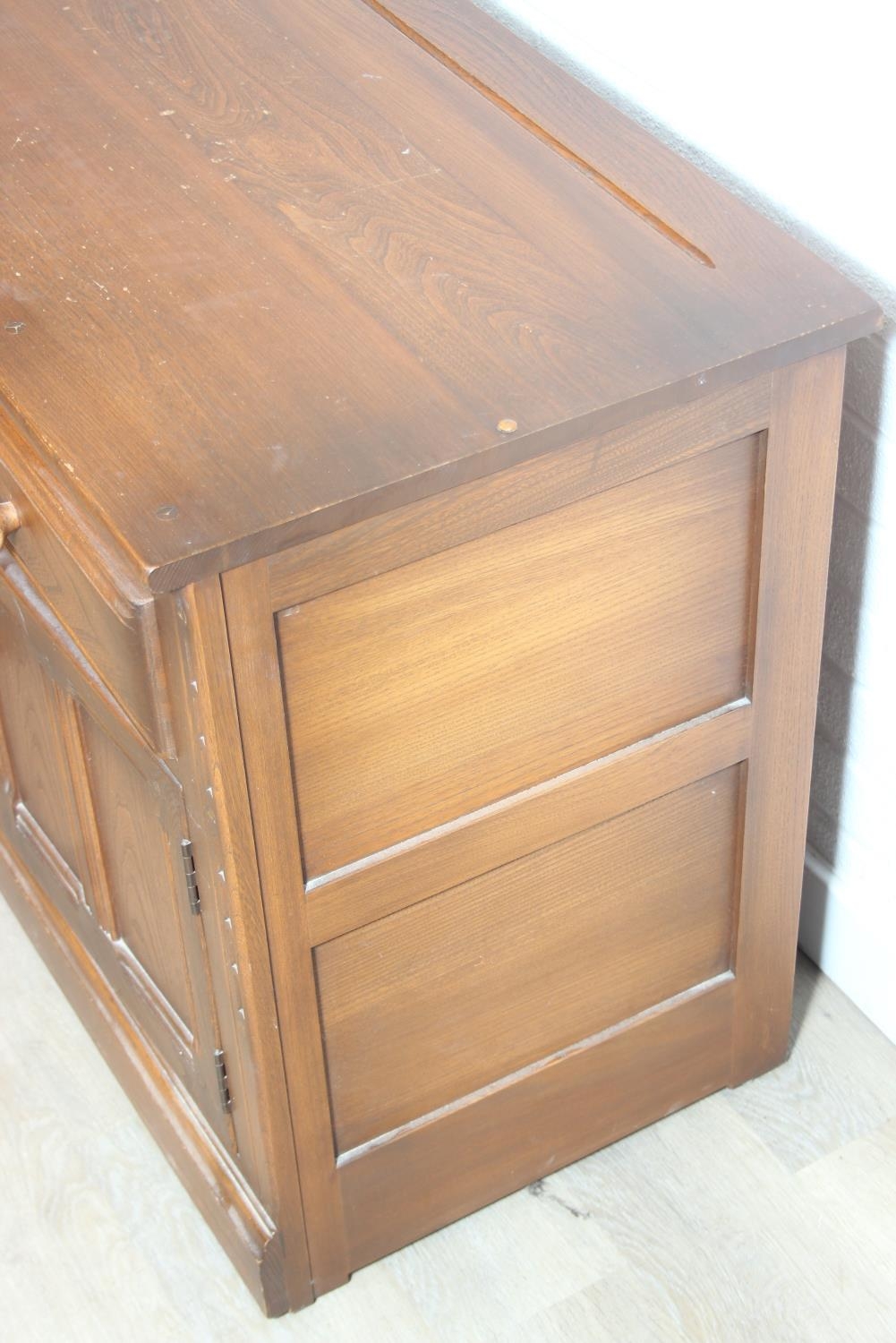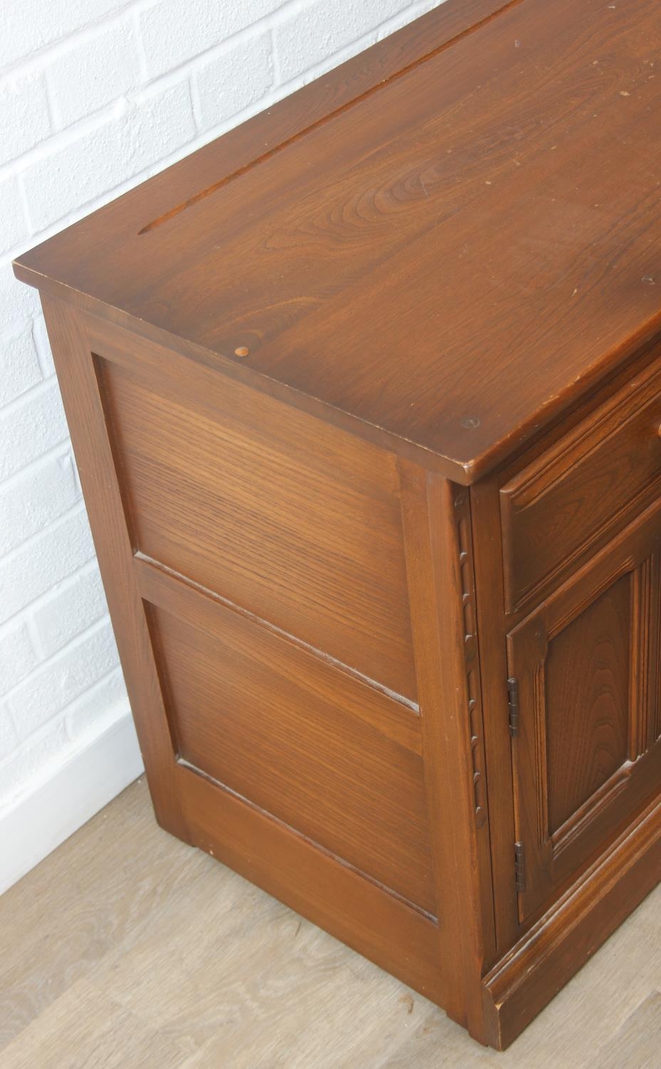 Small Ercol elm sideboard comprising two drawers over two cupboards, 98cm x 50cm x 71cm