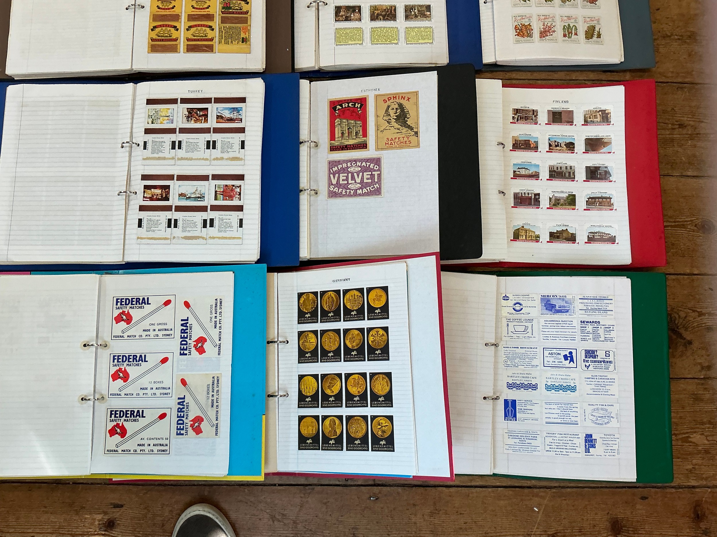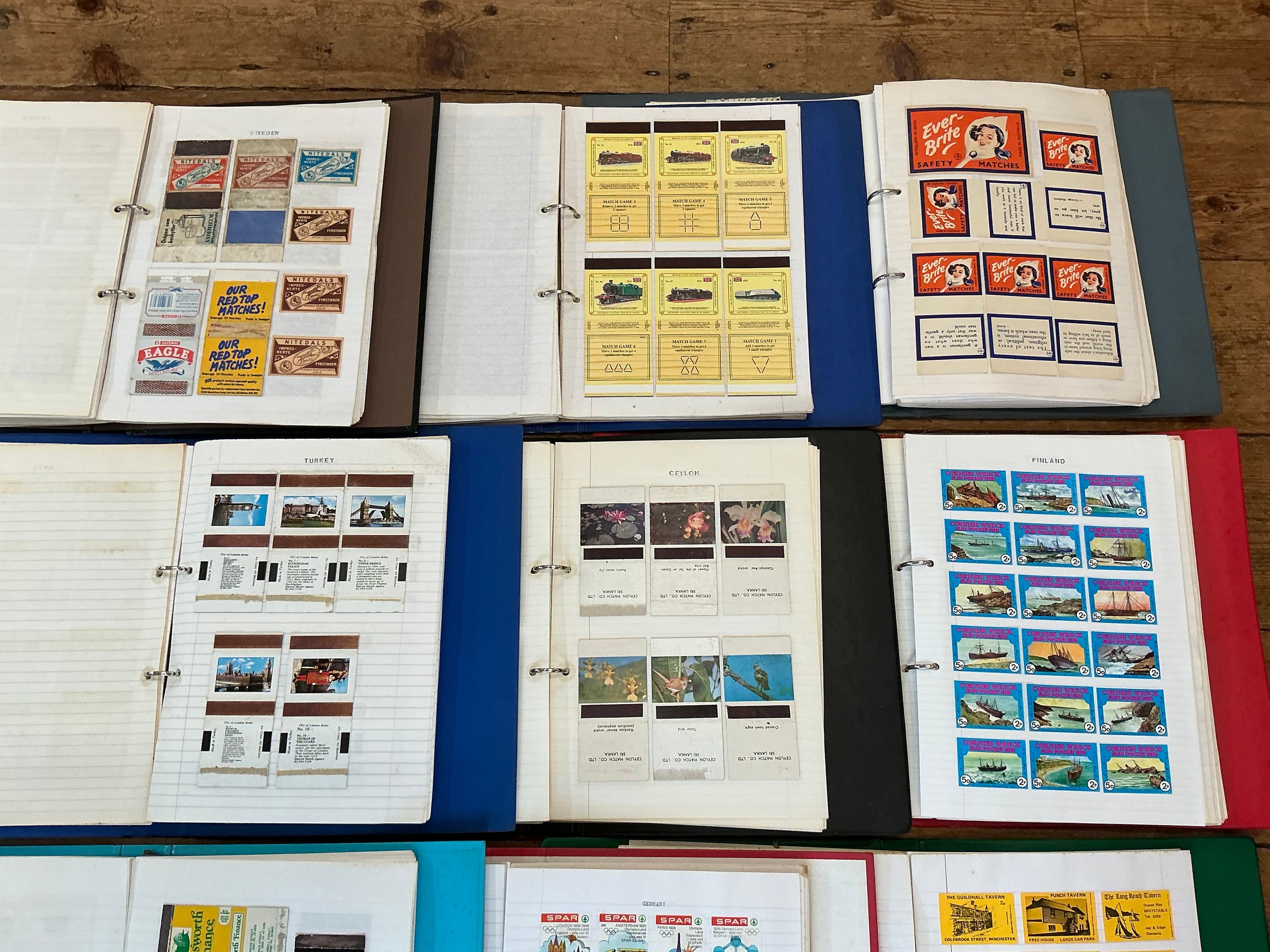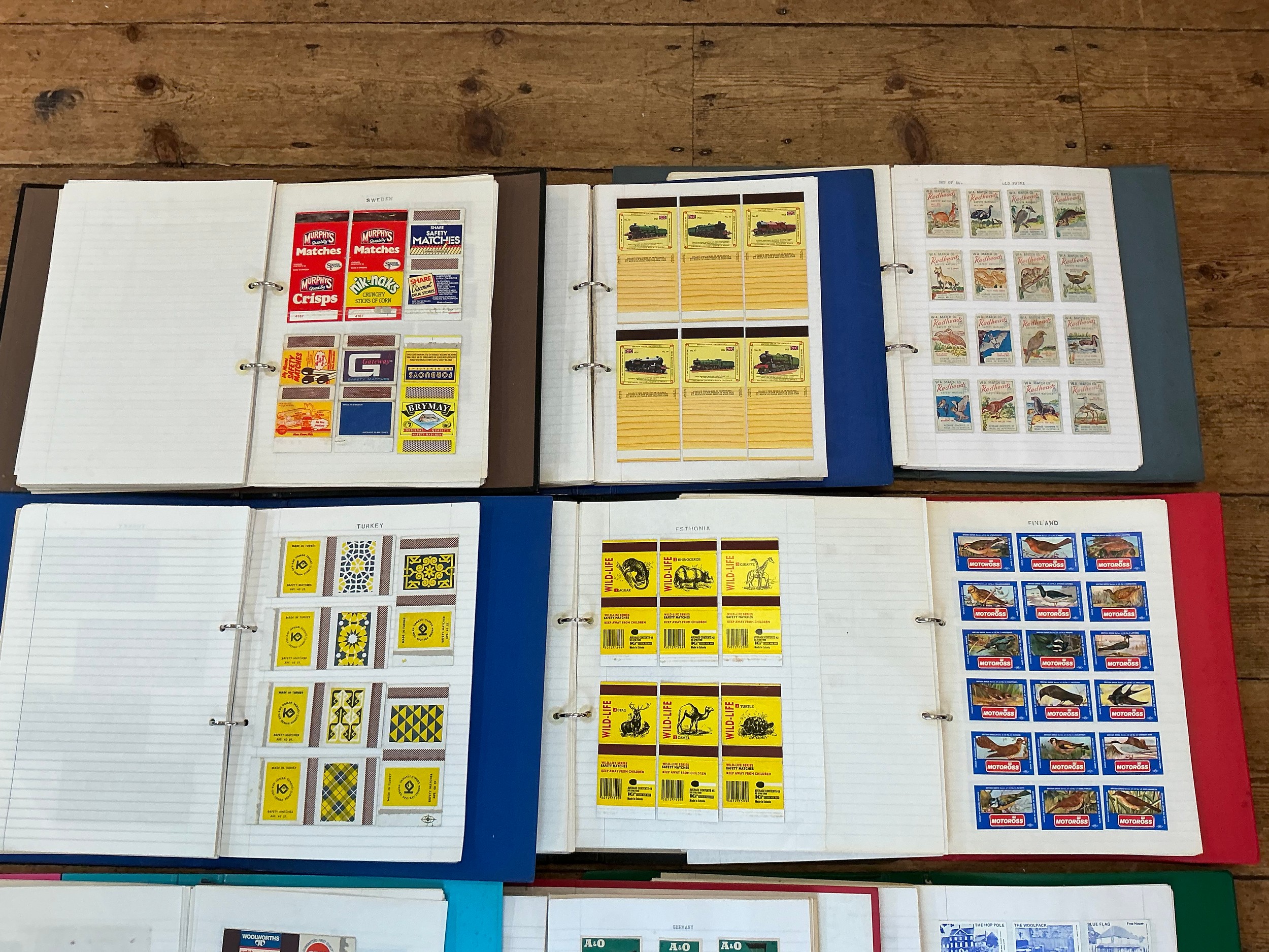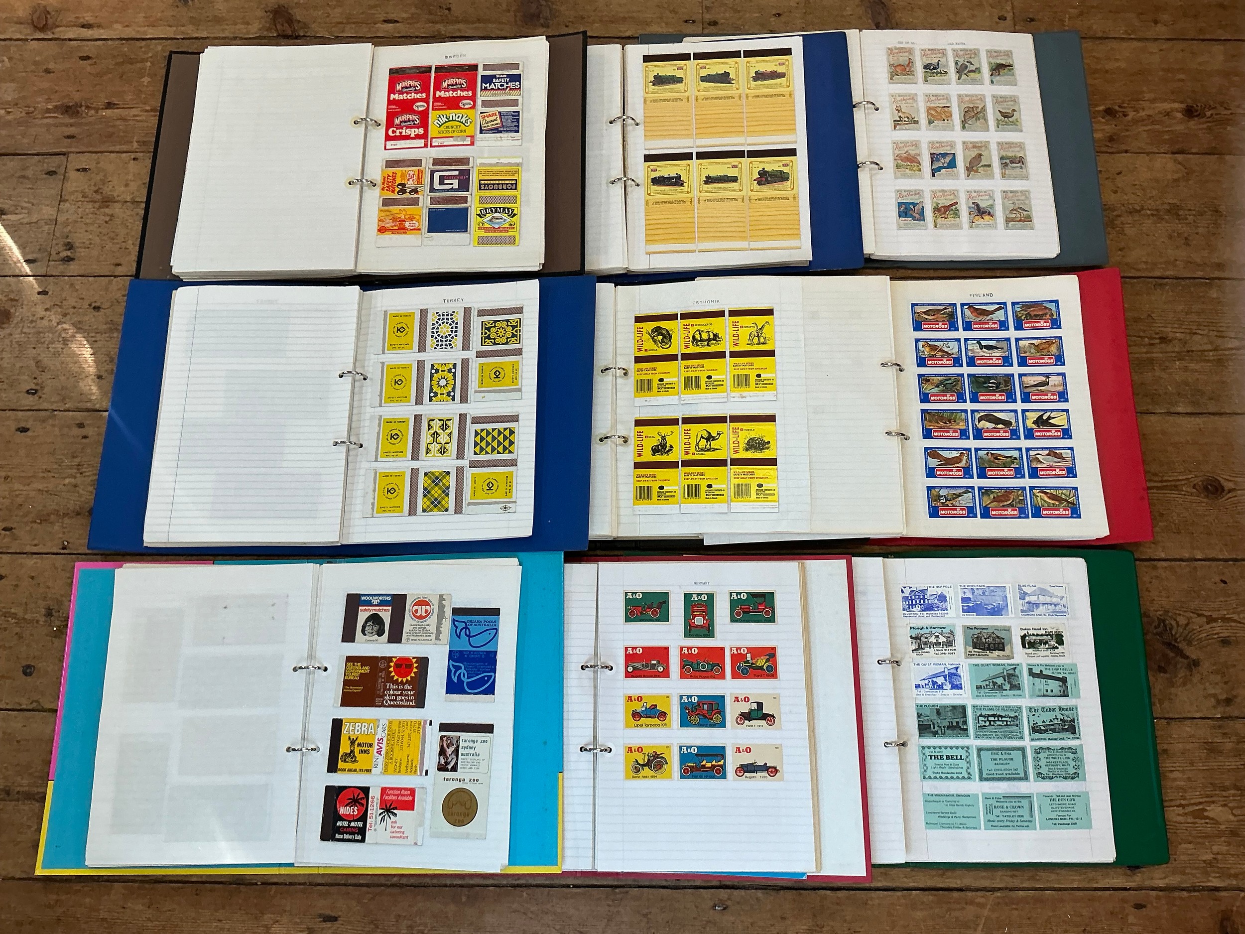 A Large Collection of Nine Albums of Vintage Matchbox Labels & Matchboxes from over the World to include Sweden, Finland, Turkey, Ceylon, Estonia, etc. Needs Viewing.