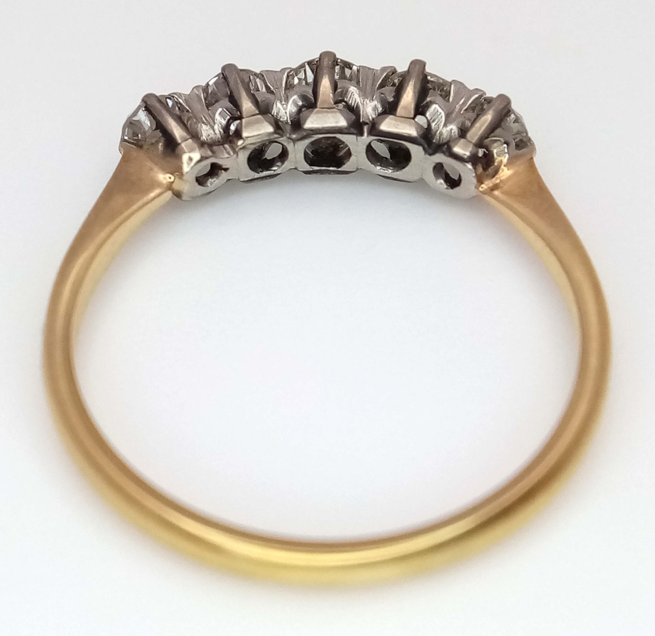 AN 18K YELLOW GOLD VINTAGE OLD CUT DIAMOND 5 STONE RING. 0.65CTW. 2.3G. SIZE N. 9789