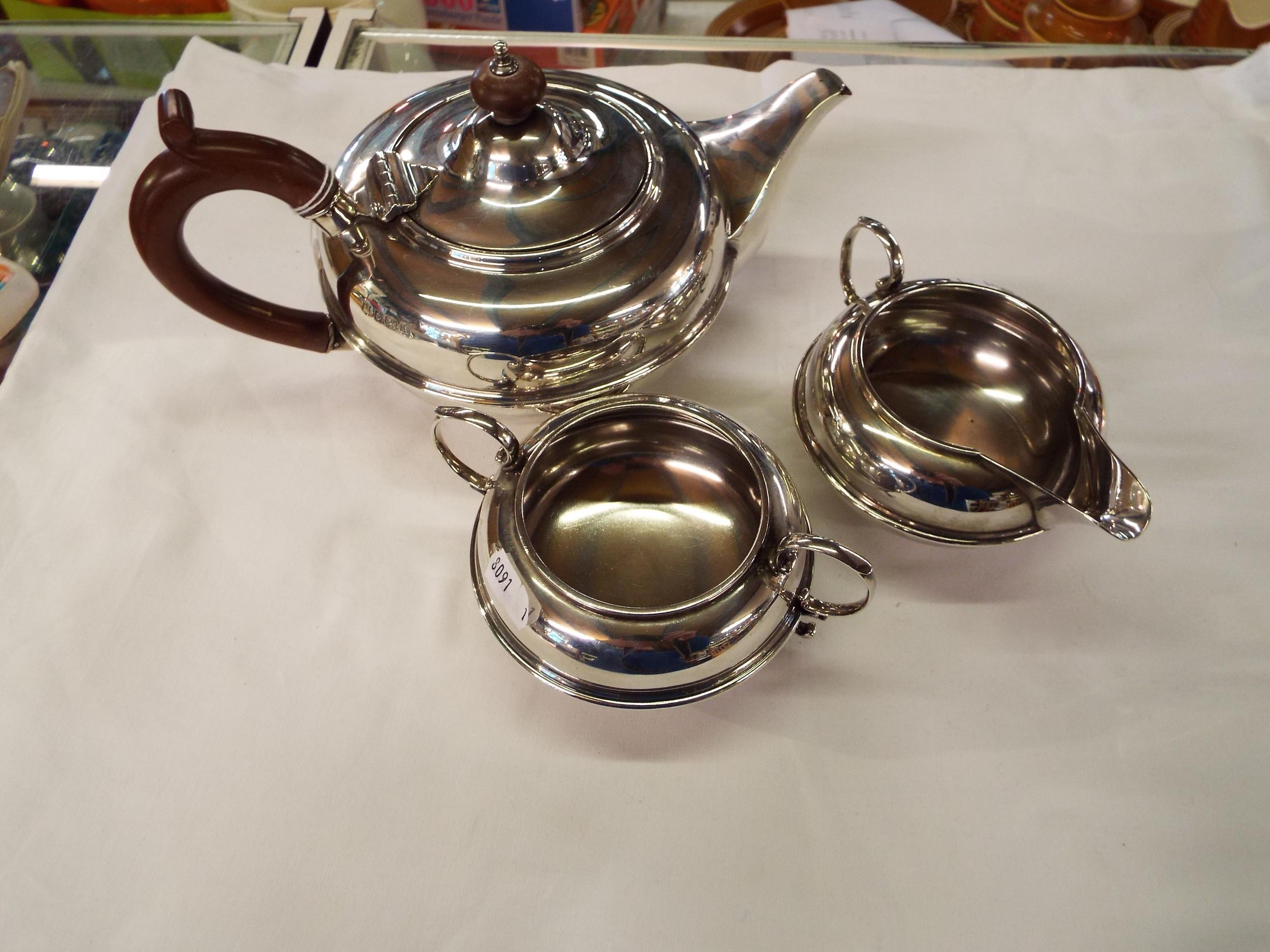 A Birmingham silver 1925 silver tea-set comprising of tea-pot sugar bowl and cream jug weighing 28 troy oz