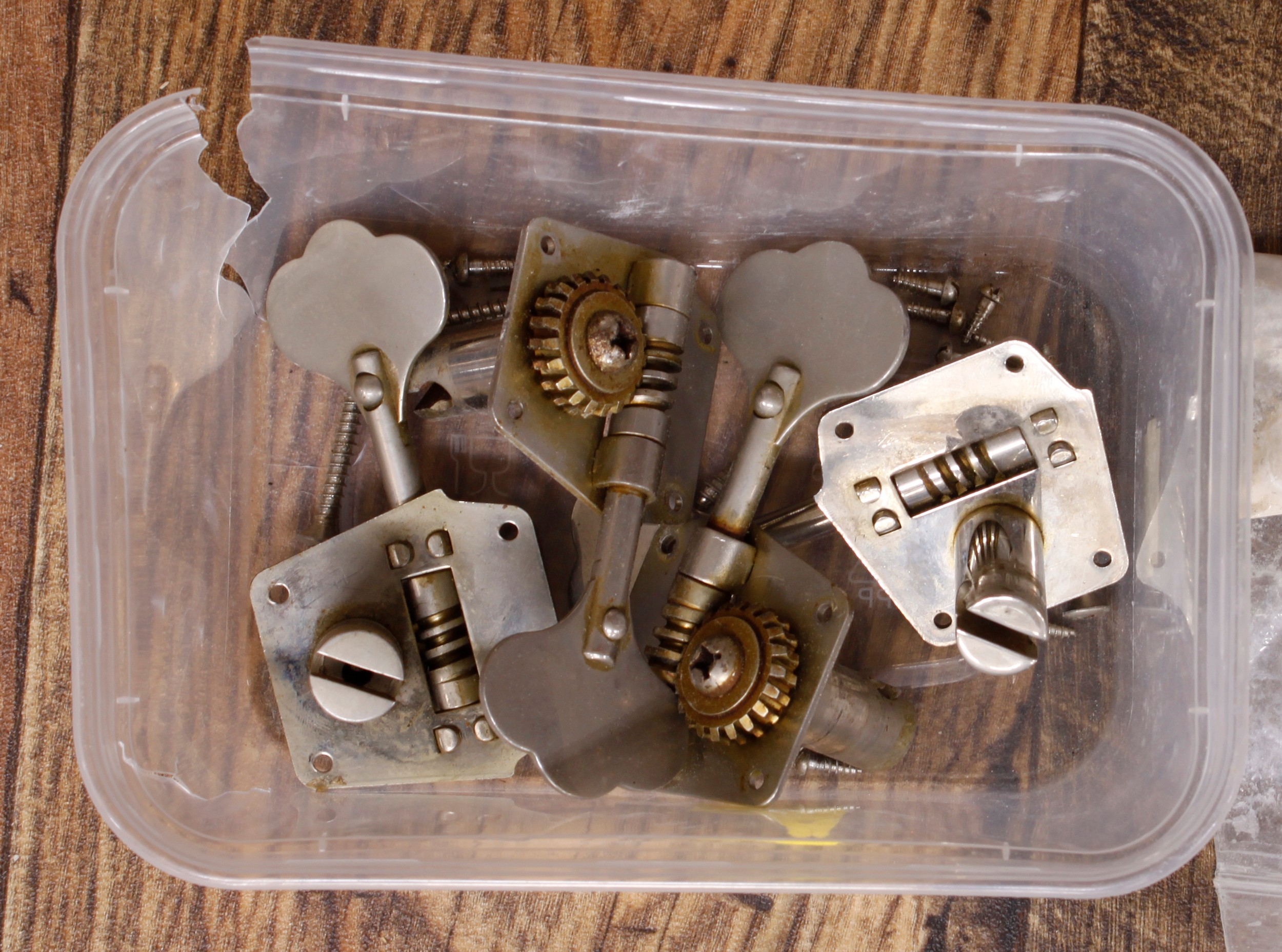 Set of vintage Fender bass guitar tuners including ferrules and screws