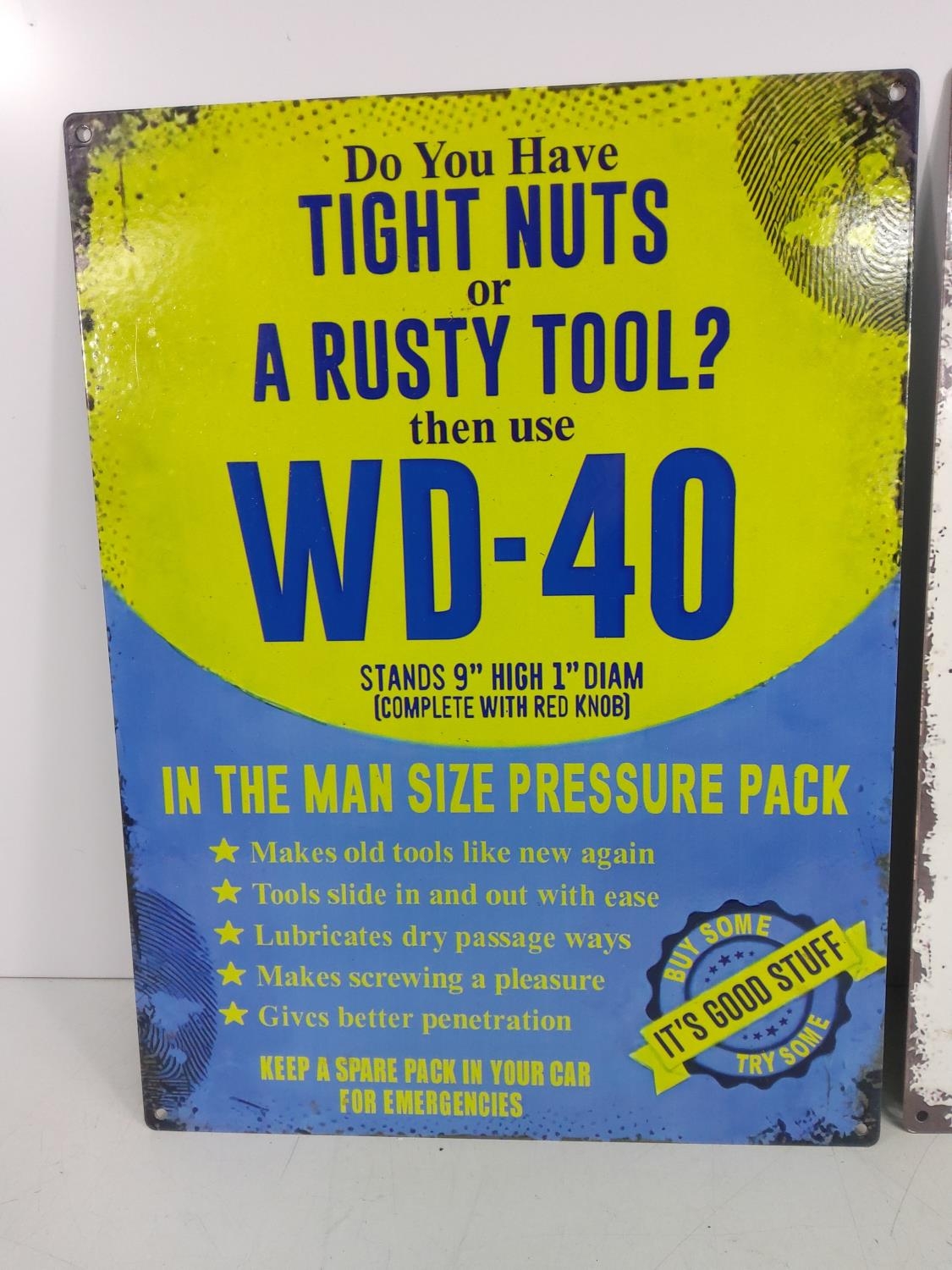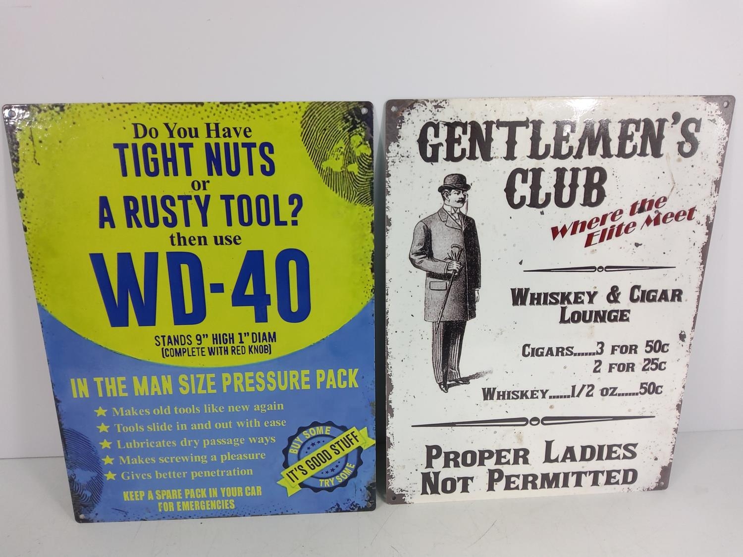 2 novelty metal advertising signs, 40 x 30cms