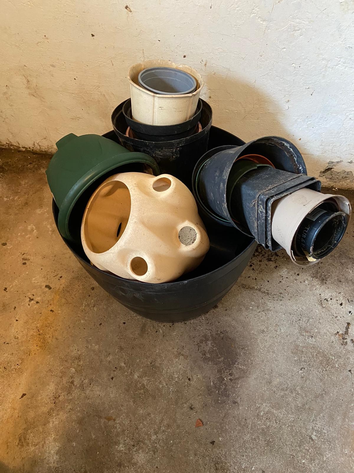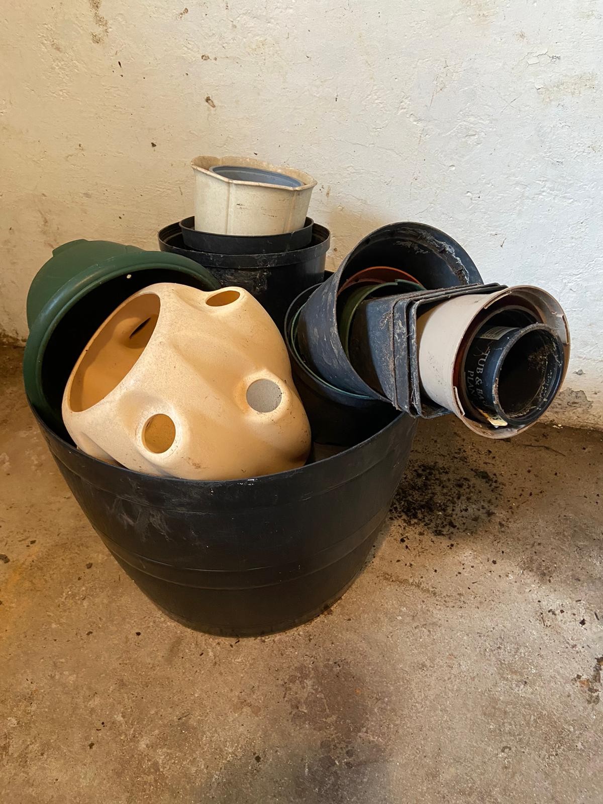 Large quantity of plastic flower pots.