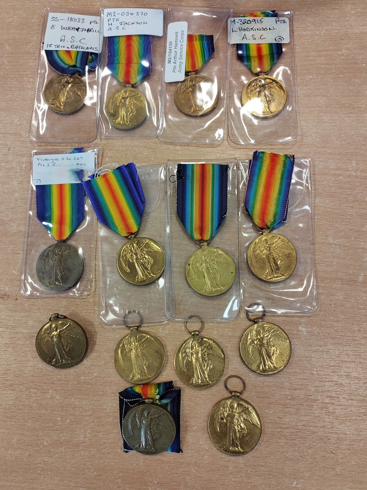 plus Victory Medals (14) to various ranked Private, mixed condition, includes copies of medal rolls. (½B)