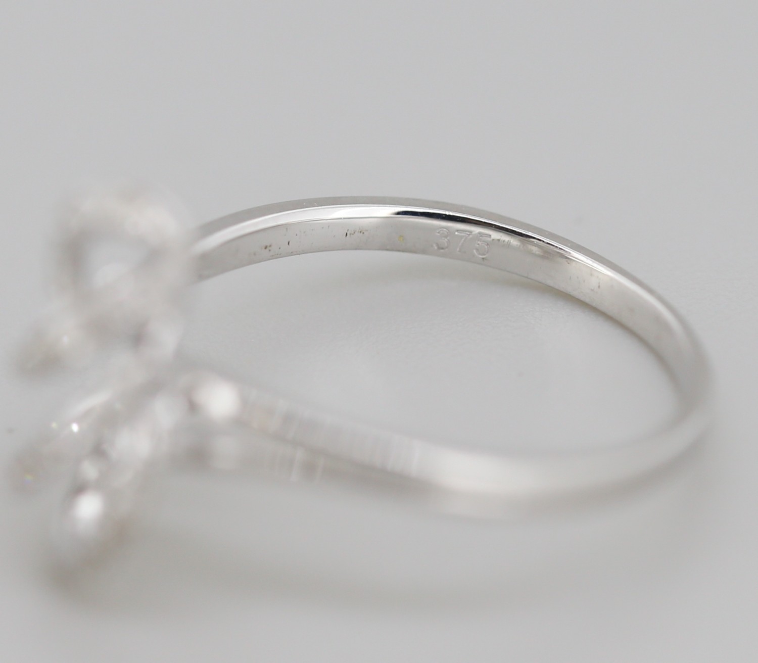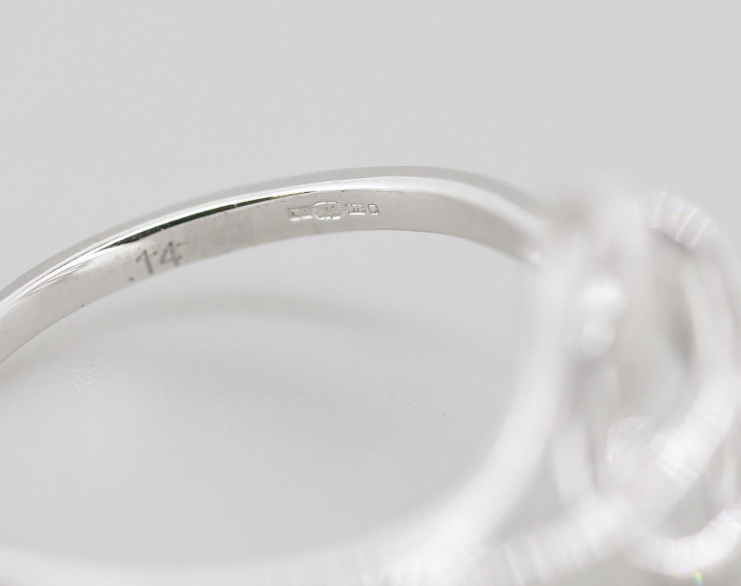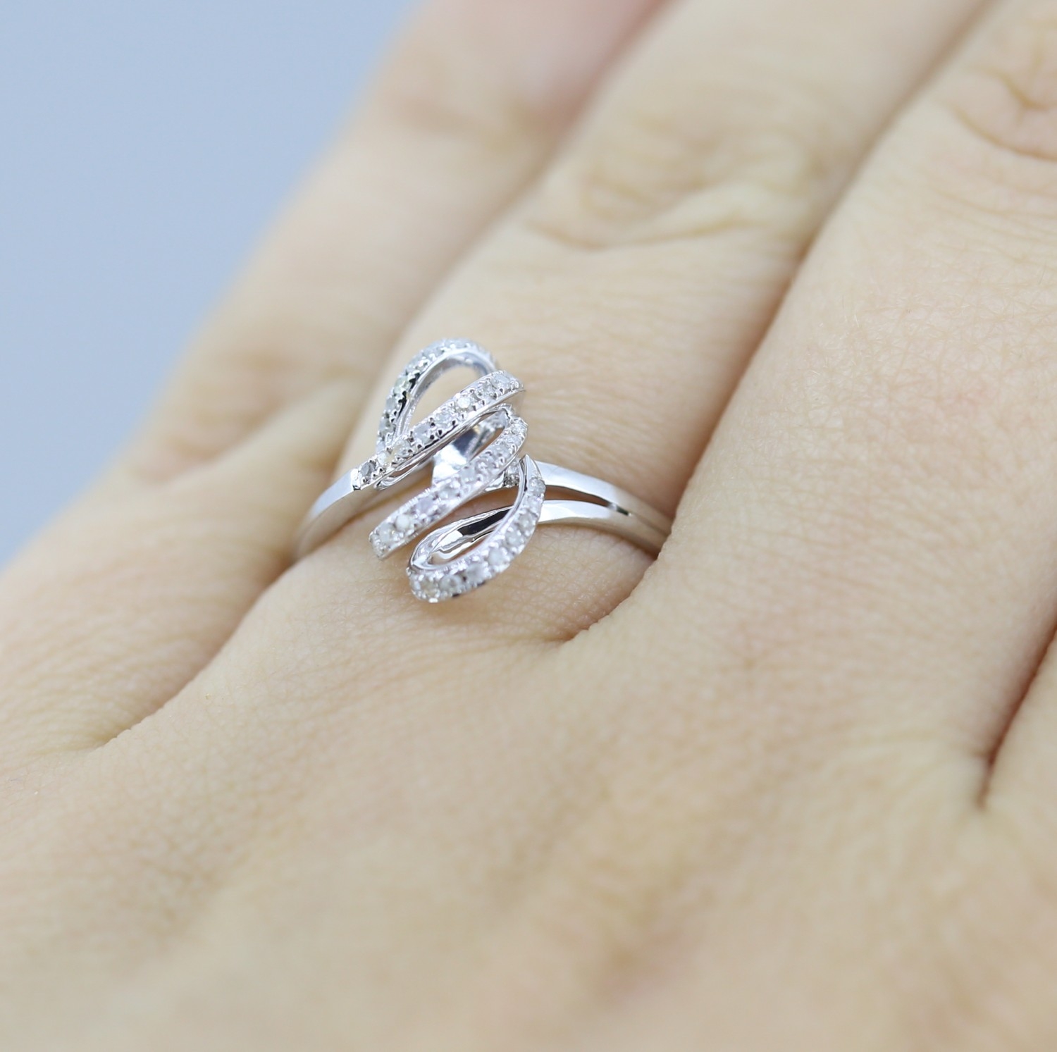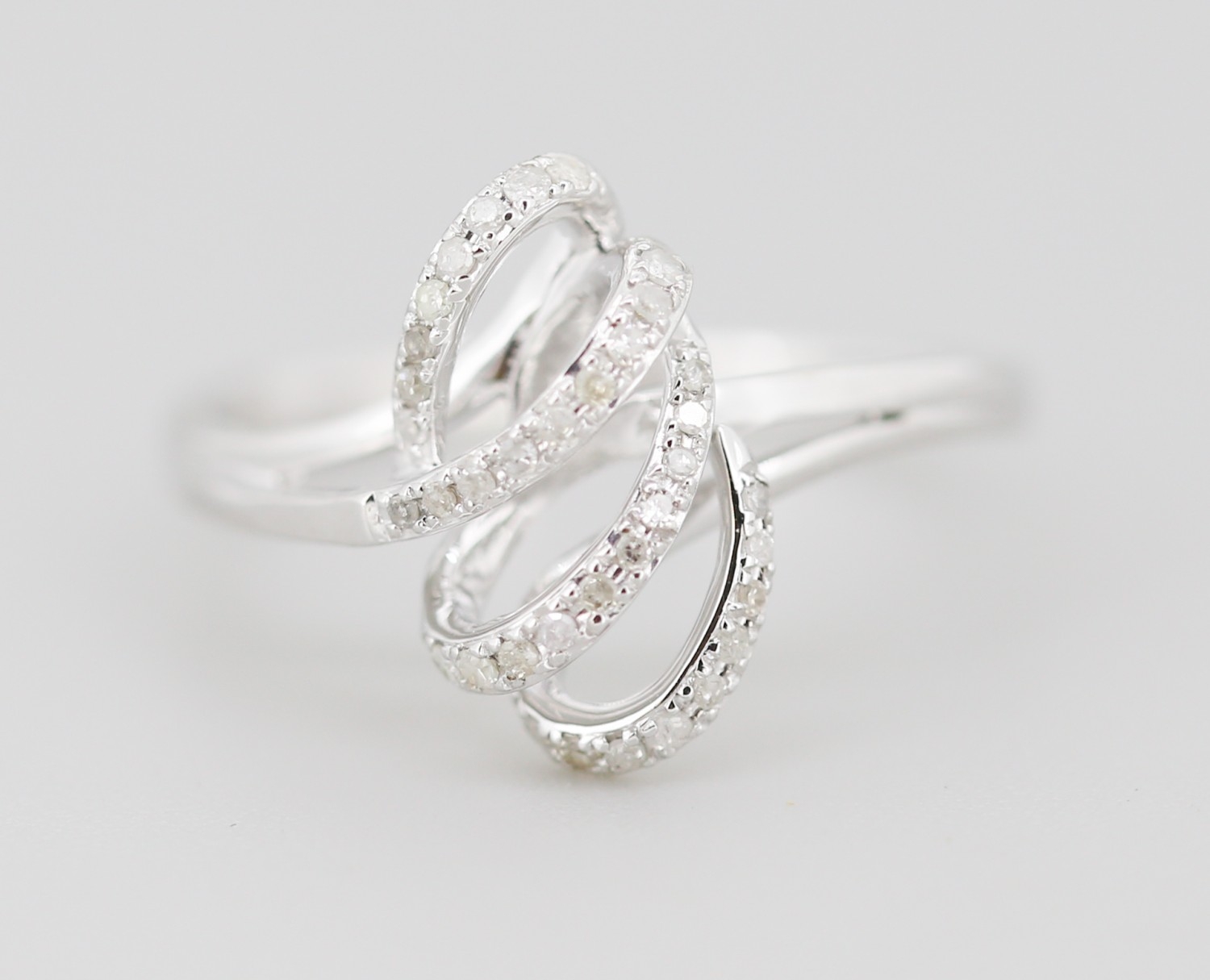 Unusual Form Diamond Set Swirl Motif Ring Mounted in 9 Carat White Gold Ring Size O