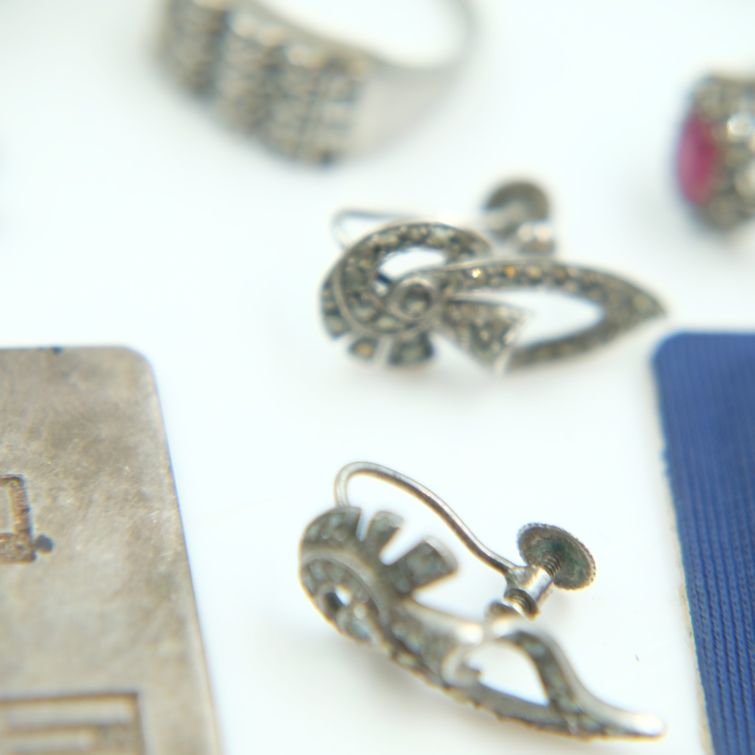 Mixed silver jewellery including a bangle, 80g combined. UK P&P Group 0 (£7+VAT for the first lot and £1+VAT for subsequent lots)