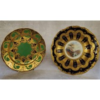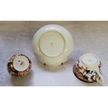 The salt pig and cabinet plate are in excellent condition, the cup has a hairline crack. Thank you.