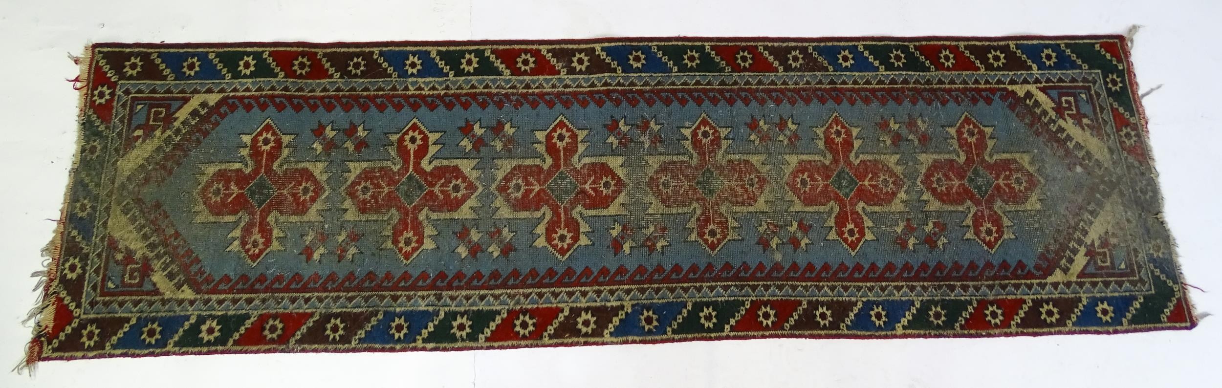 Carpet / Rug : A pale blue ground runner decorated with repe...