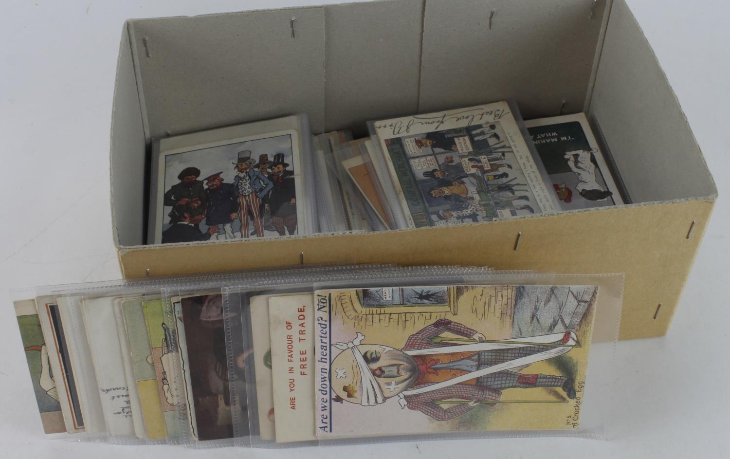 Political, Prime Ministers, Social cartoons, original collection in shoebox, Tariff Reform, National Insurance, etc needs viewing (approx 105 cards)