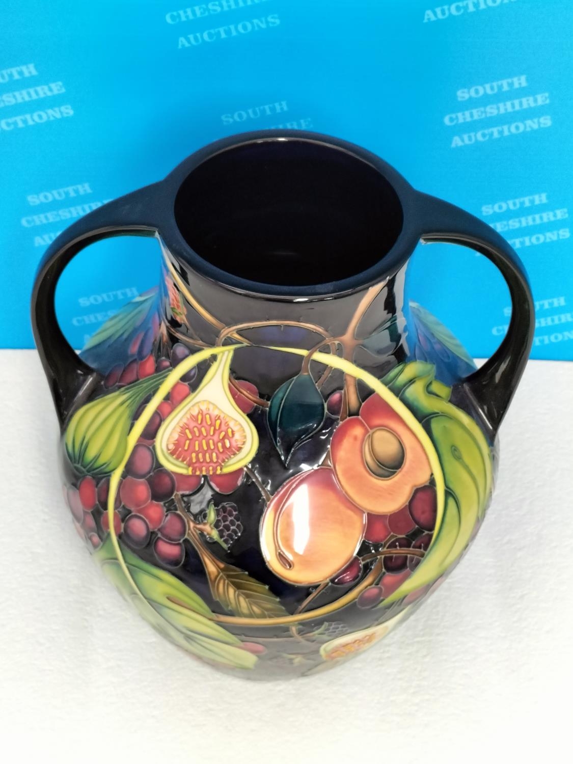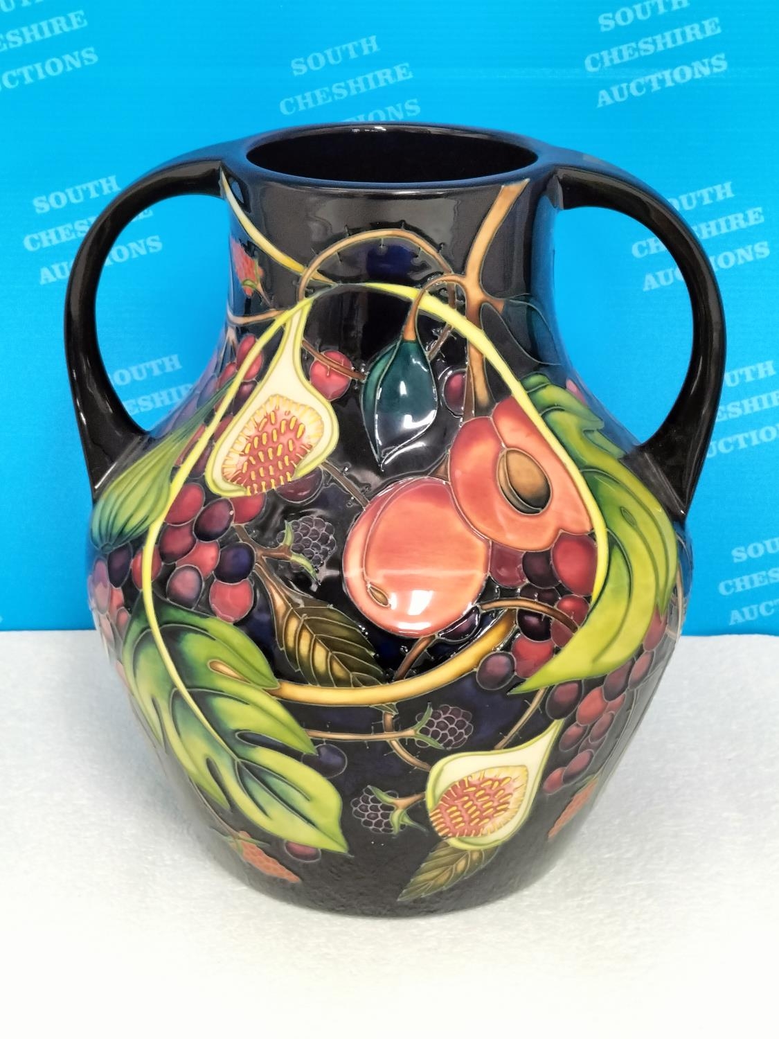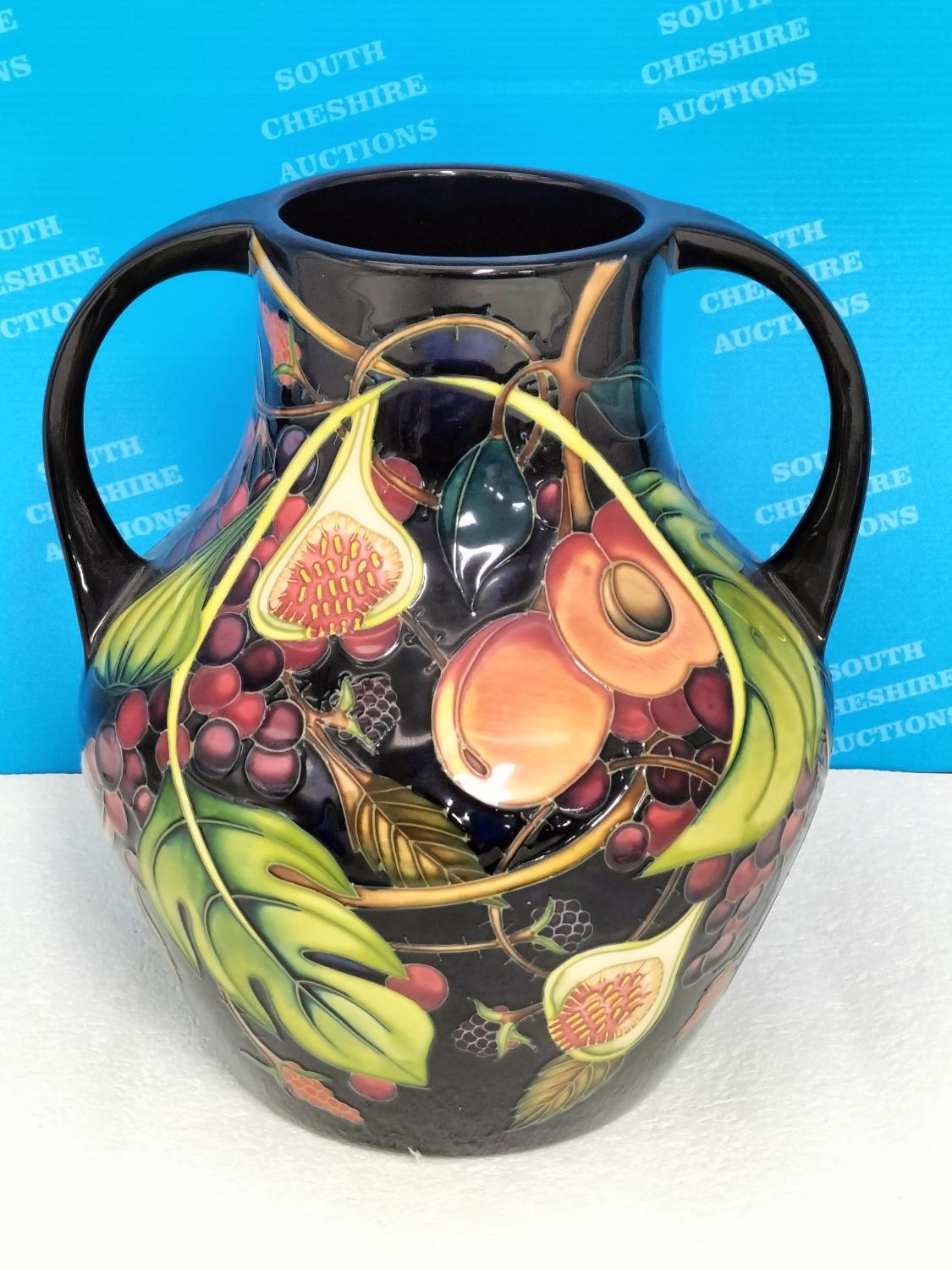 Moorcroft Twin Handled 26cm Vase in the 'Queens Choice' Pattern by Emma Bossons 2000. Red Dot.