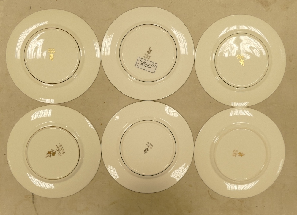 De Lamerie Fine Bone China, a selection of heavily gilt plates in varied colourways & designs. Made in England (6)
