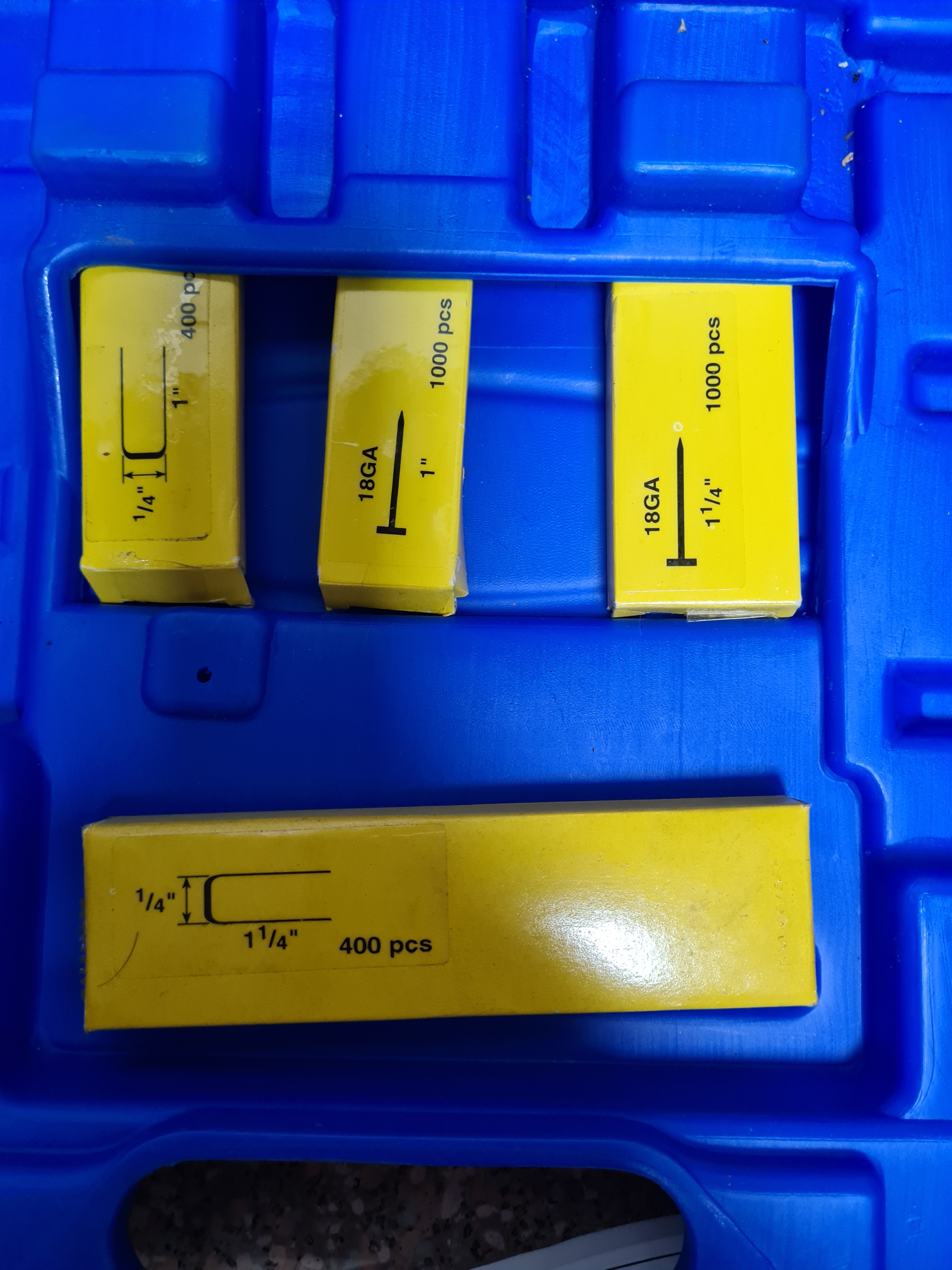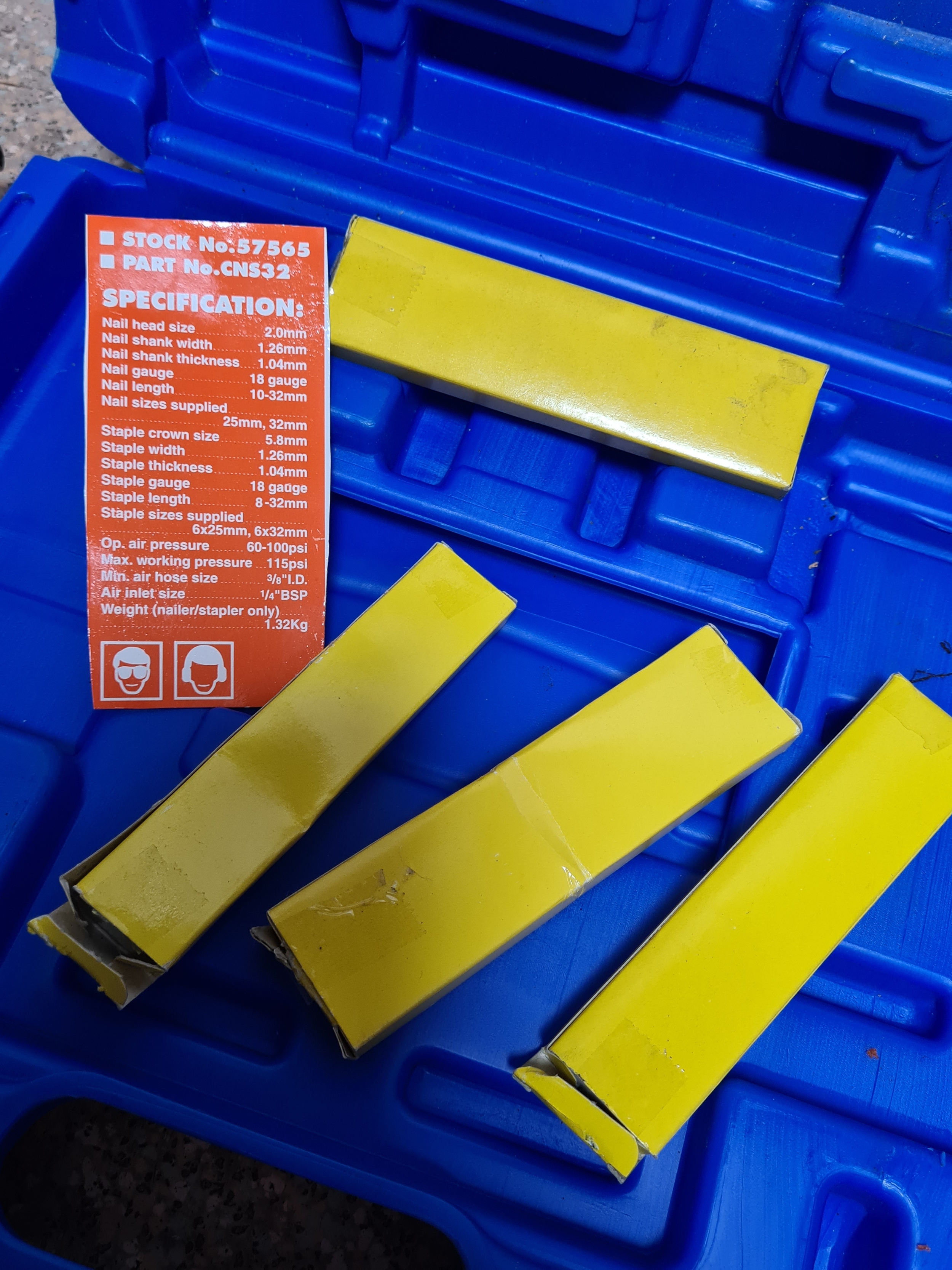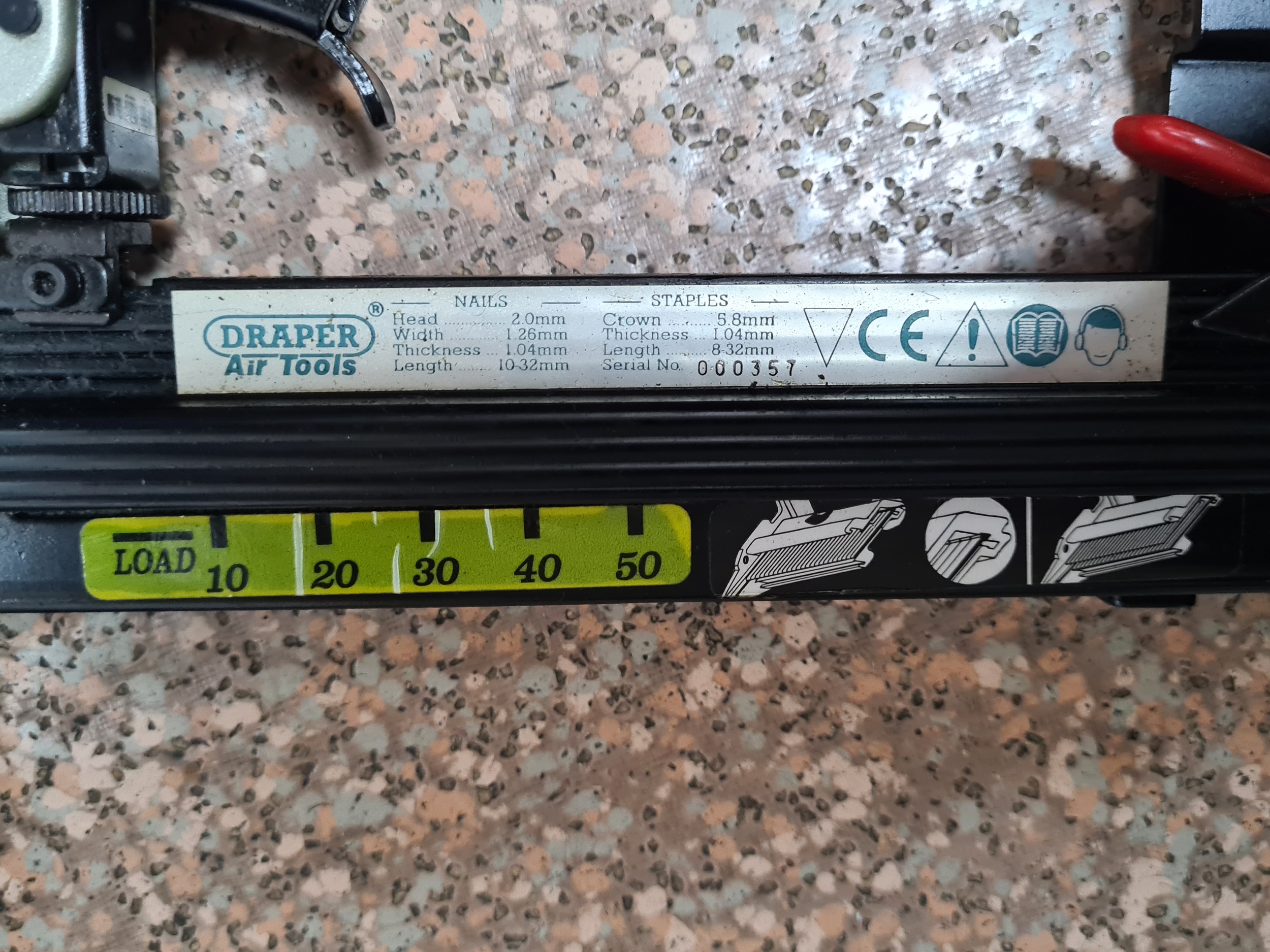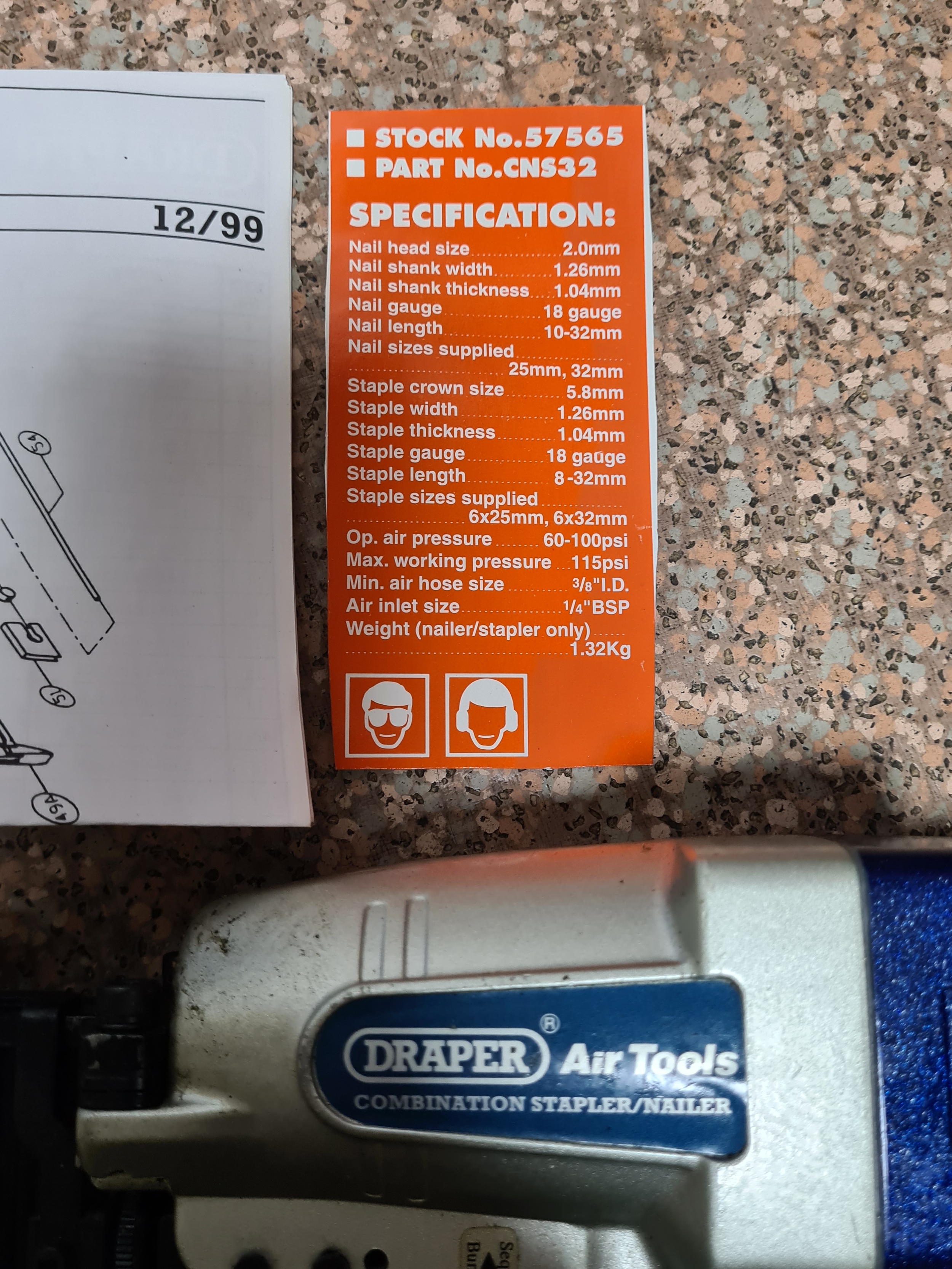 A Draper Combination Nailer /Stapler Air Tool Kit in a plastic box with additional staples and heavy duty staples. No 57565 / CNS32