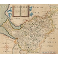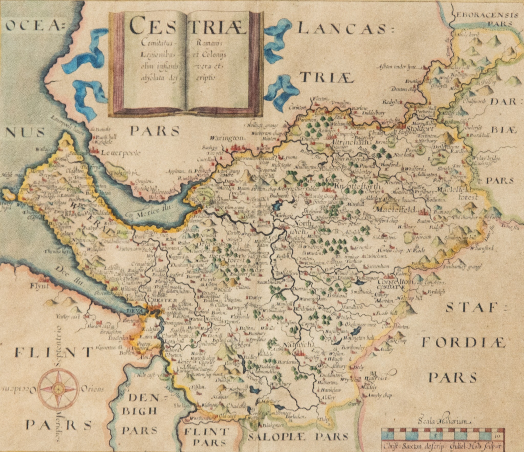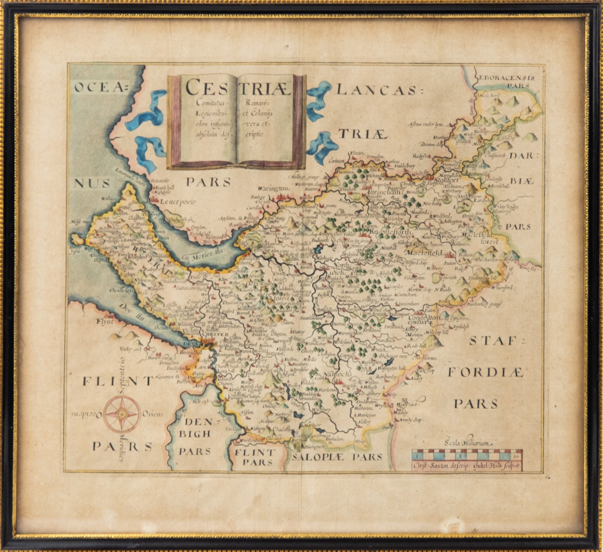 ANTIQUE HAND COLOURED MAP OF CHESHIRE BY CHRISTOPHER SAXTON, 10” x 11 ¾” (25.4cm x 29.9cm)