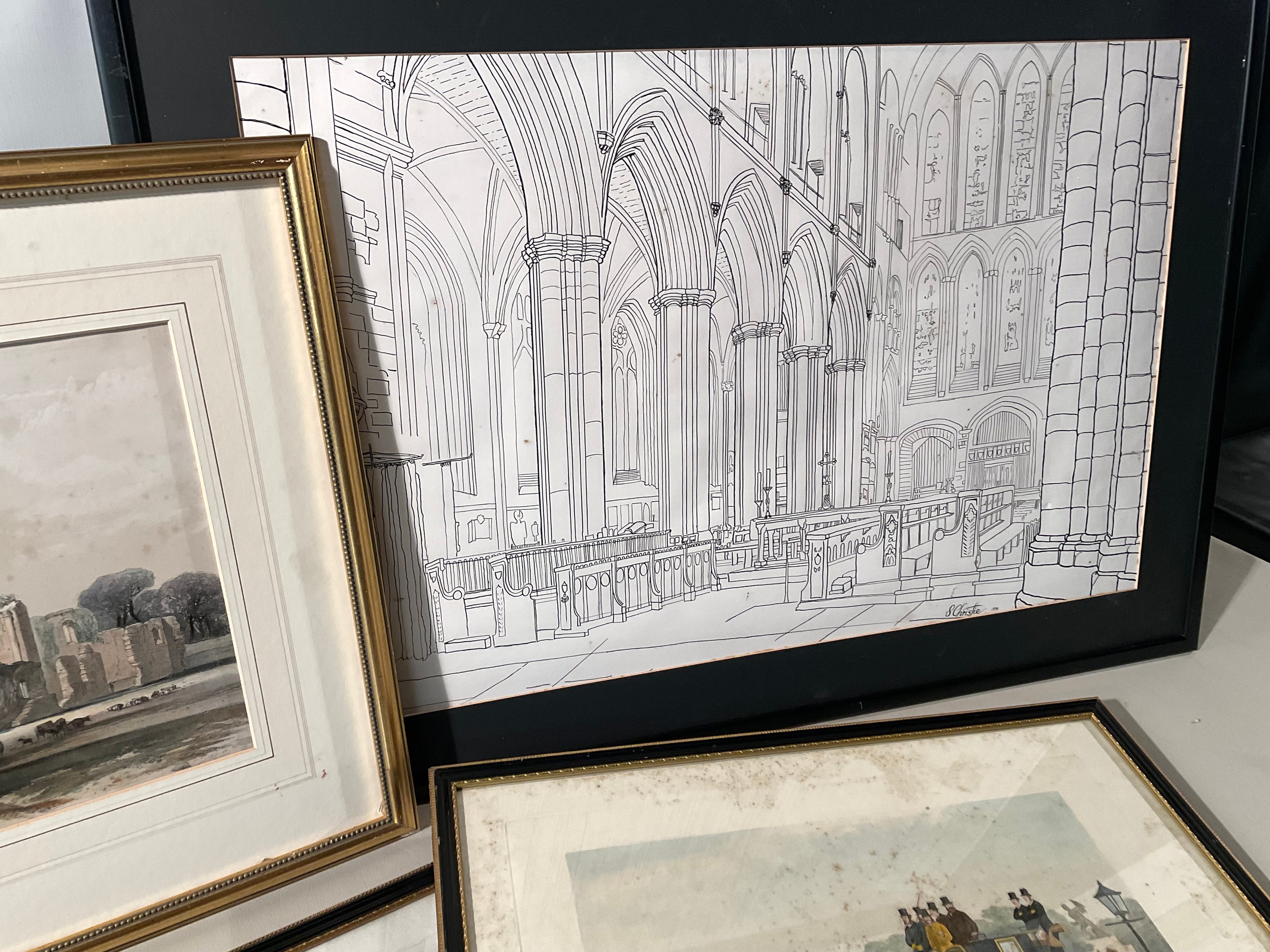 QTY OF VINTAGE PICTURES AND PRINTS TO INCLUDE ETCHING OF RICHMOND COUNTY OF YORK