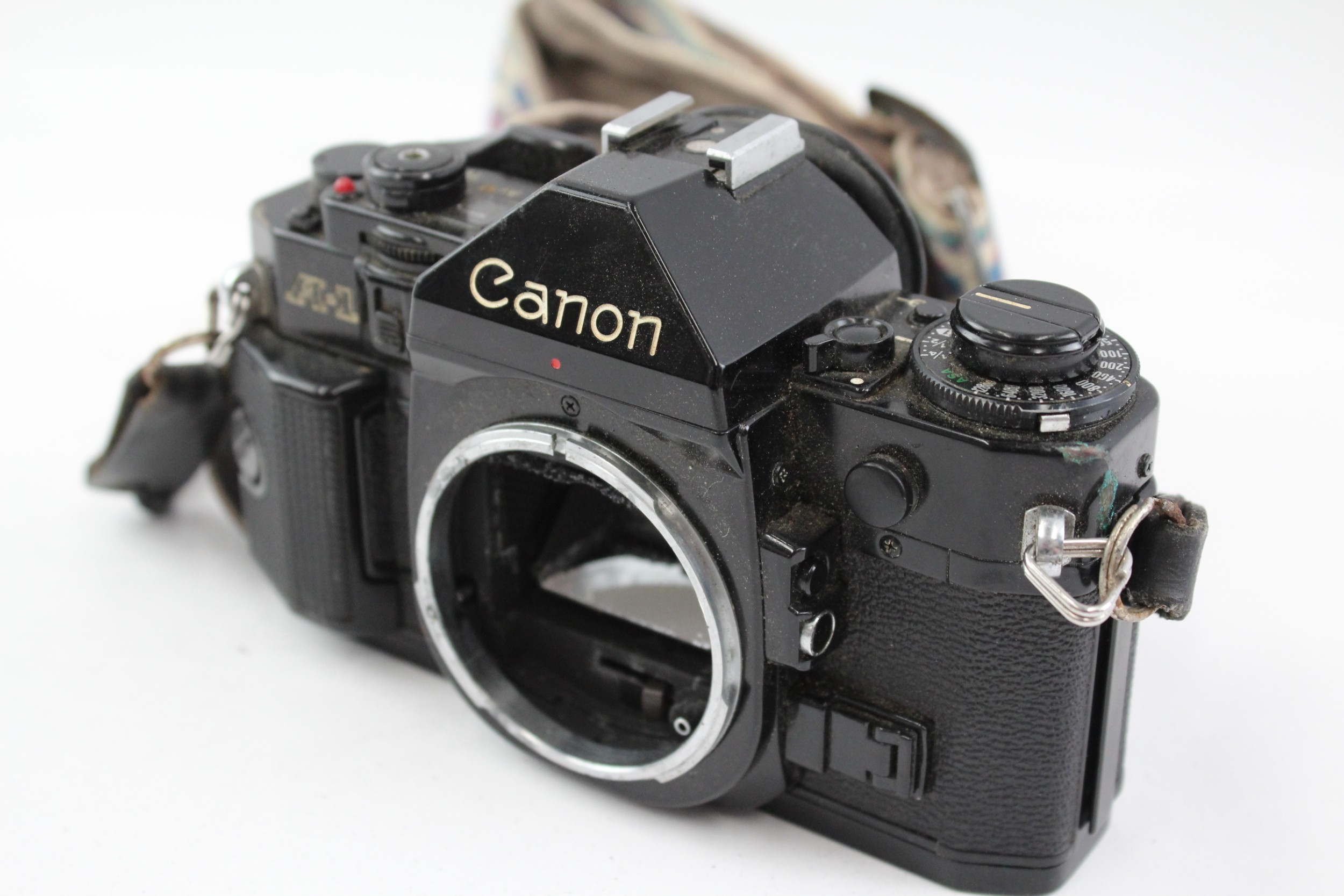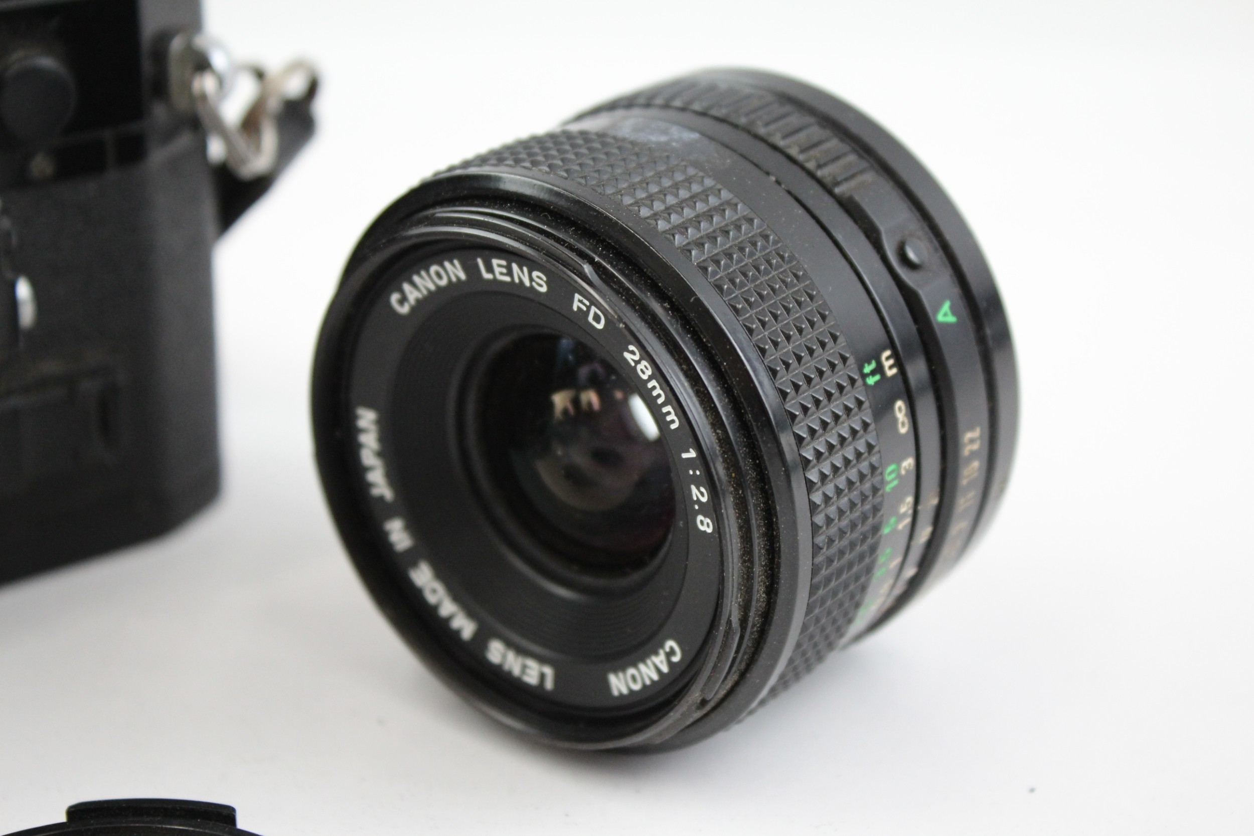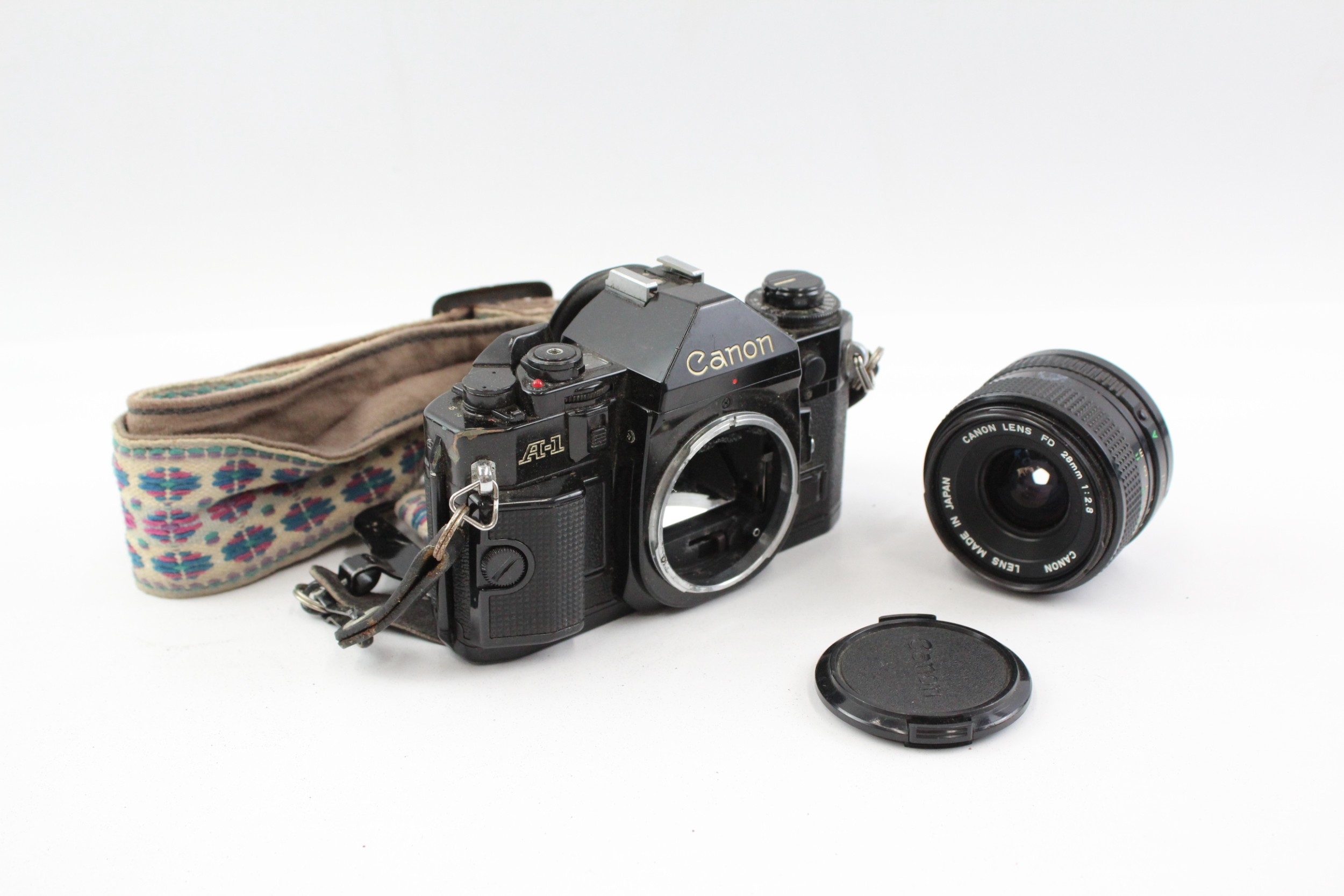 A Canon A-1 35mm SLR camera fitted with FD 1:2.8 28mm lens