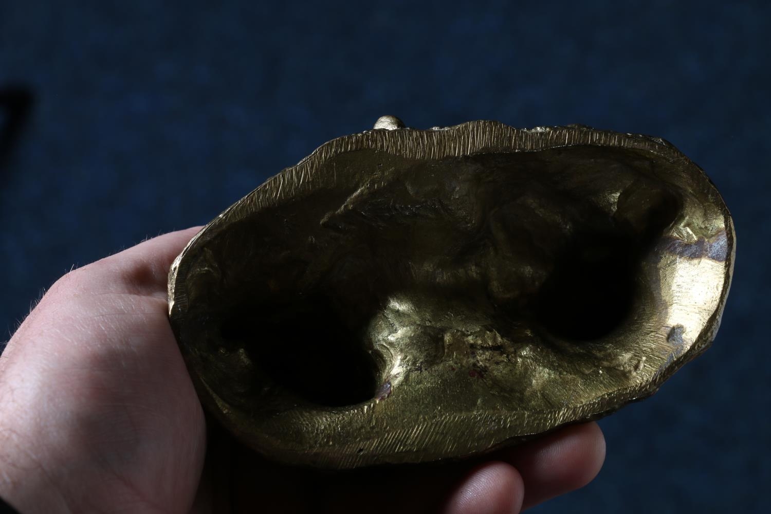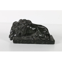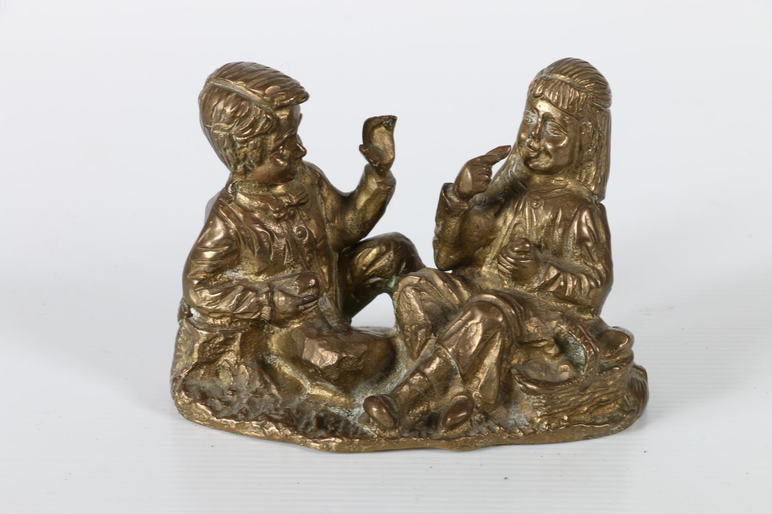 Cast metal model of a girl and boy at picnic, 12cm long.